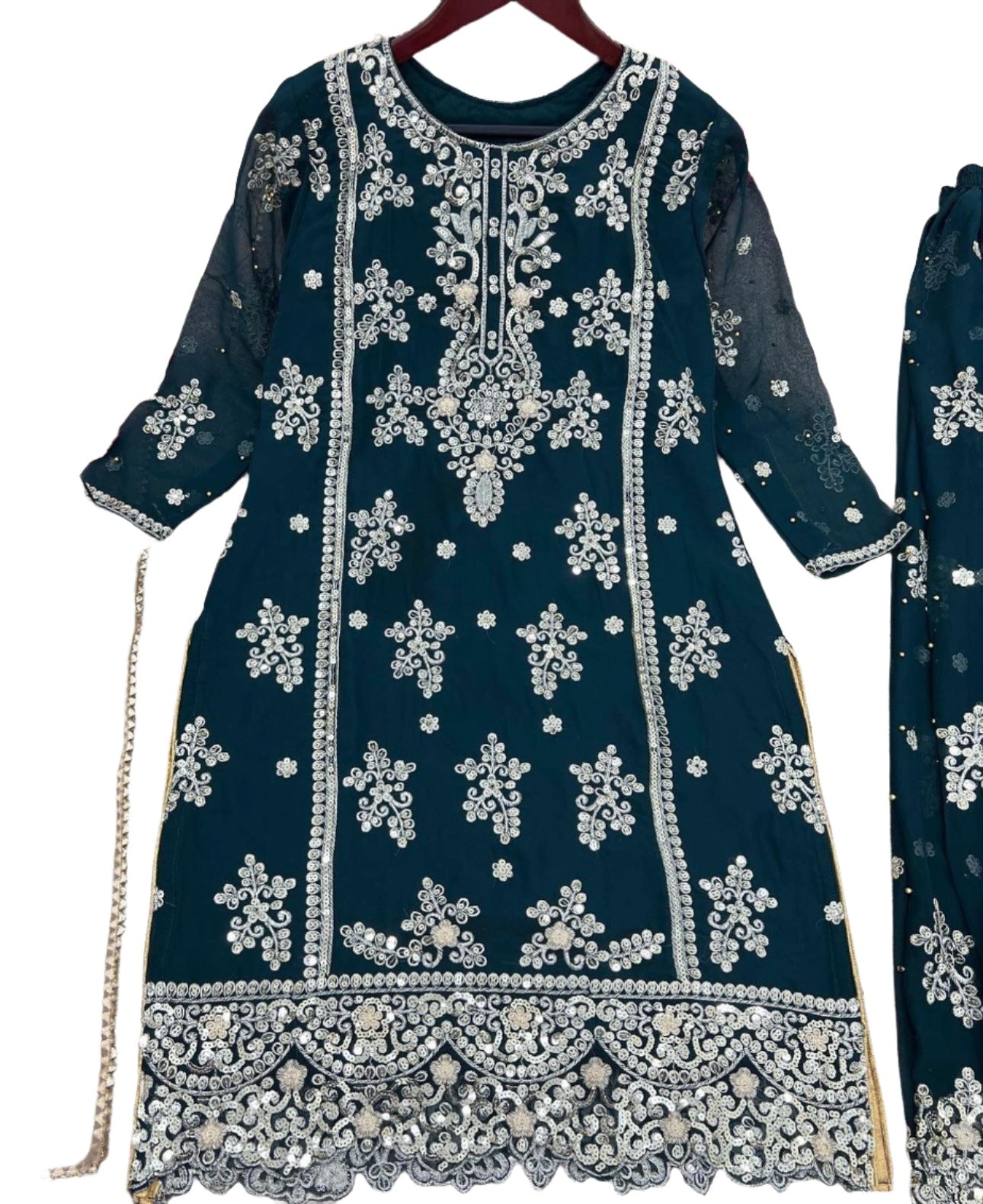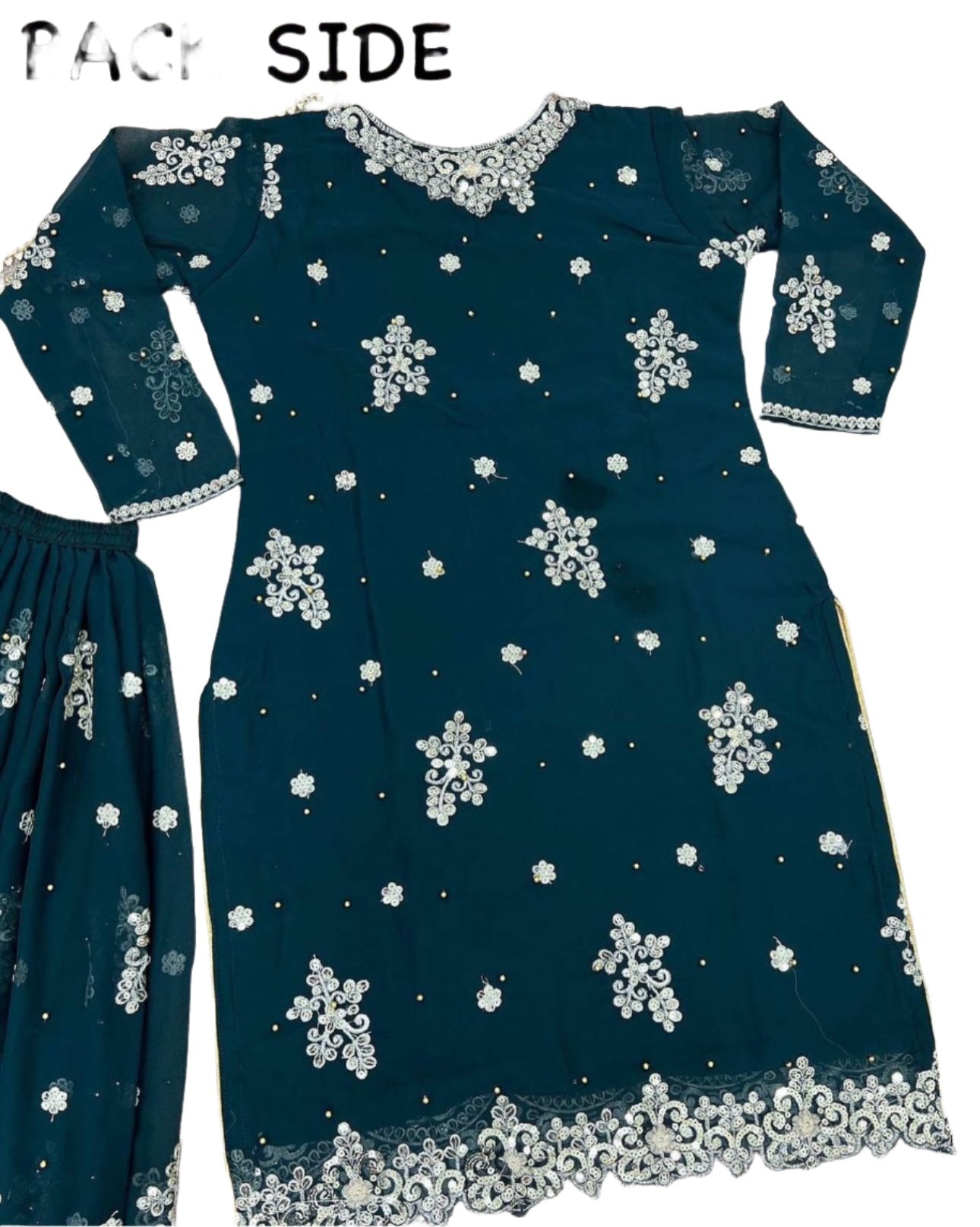 *Top Fabric * :Heavy Faux Georgette With Heavy 5mm Embroidery Sequence Work With Full Sleeve (Back Side Embroidery Work)