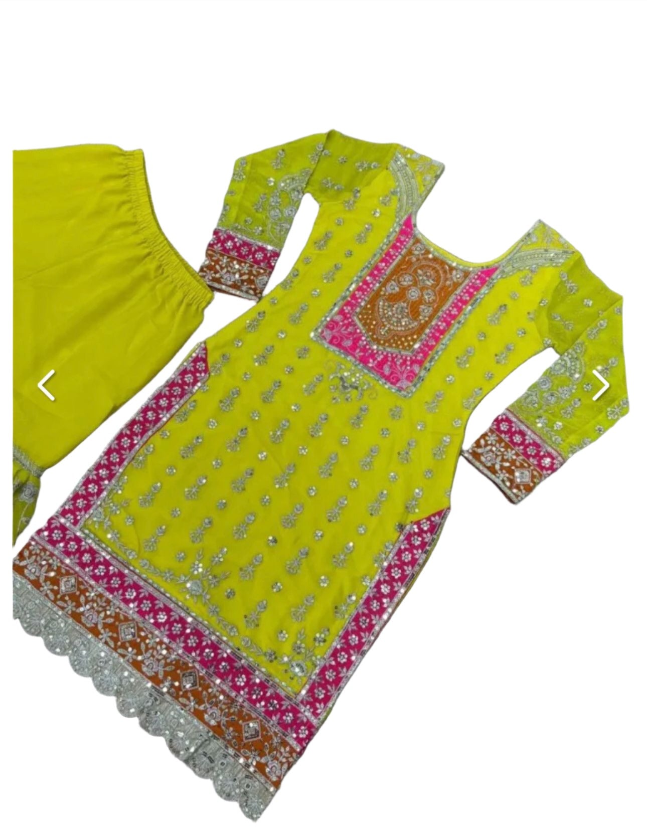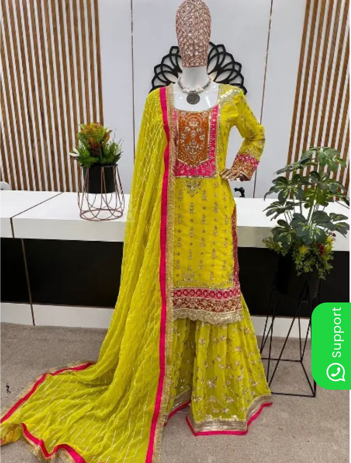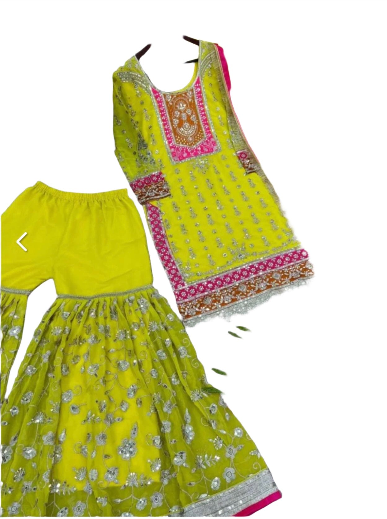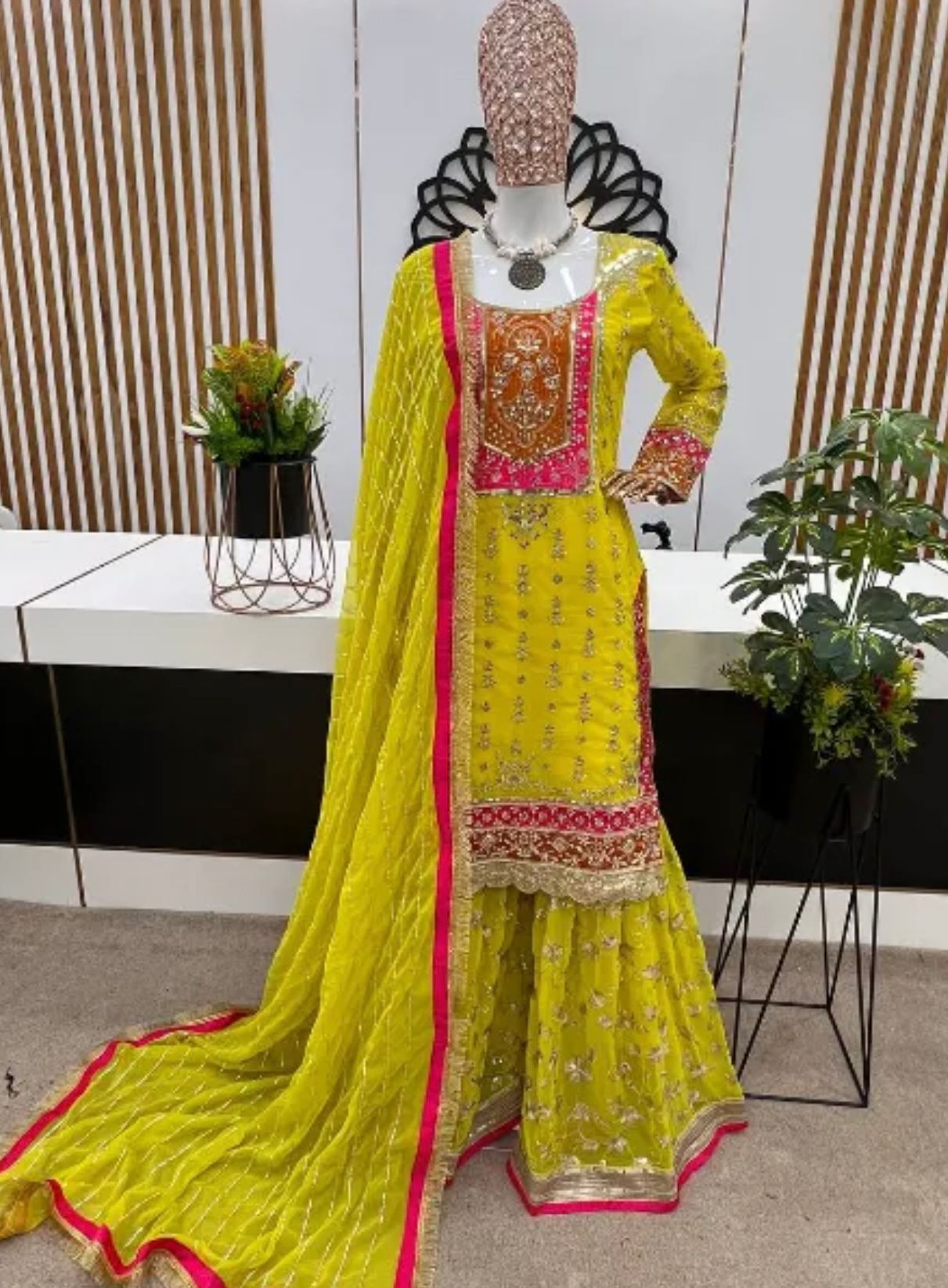 Parrot Color Top Sharara Dress in Georgette With Heavy Embroidery Work