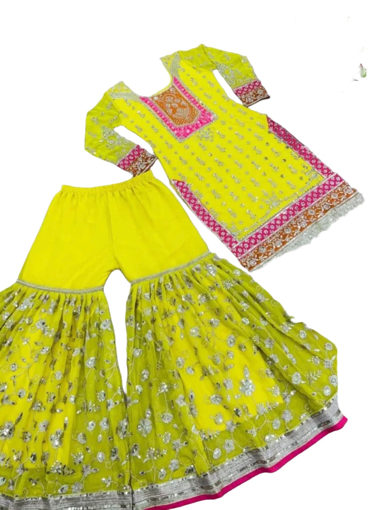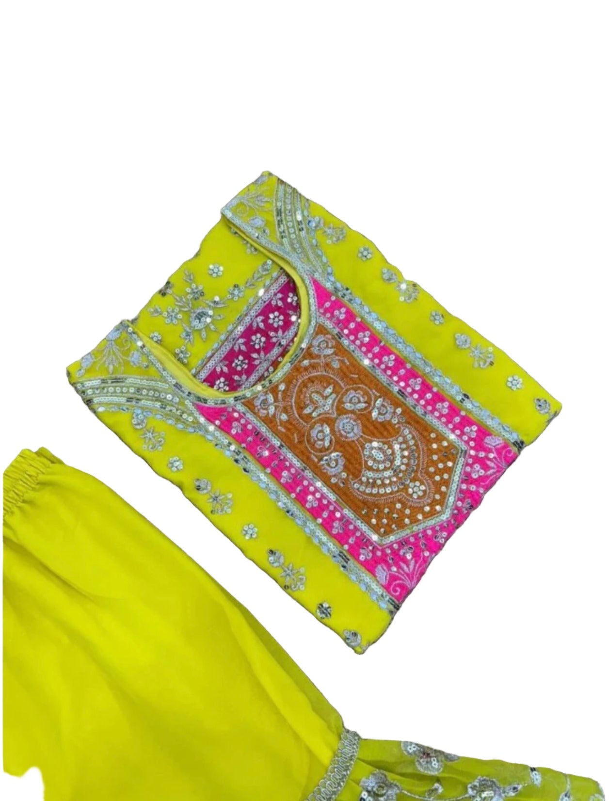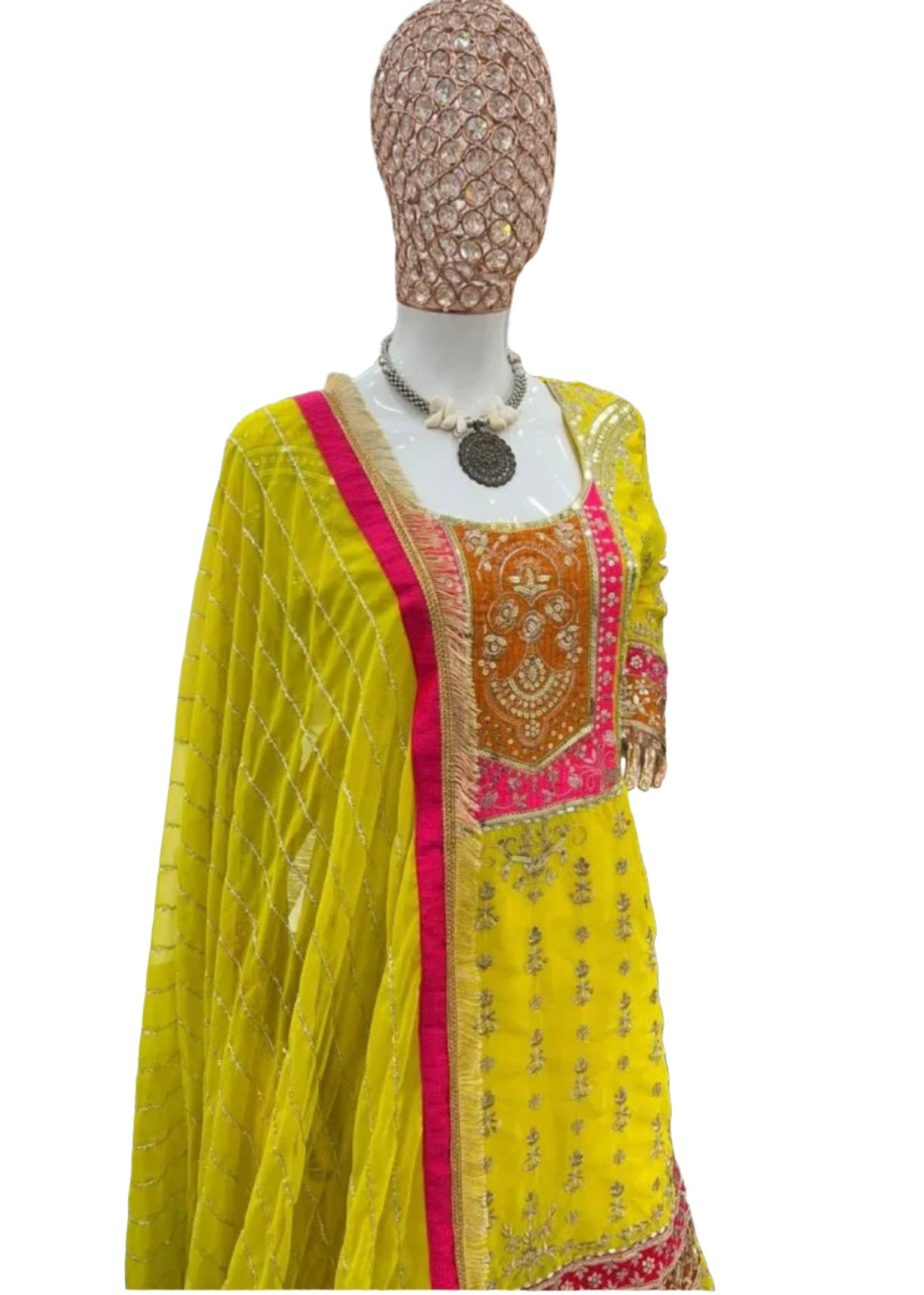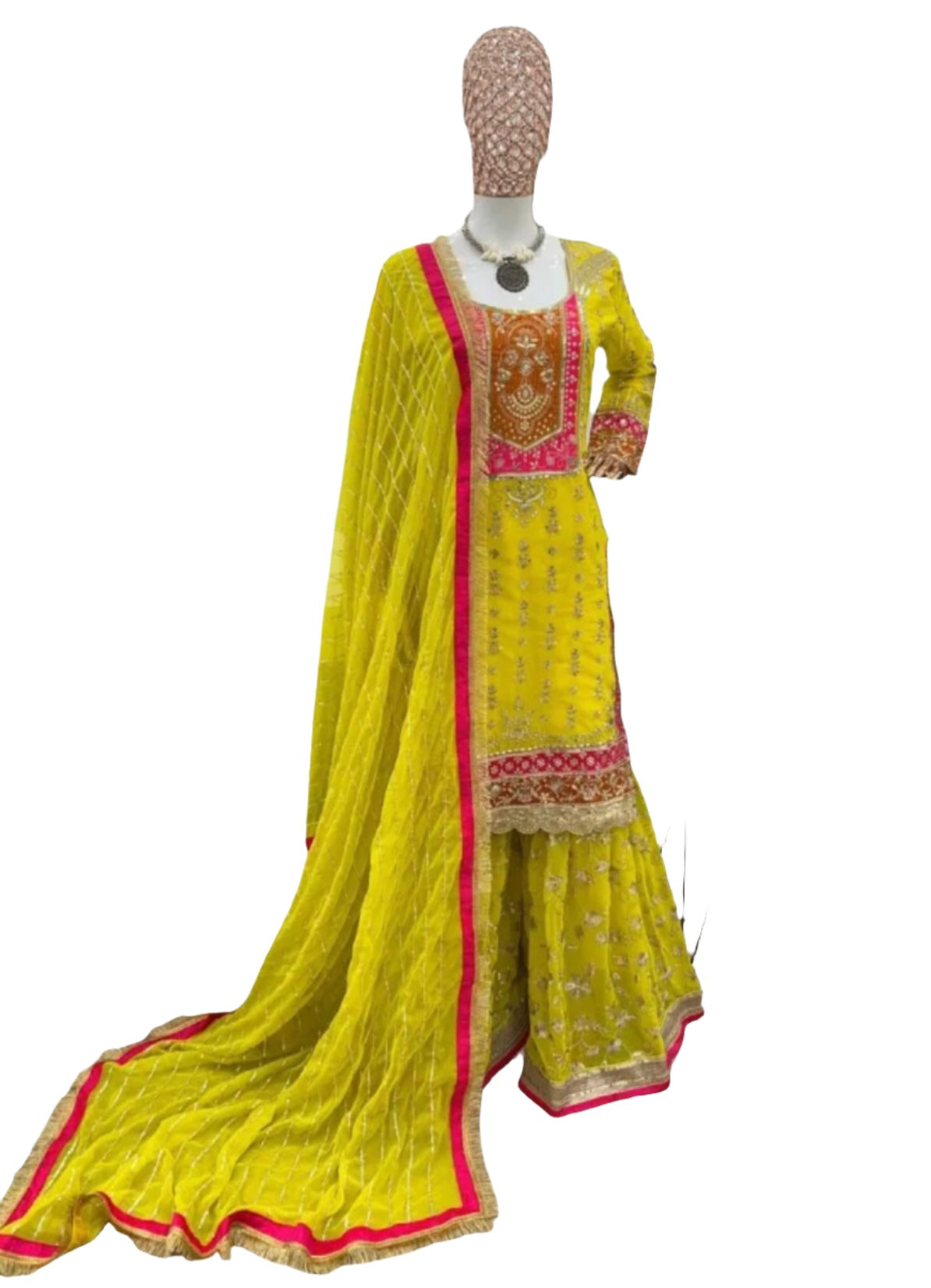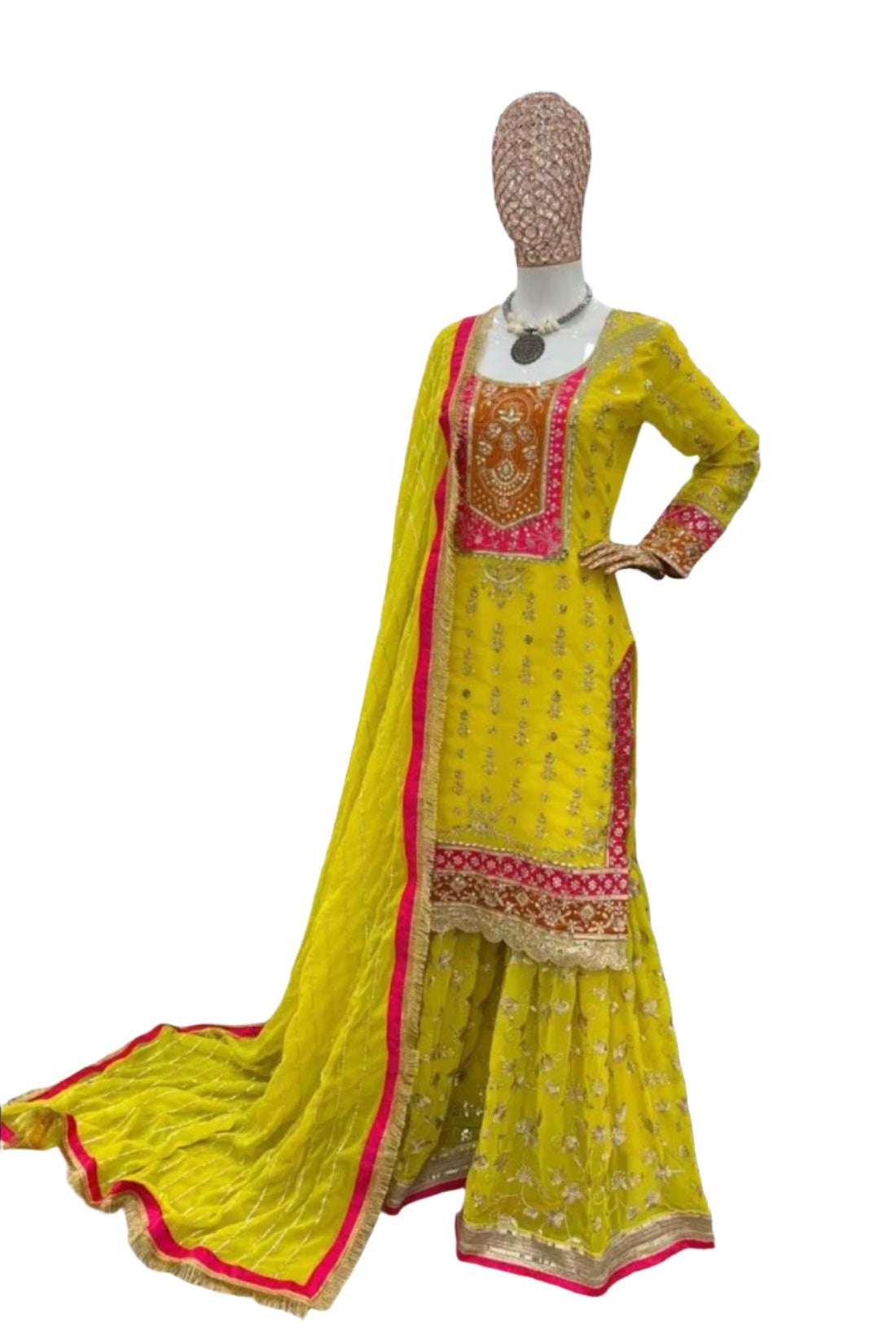 Parrot Color Top Sharara Dress in Georgette With Heavy Embroidery Work