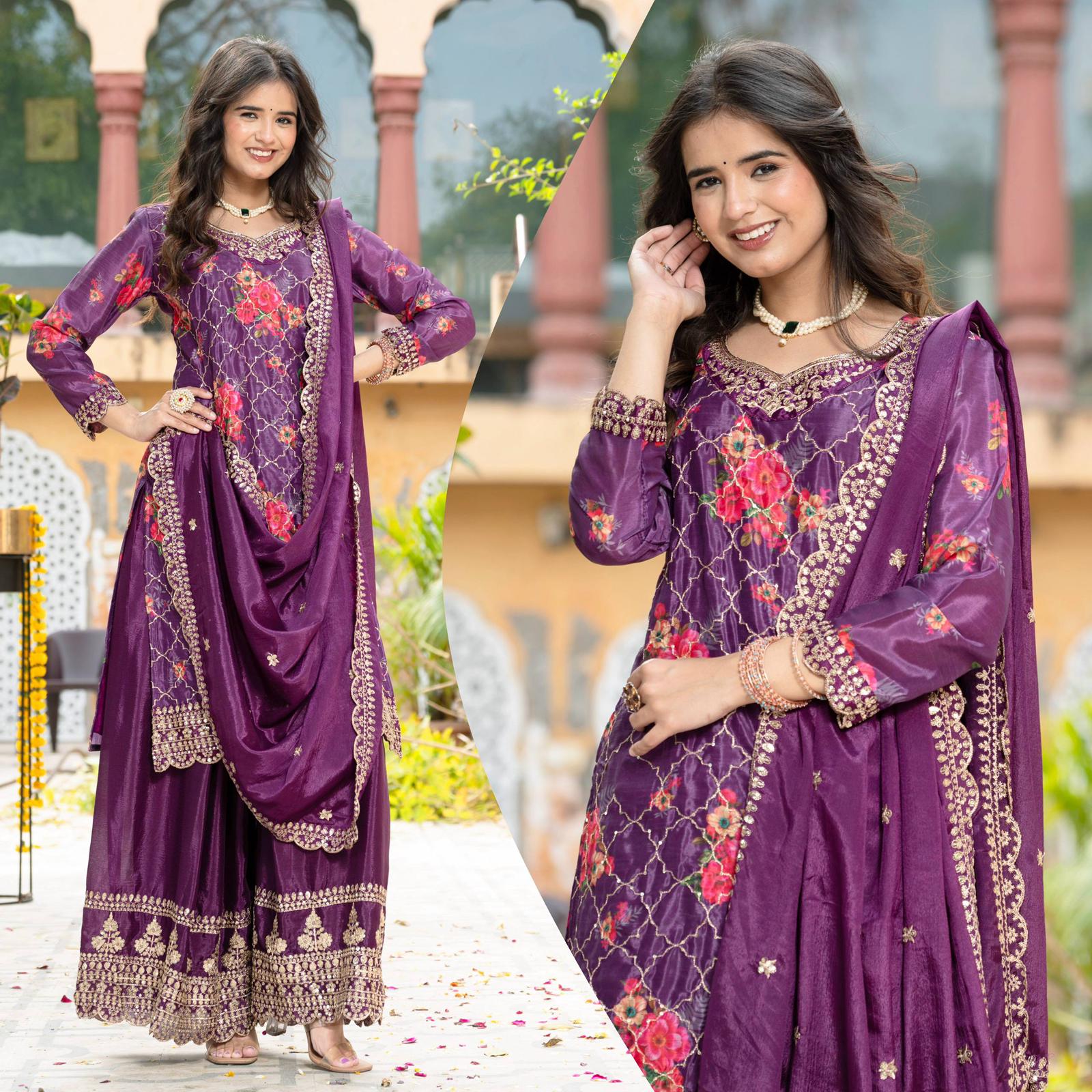 "Elevate your festive look! The perfect blend of tradition and modern elegance, these Sharara/Palazzo sets feature intricate gold embroidery and vibrant florals. Get ready to sparkle! 💖"