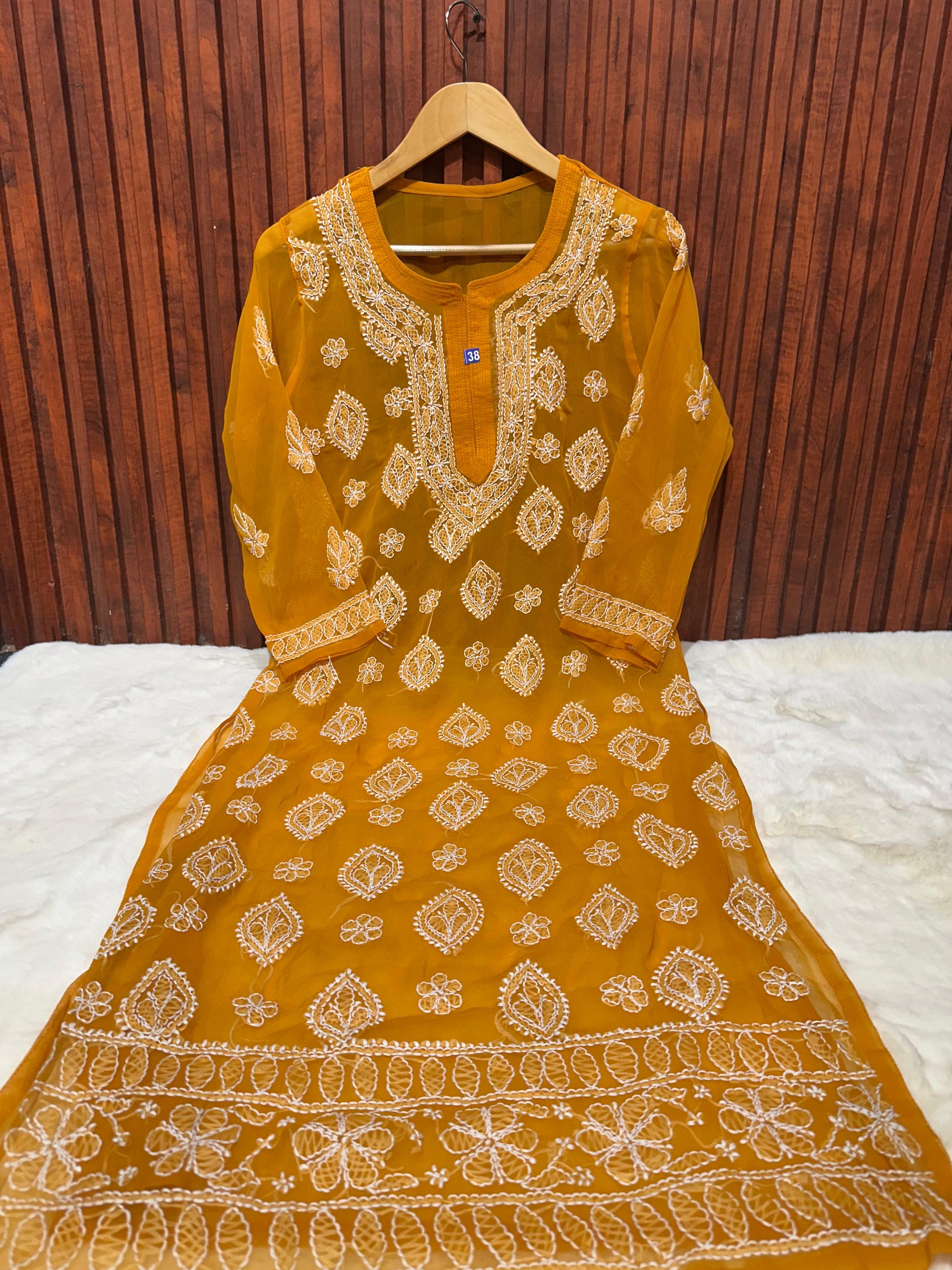 Yellow Women's Georgette Chikankari Embroidery Straight Kurta in Berlin