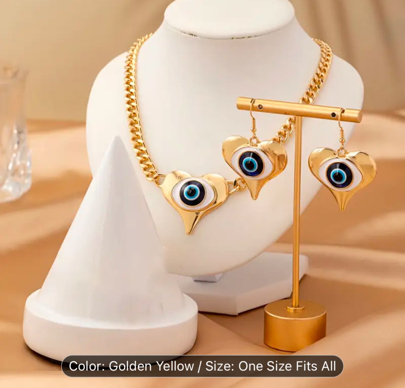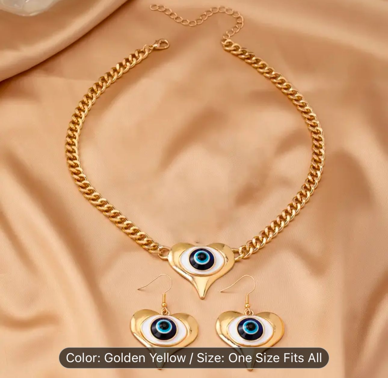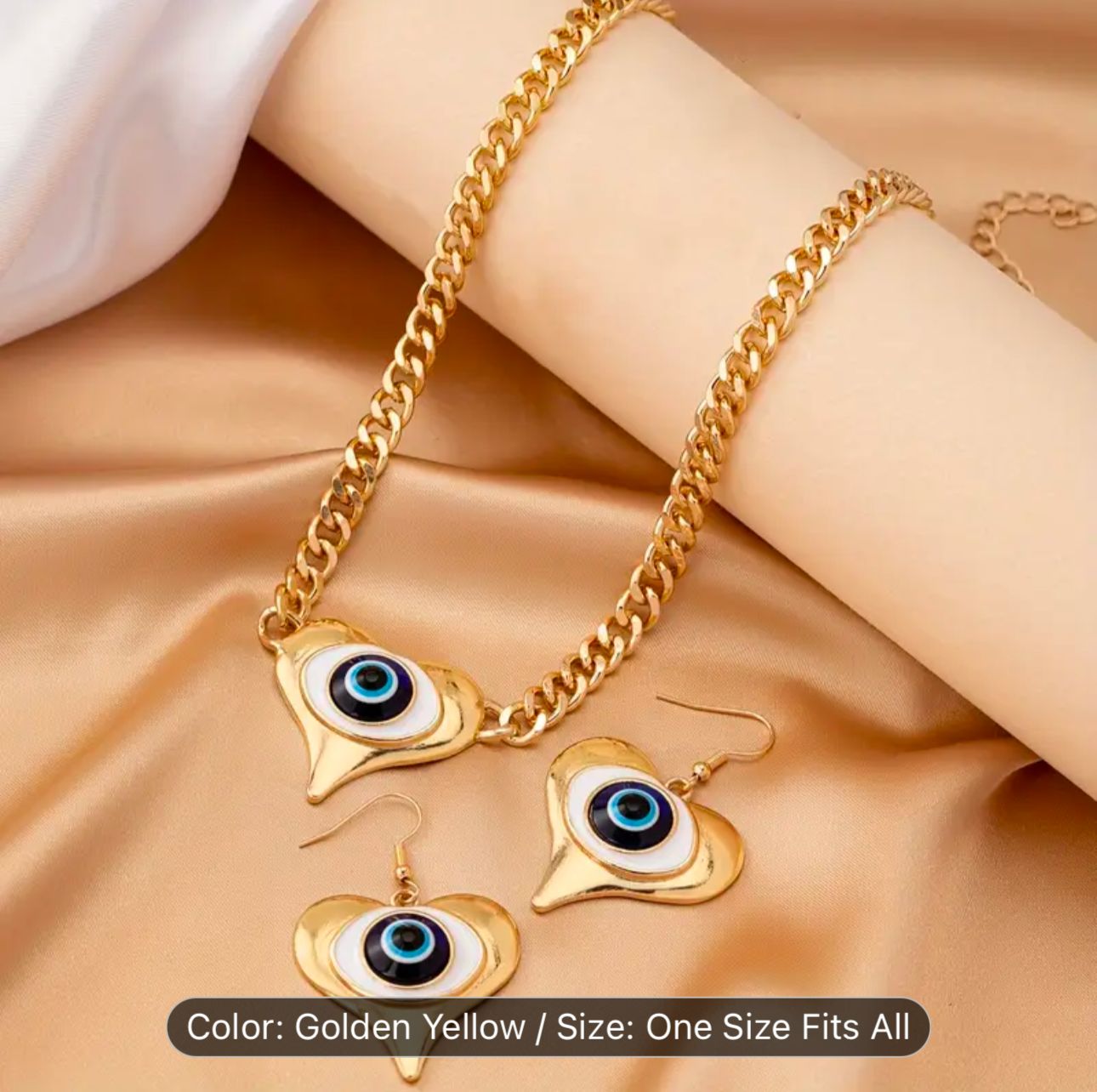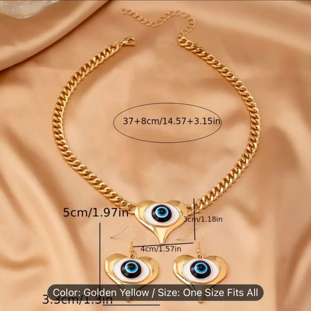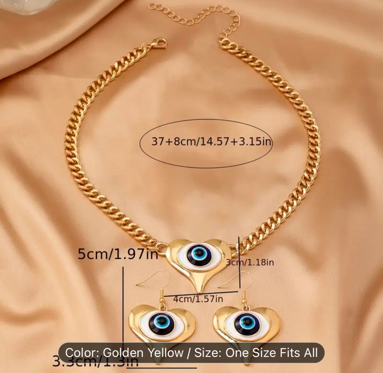 Evil Eye Pendant Necklace & Earrings Set in Germany