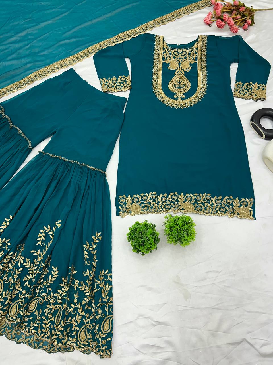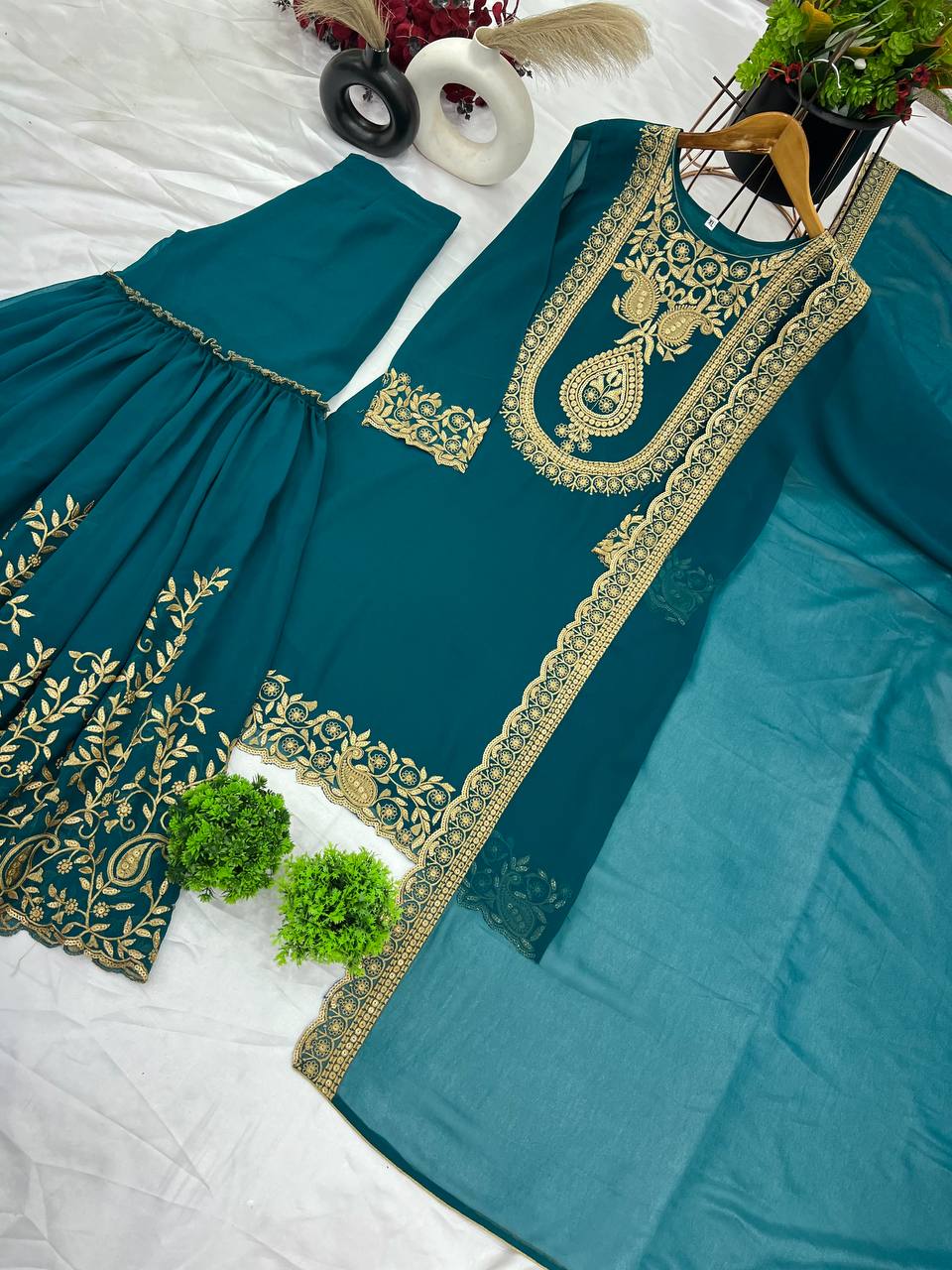 Top Fabric :Blooming Faux Georgette With Heavy Embroidery Sequence Thread Work With Full Sleeve