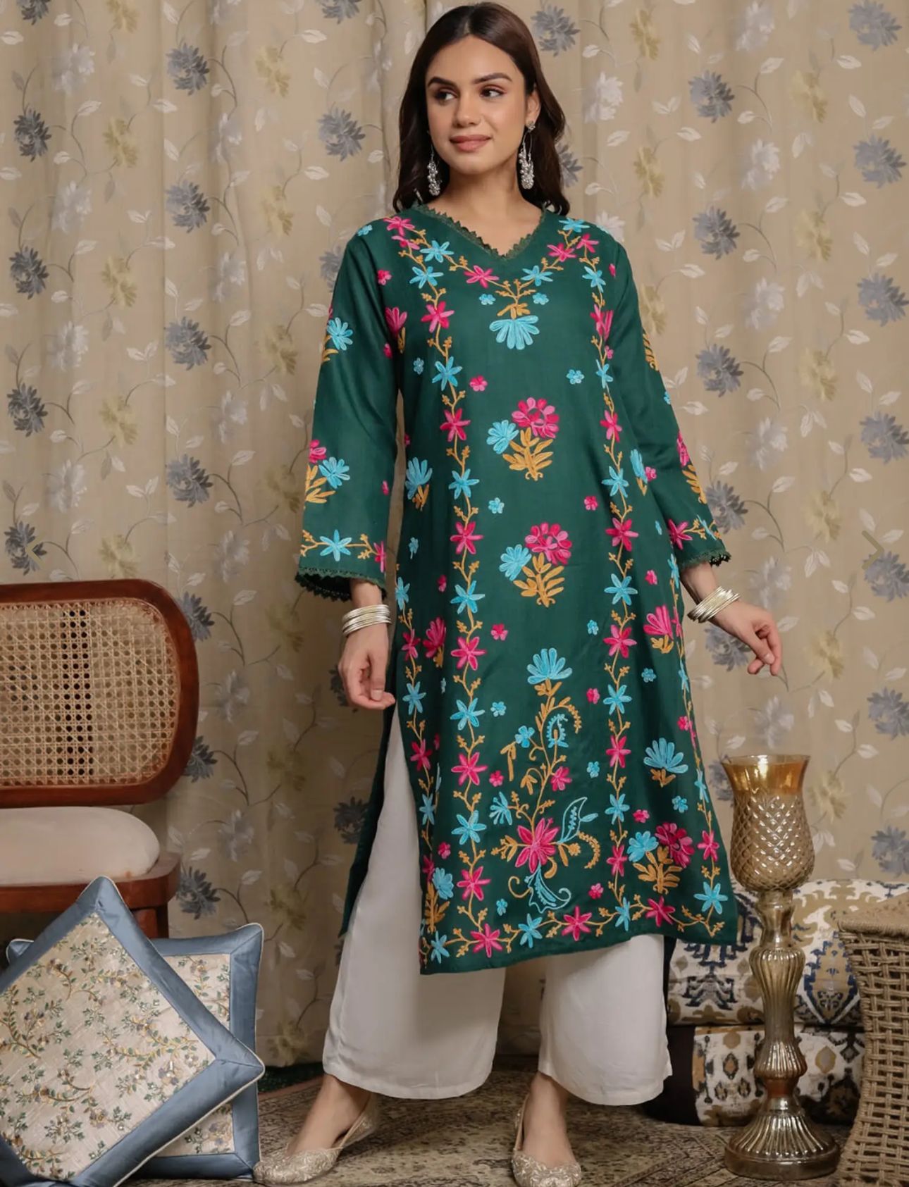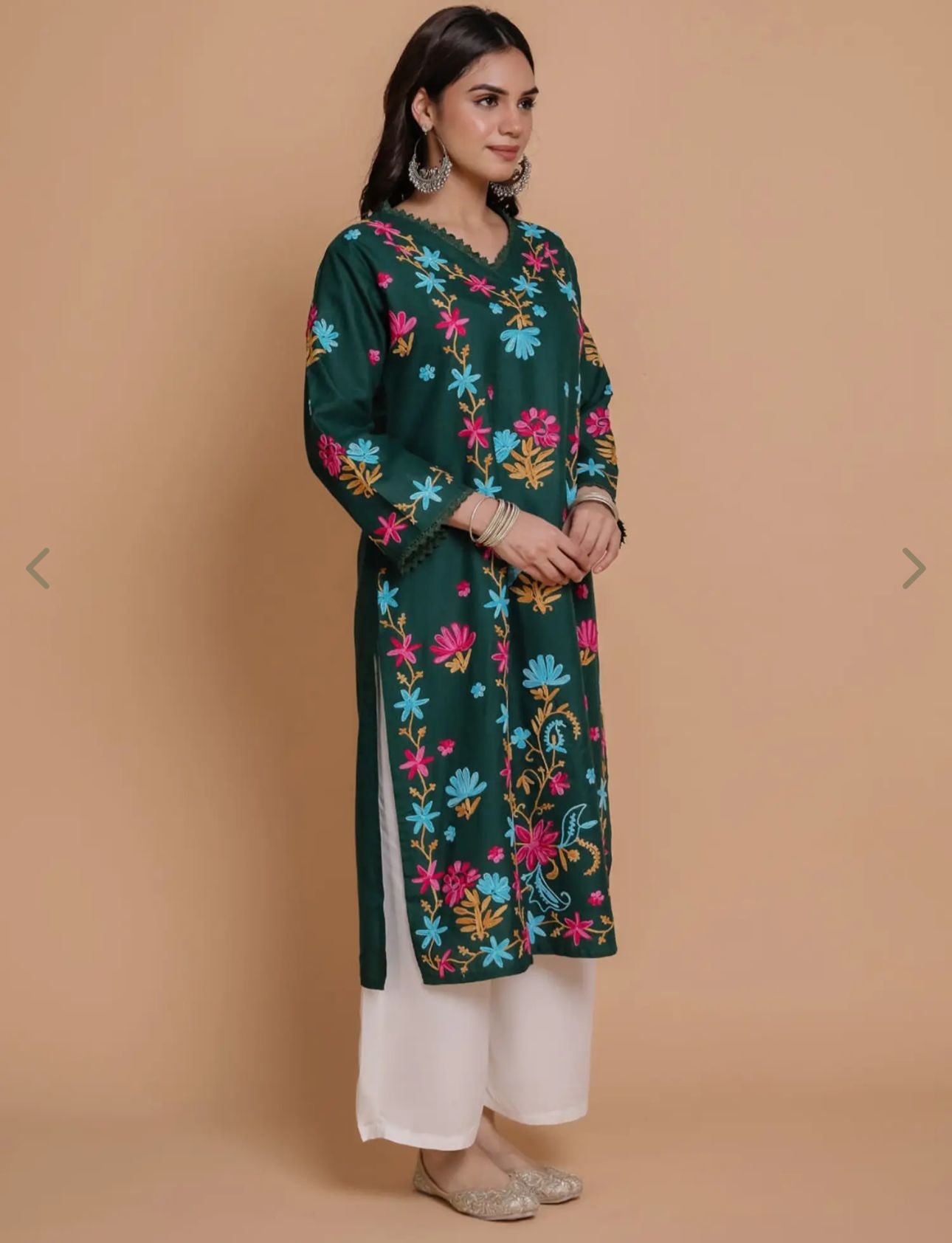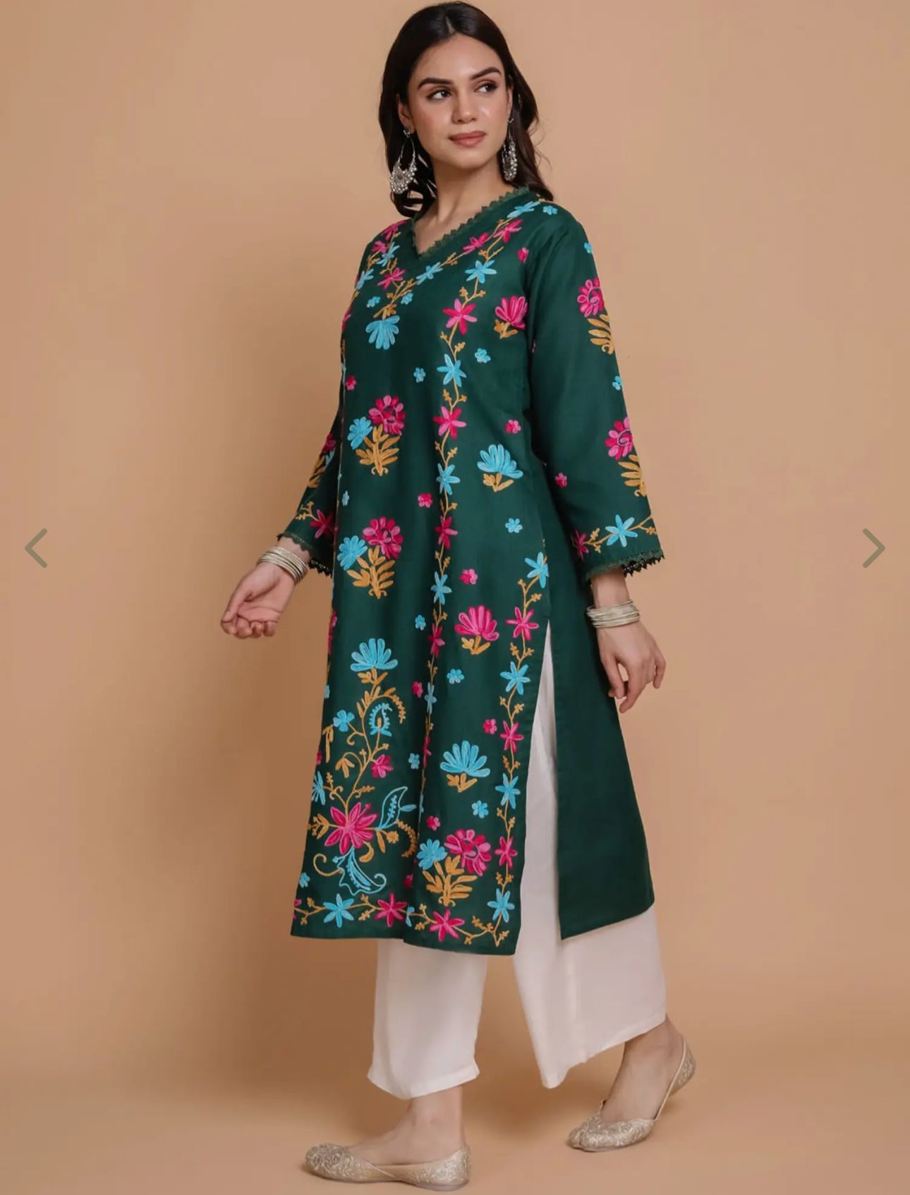 Floral Embroidered Pastels Cotton Straight Kurta in Munich