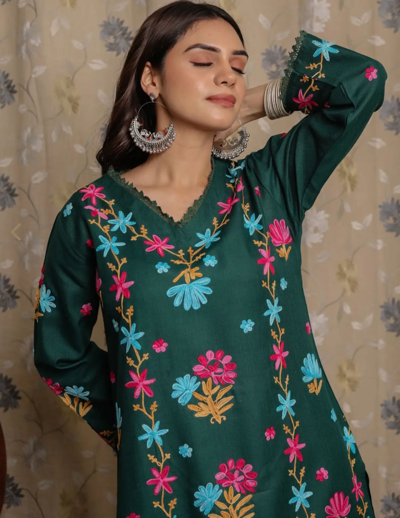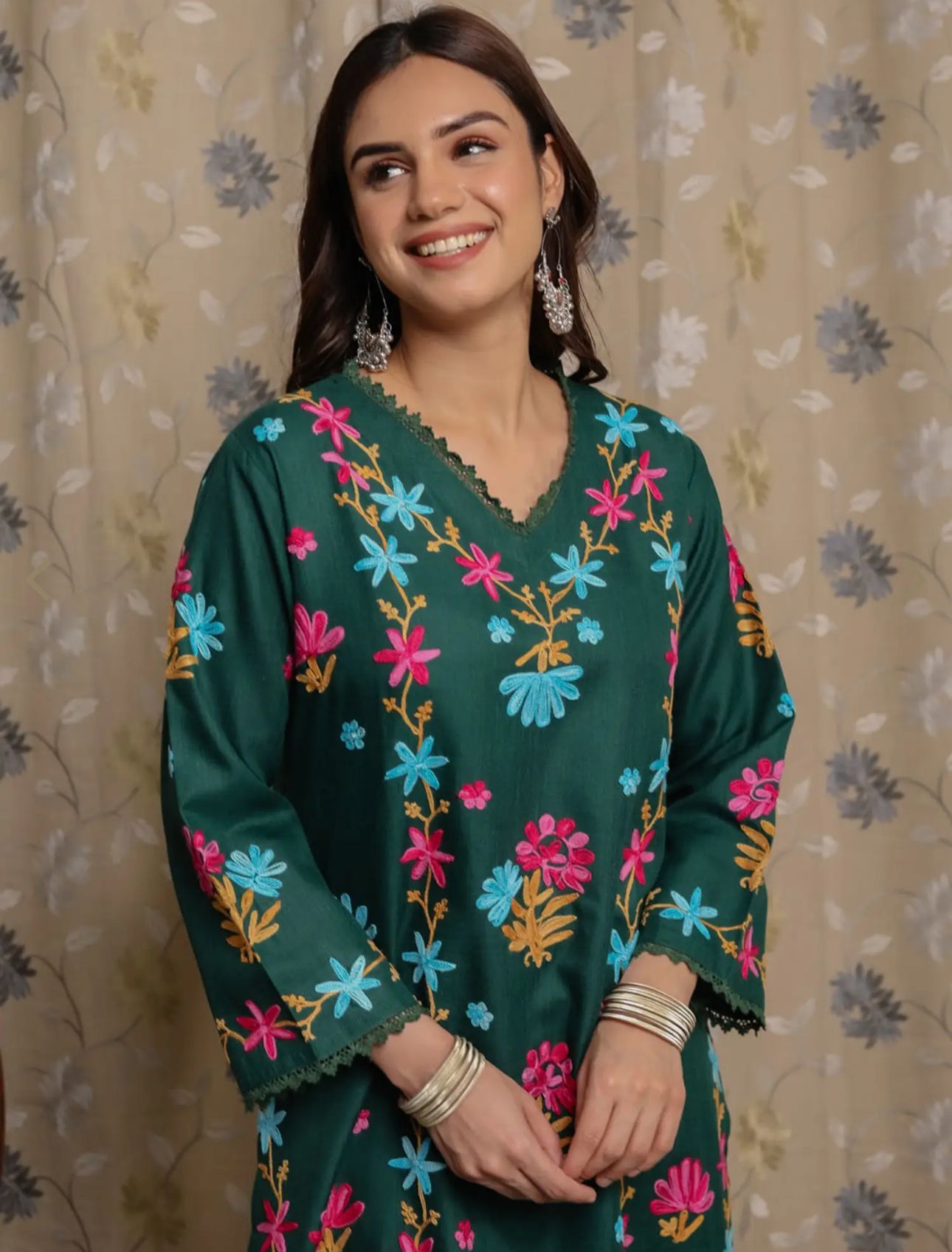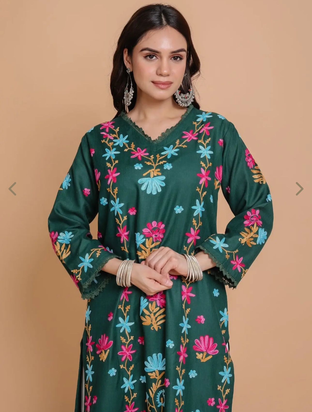 Floral Embroidered Pastels Cotton Straight Kurta in Munich