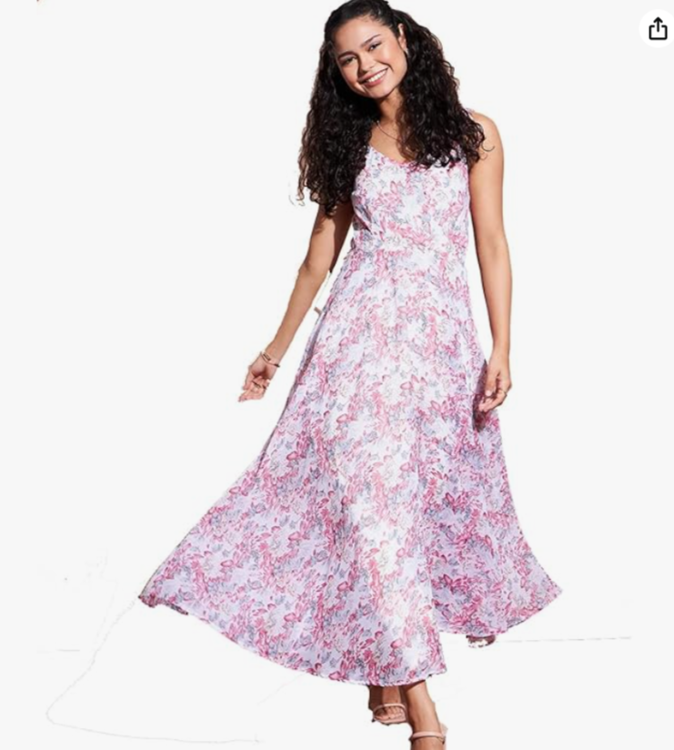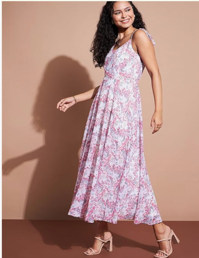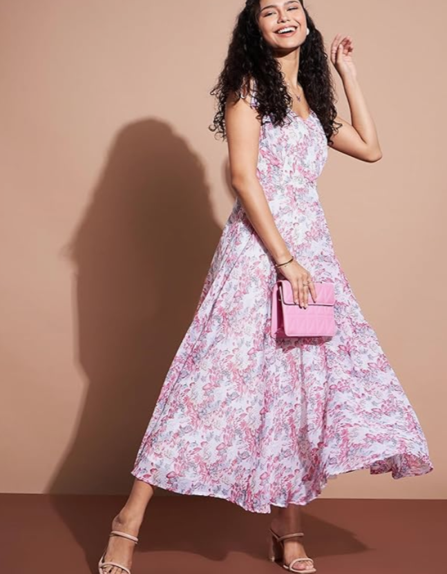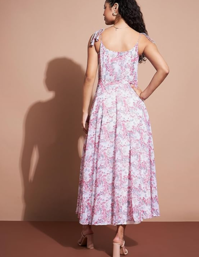 Floral Printed Sleeveless Georgette A-Line Dress in Germany