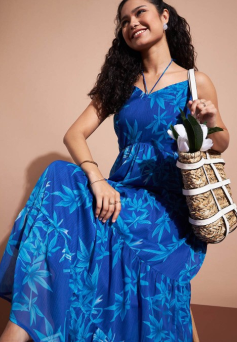 Floral Printed Sleeveless Georgette A-Line Midi Dress in Germany