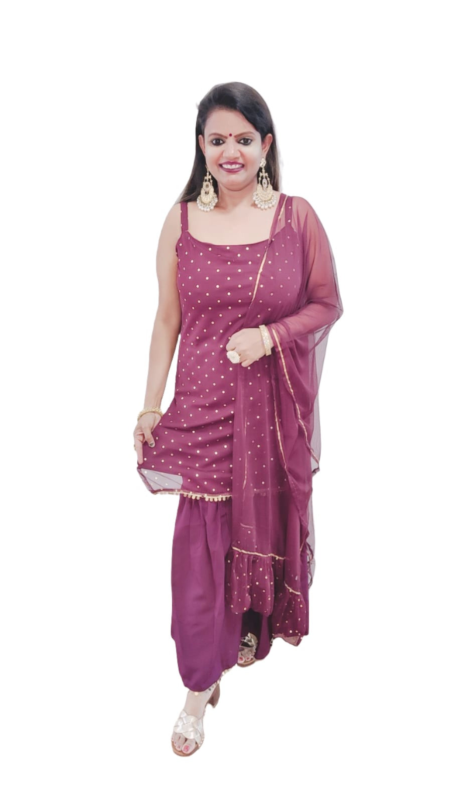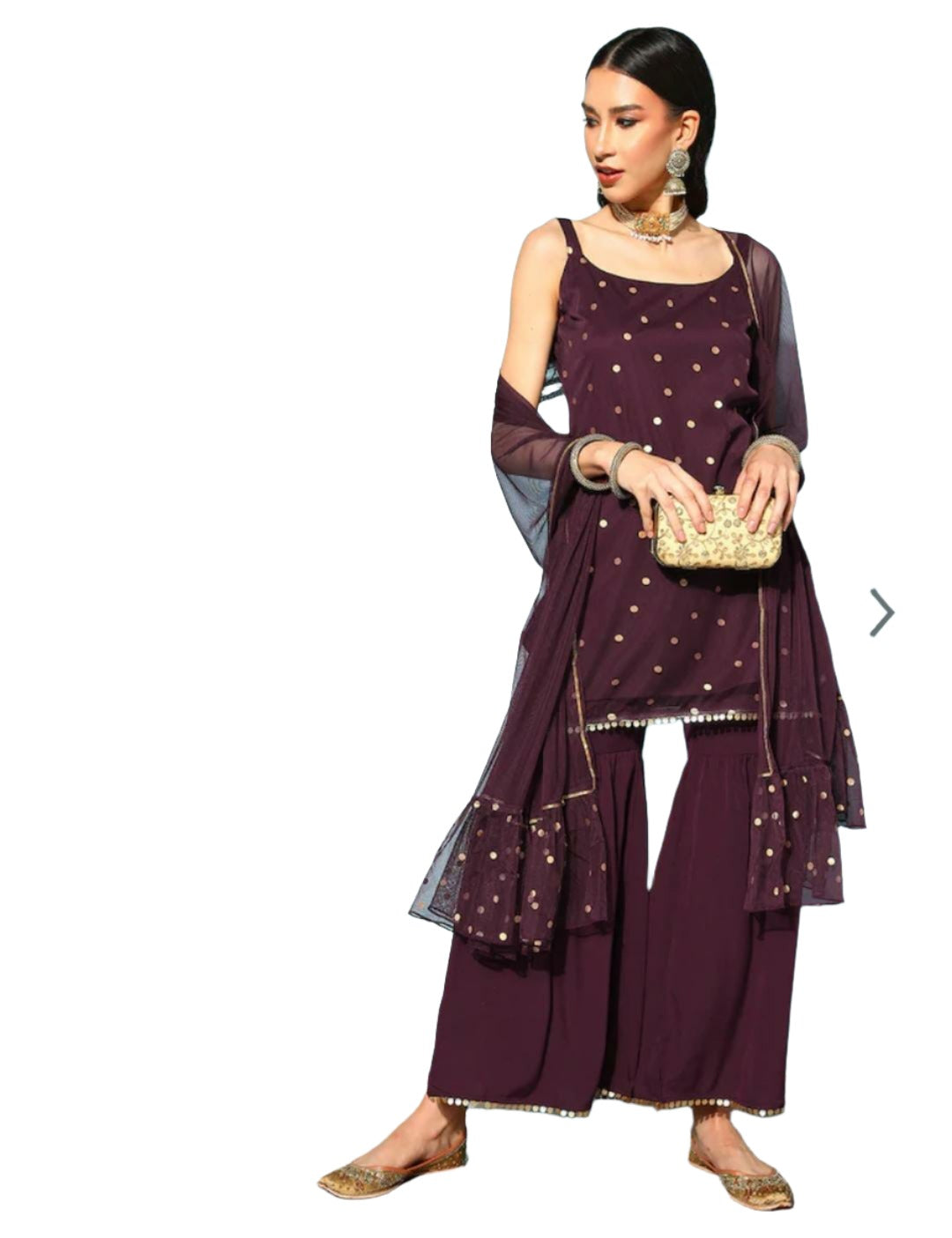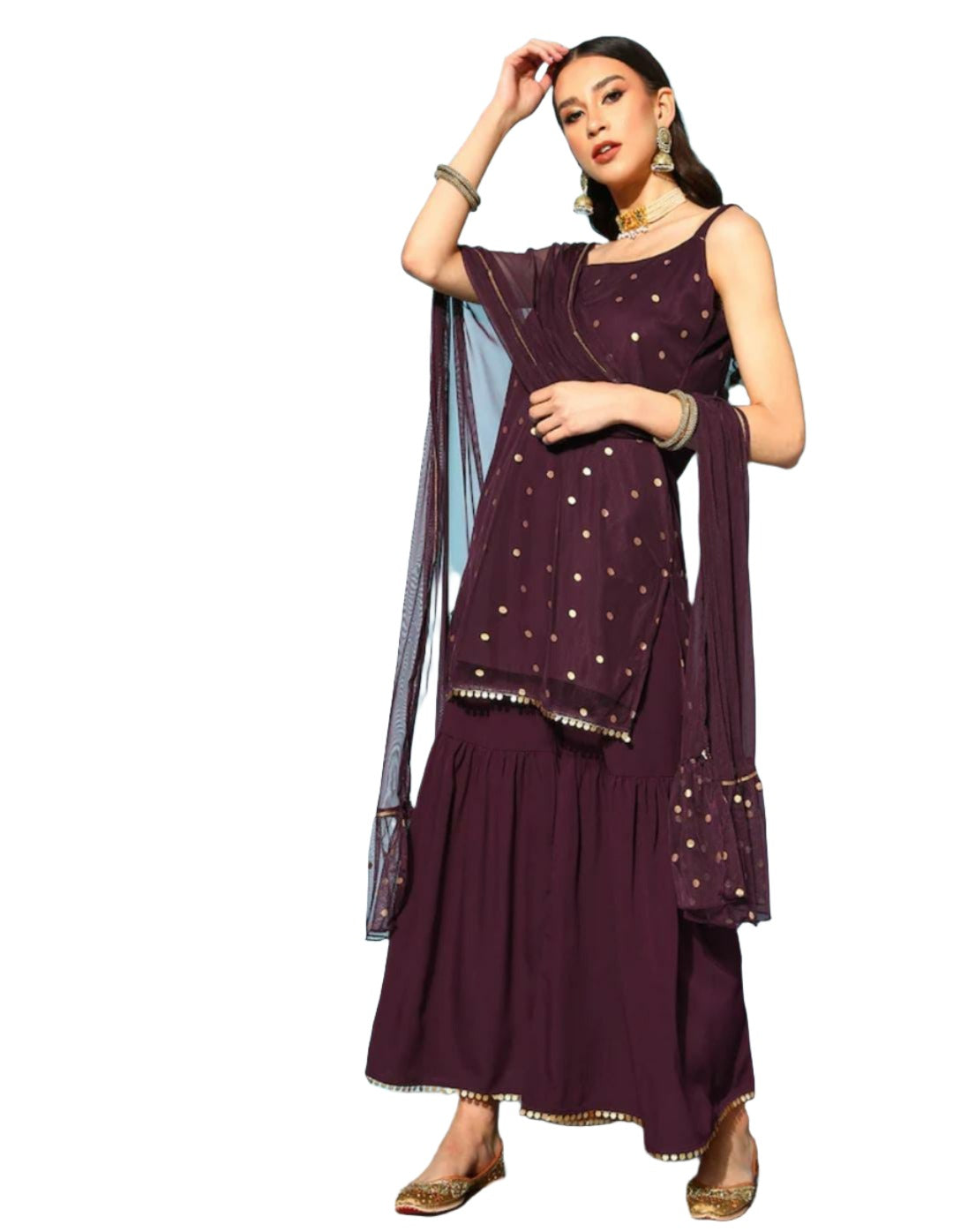 Geometric Crepe Top to Toe Fusion Kurta Set