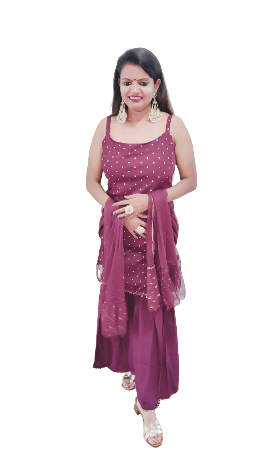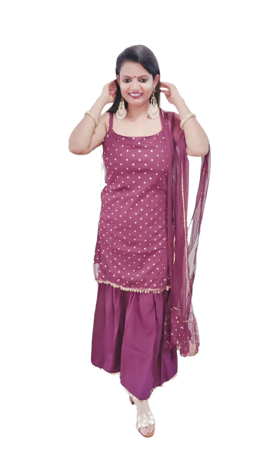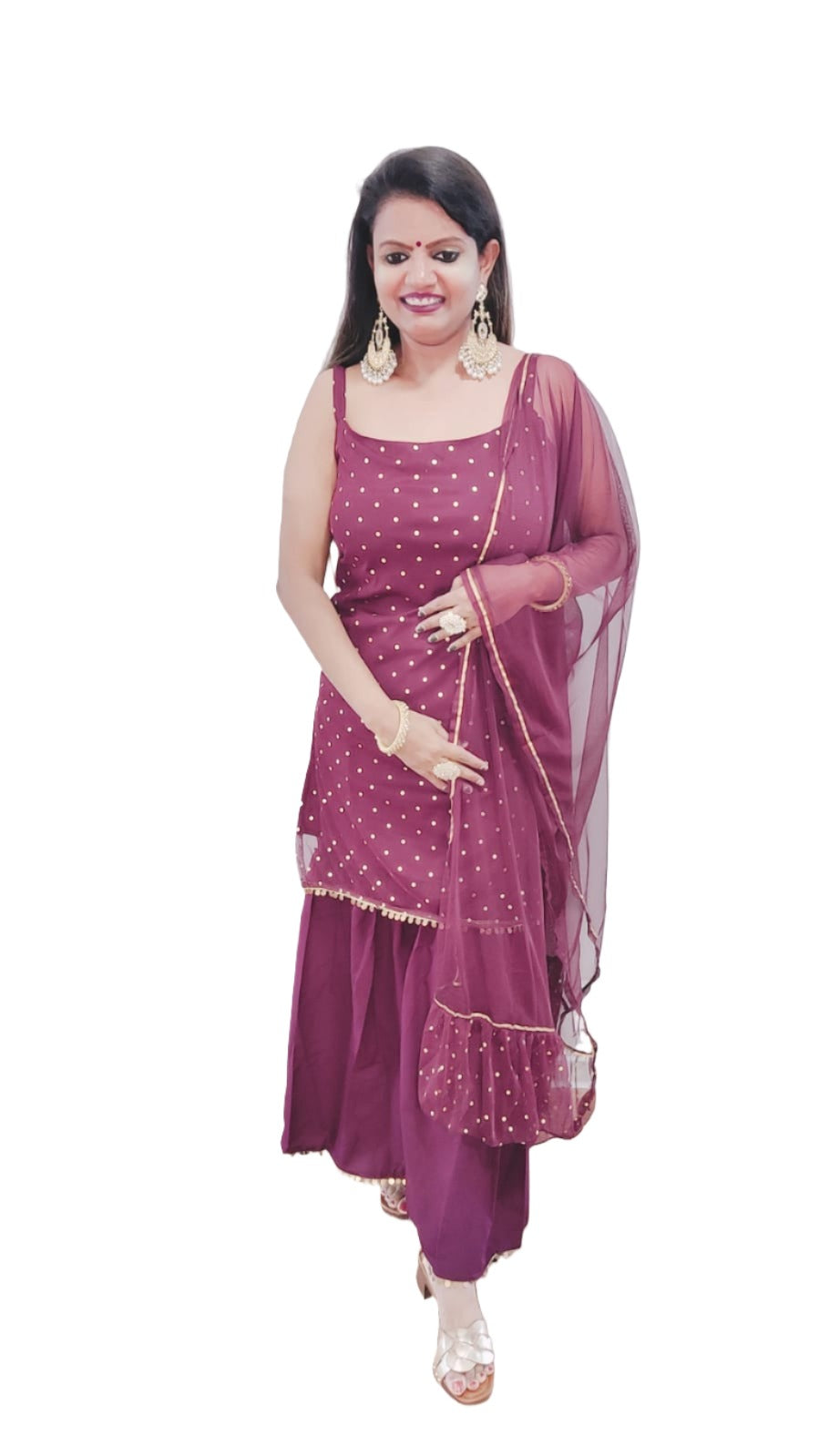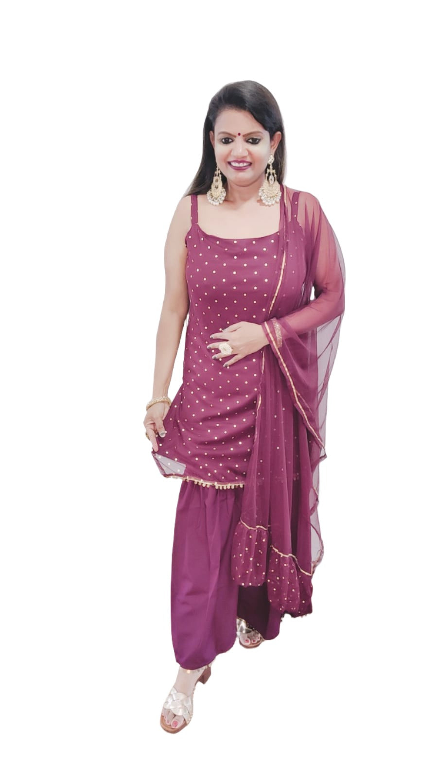 Geometric Crepe Top to Toe Fusion Kurta Set