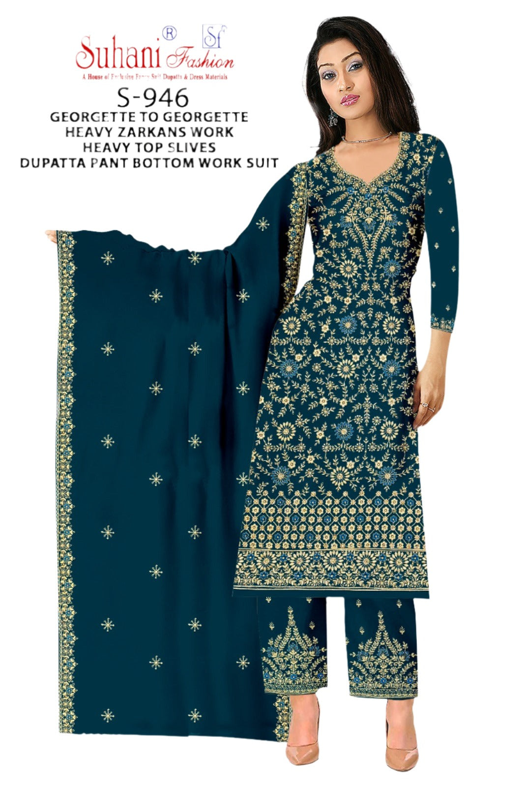 Georgette Heavy Zarkans Works dupatta pant Bottom Work Suit