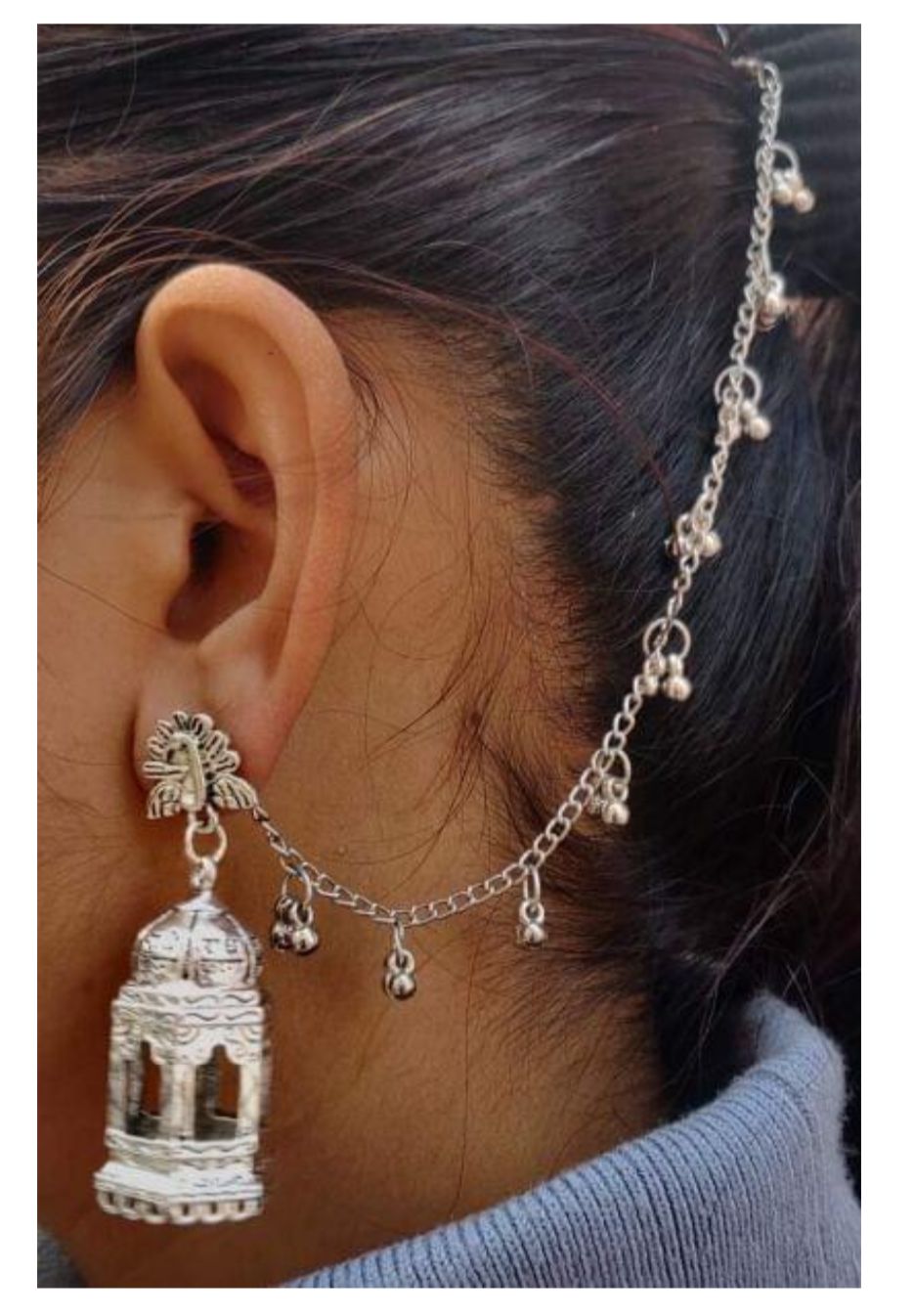 German Silver Single Line Ghunghru Earchain Stud Jhumki in Munich