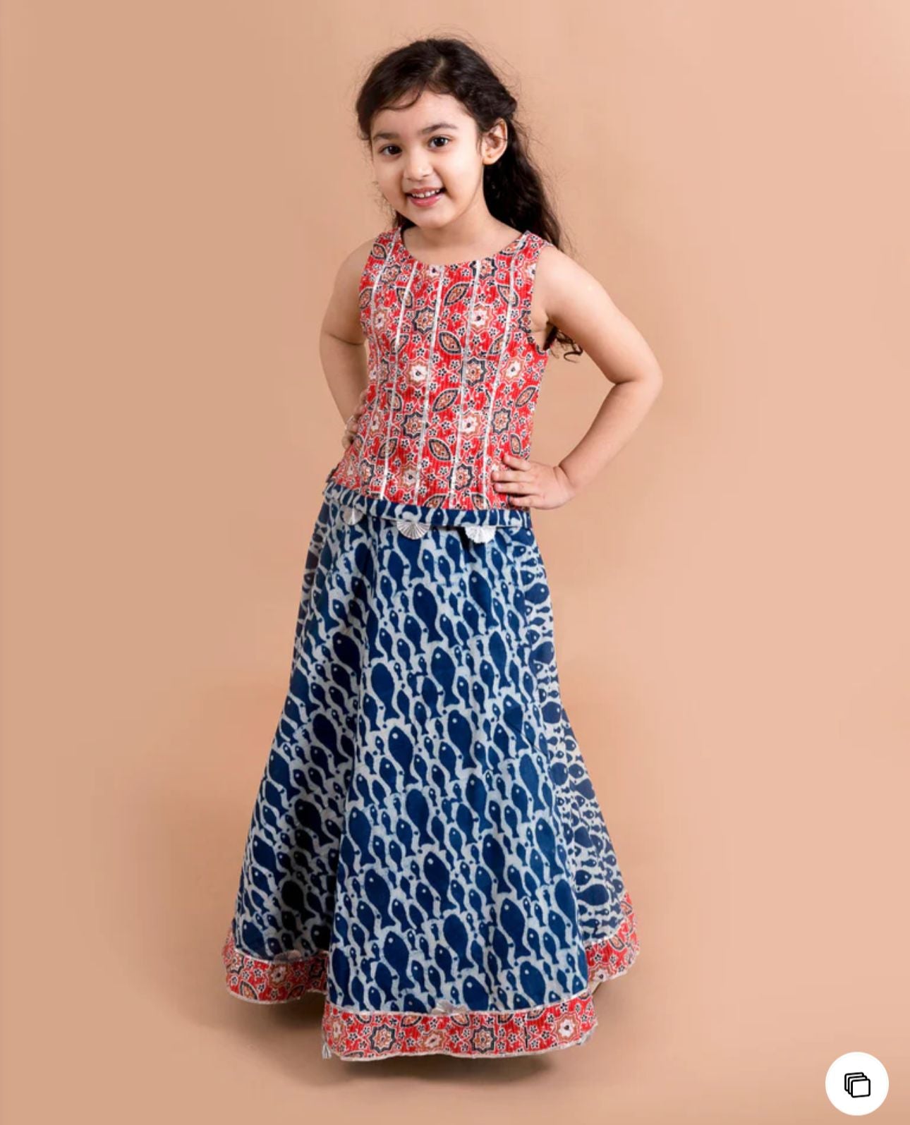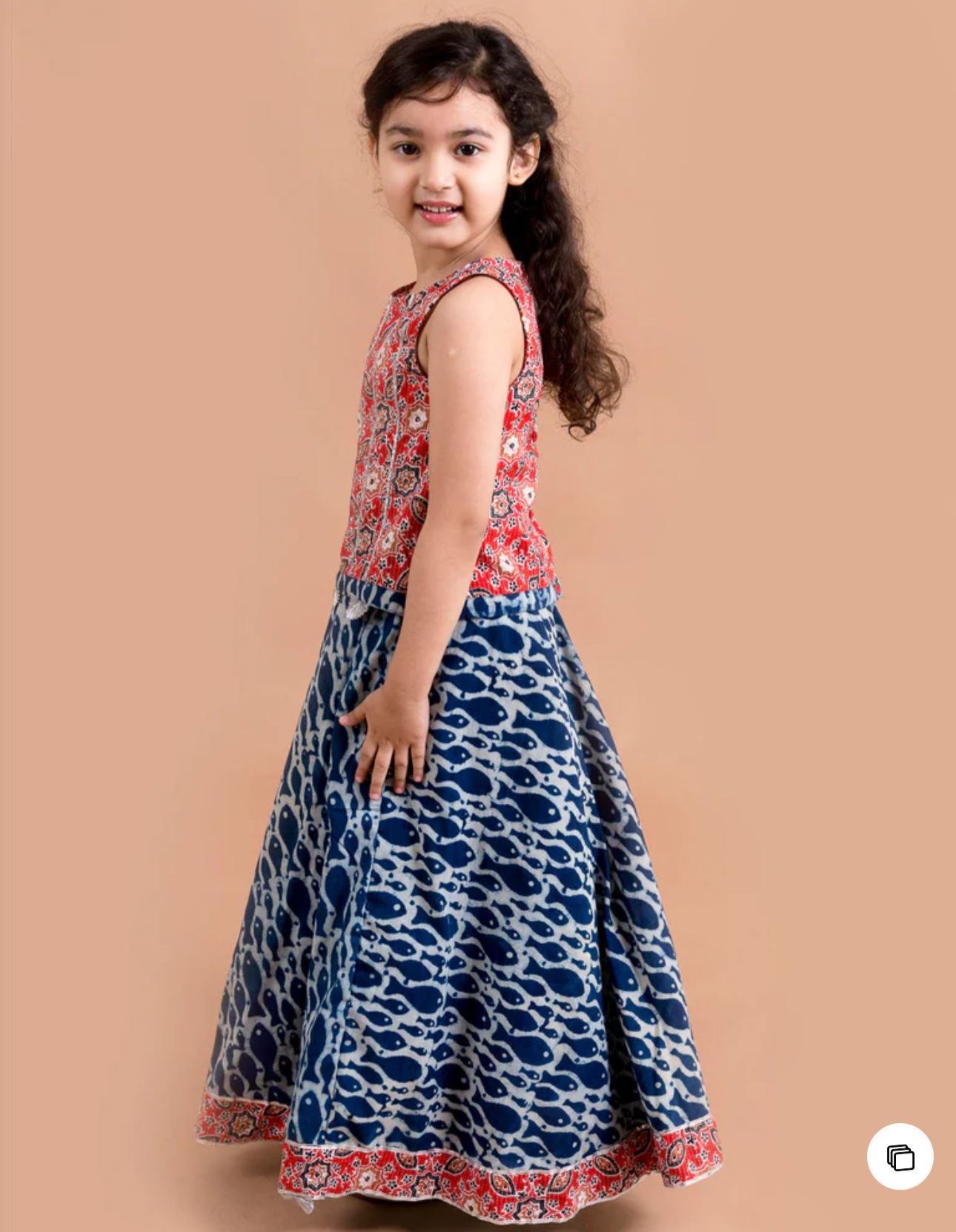 Girls Blue & Red Printed Ready to Wear Lehenga & Choli in Germany