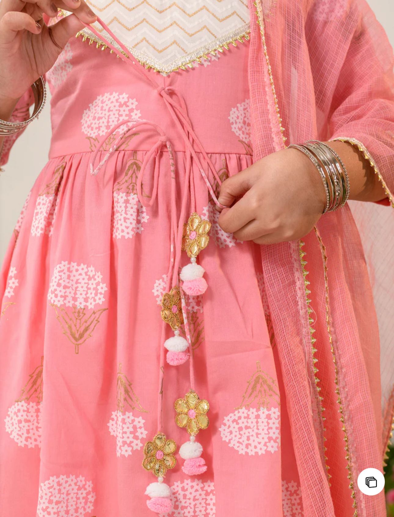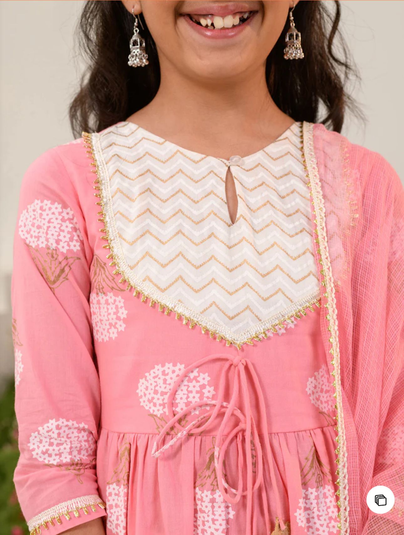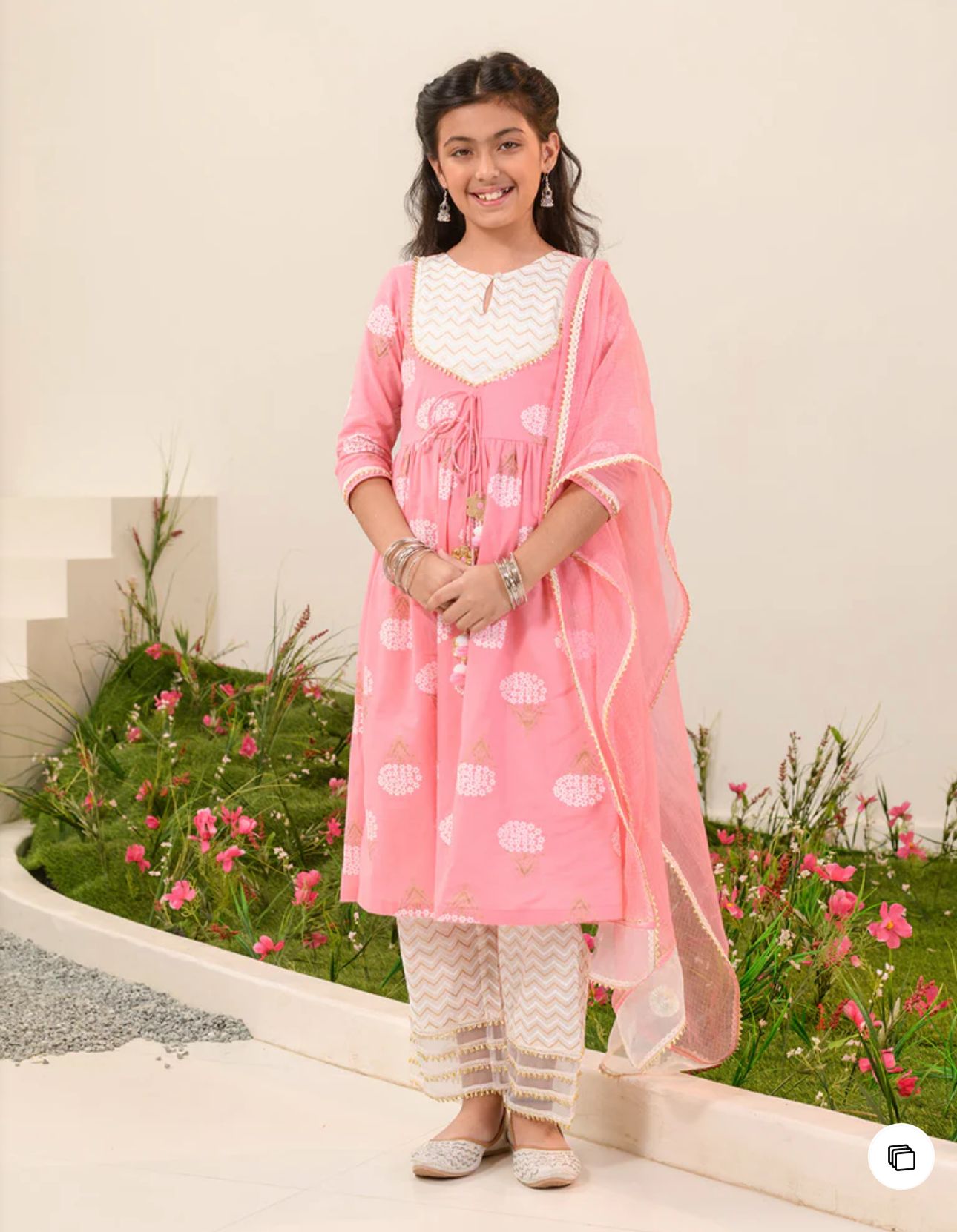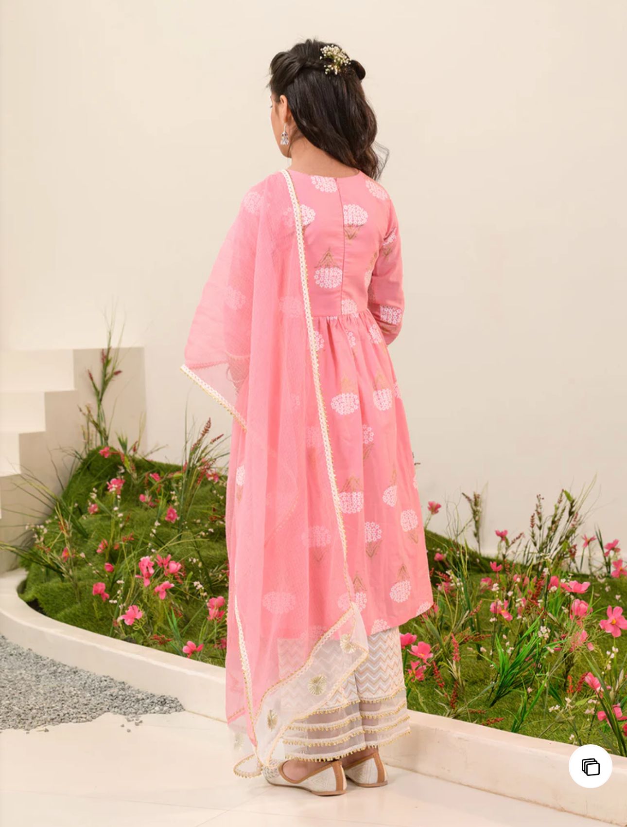 Girls Floral Printed Regular Pure Cotton Kurta with Trousers & Dupatta
