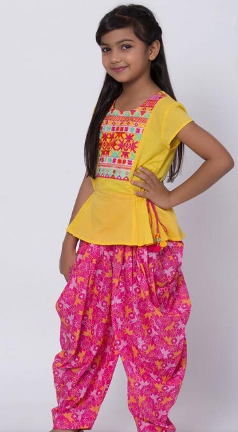 Girls Round Neck Ethnic Tunic and Dhoti Pant Set