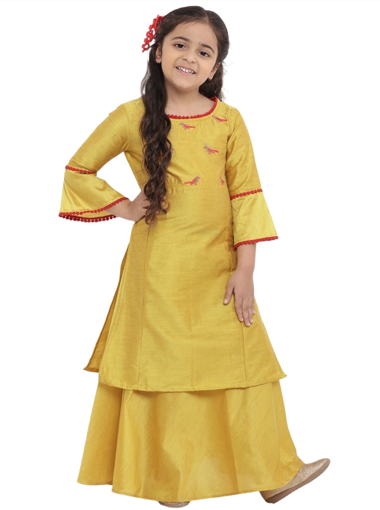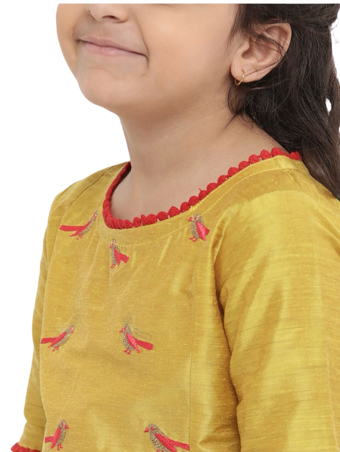 Kurta with Skirt for Girls Yellow Embroidered Pure Cotton