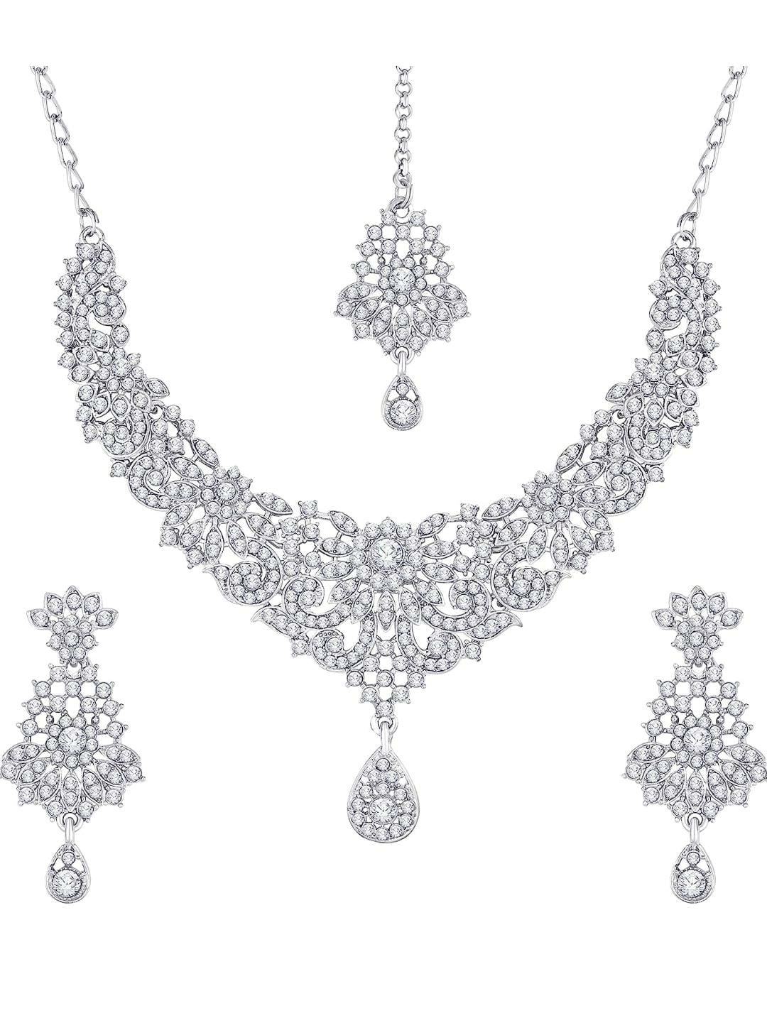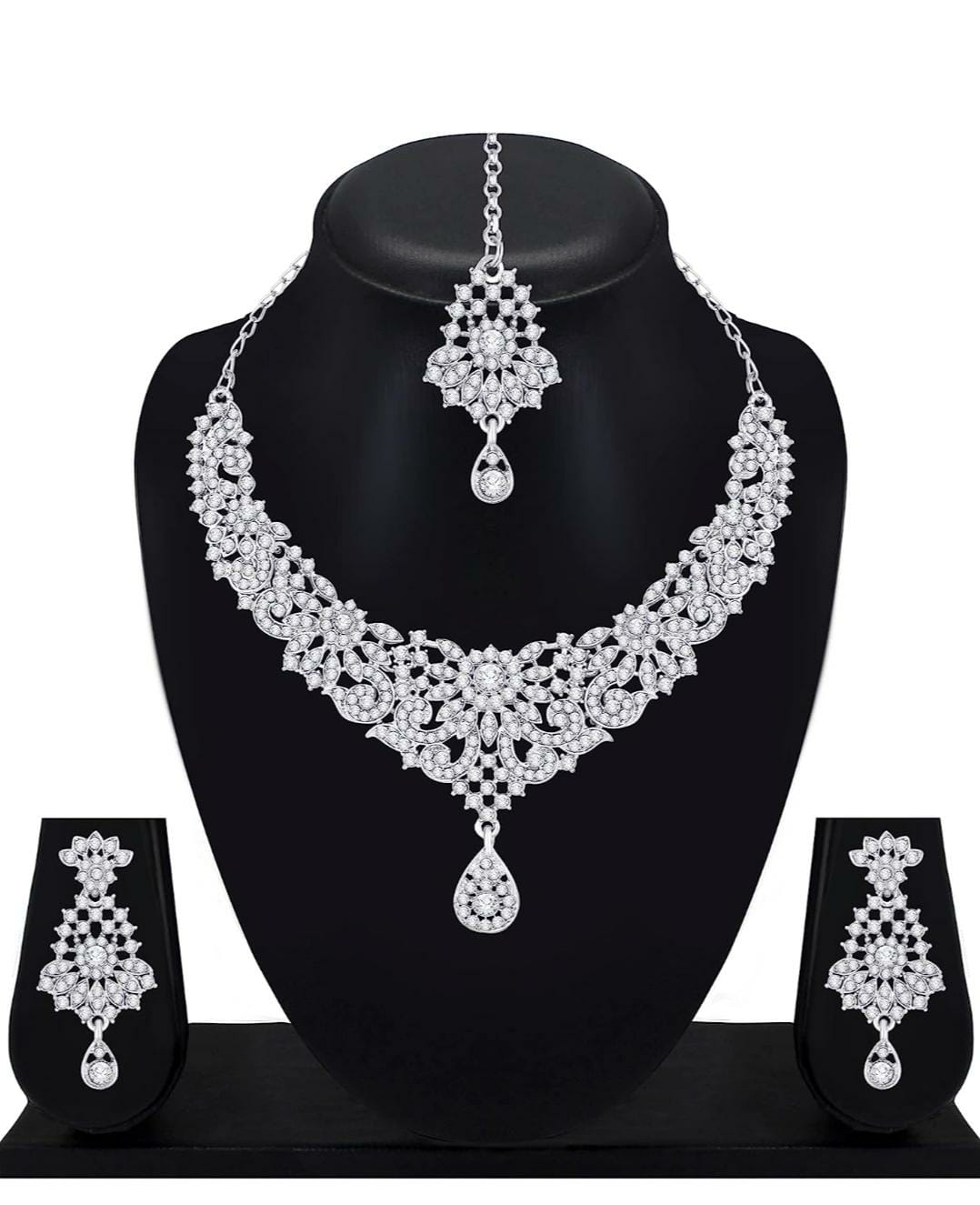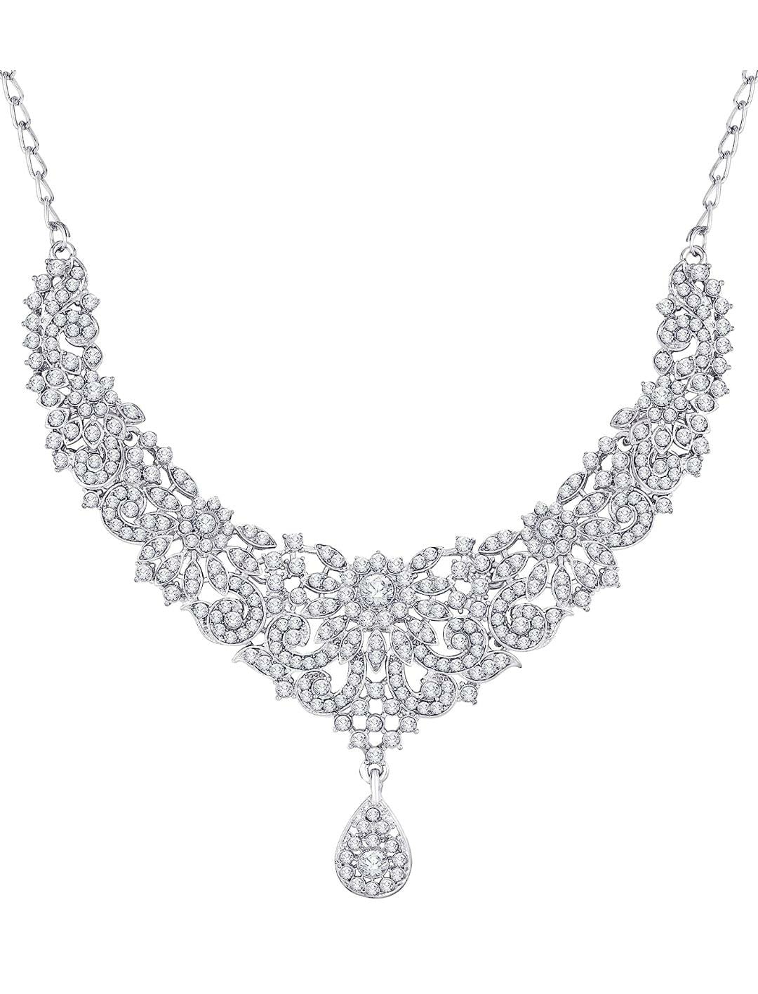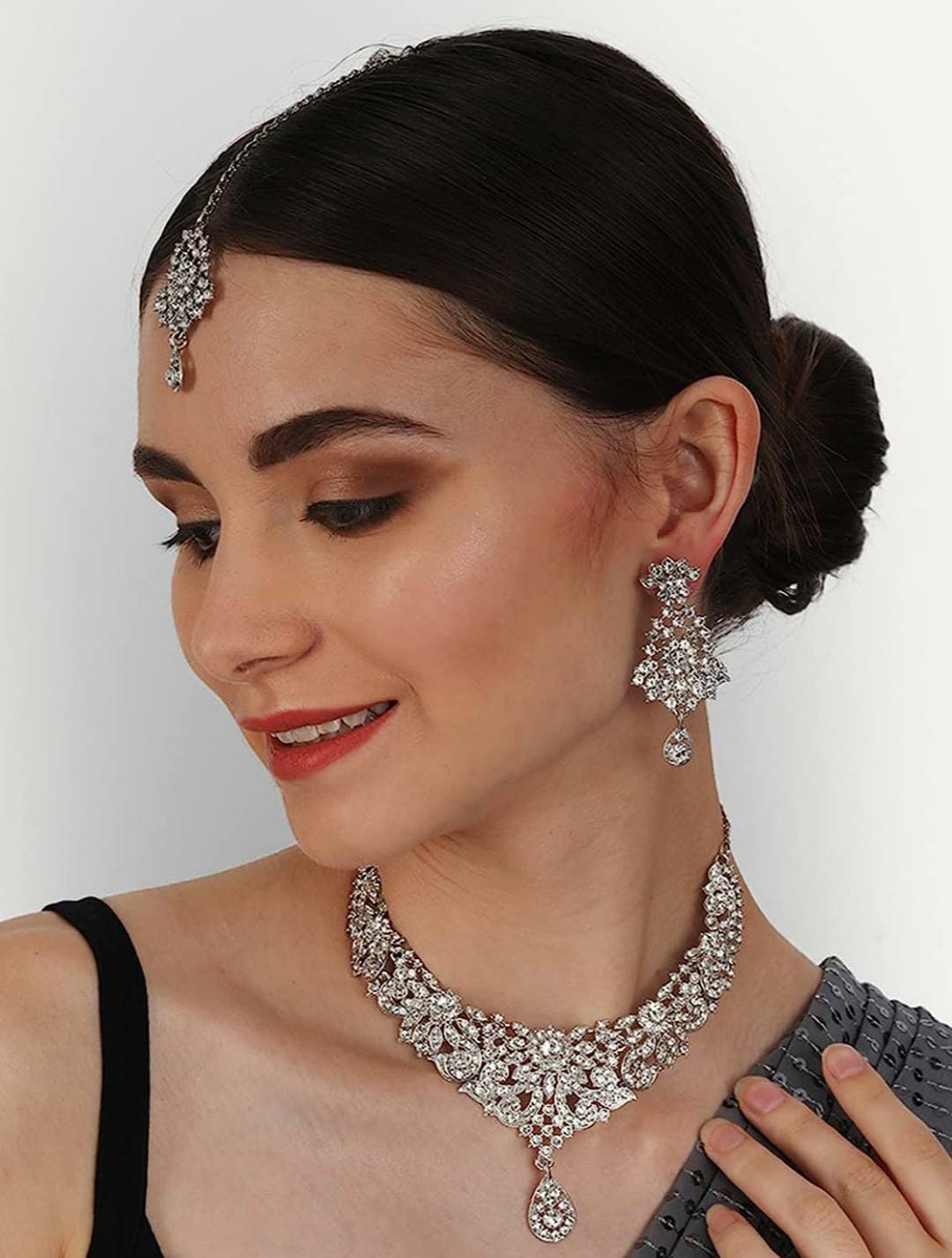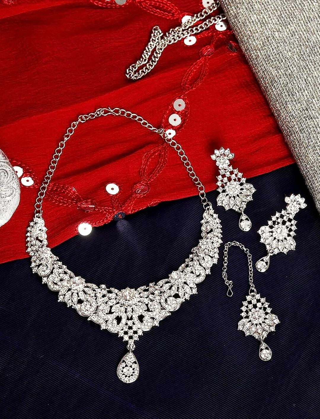 Glim Diamond Silver Plated Alloy Choker Necklace Set For Women
