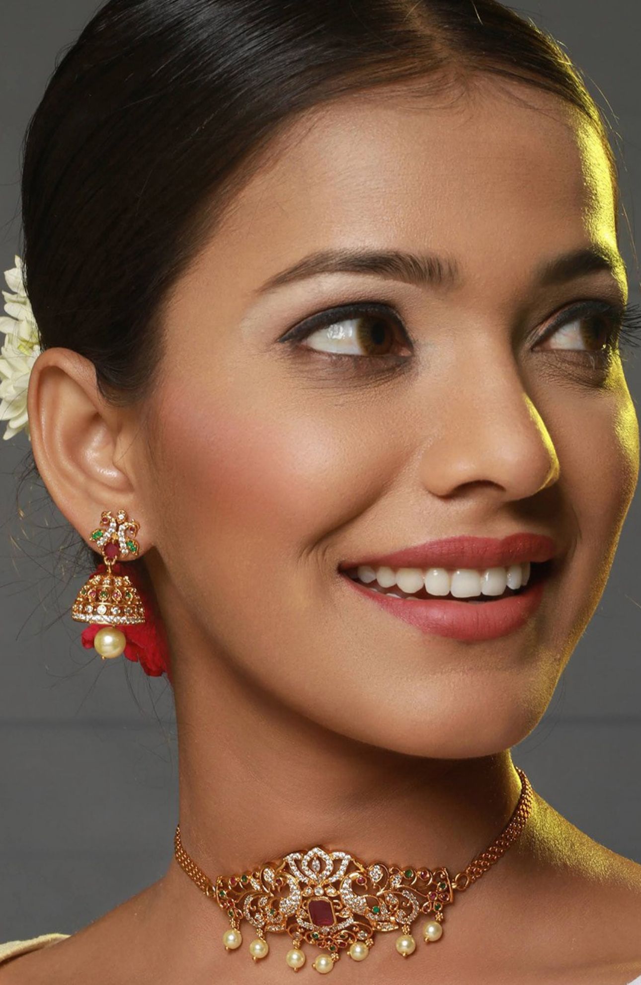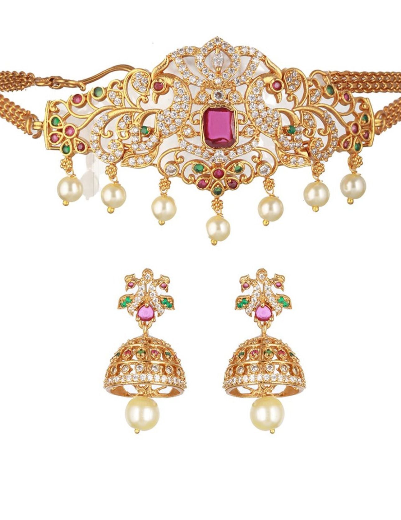 Gold-Plated AD Studded & Artificial Beaded Temple Jewellery Set in Berlin