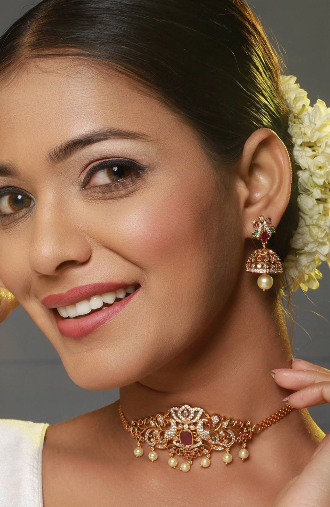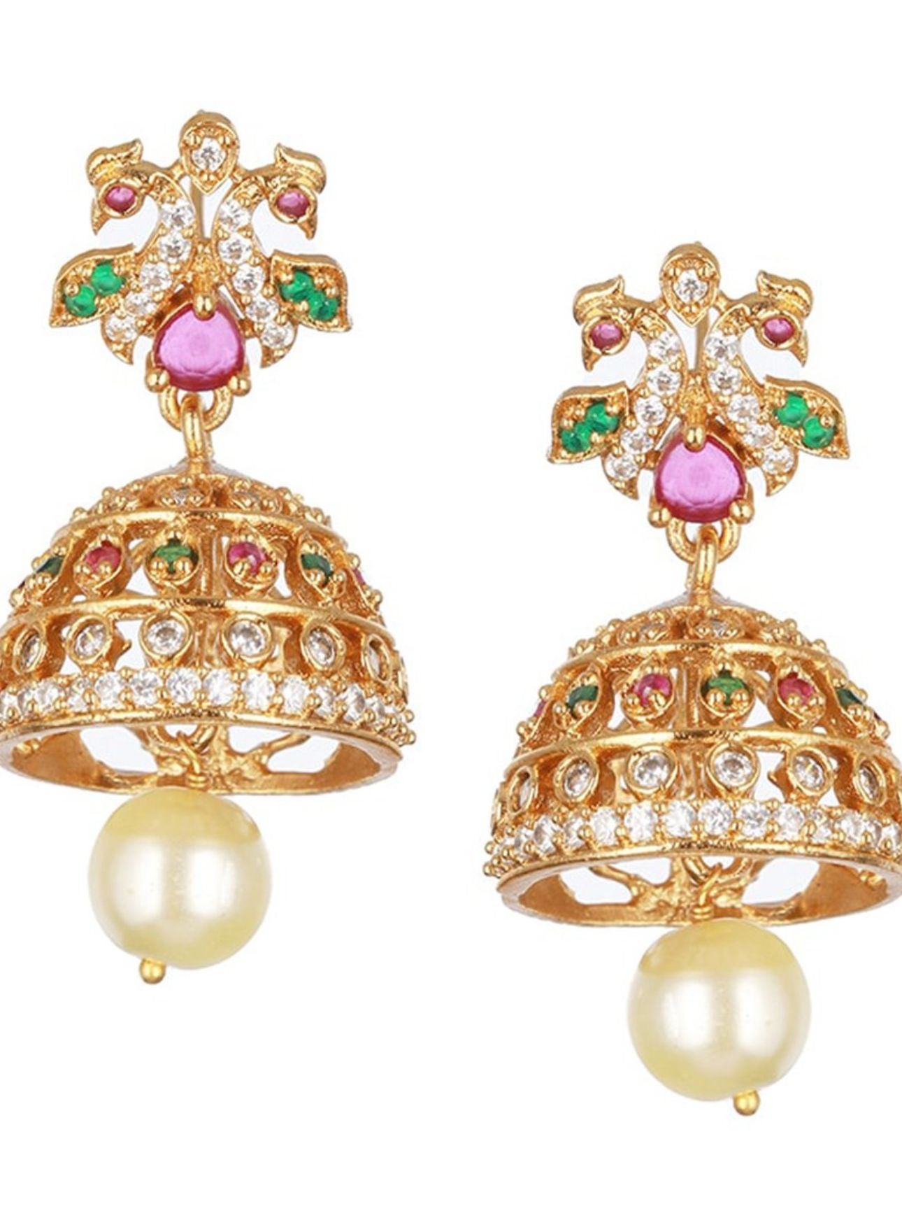 Gold-Plated AD Studded & Artificial Beaded Temple Jewellery Set