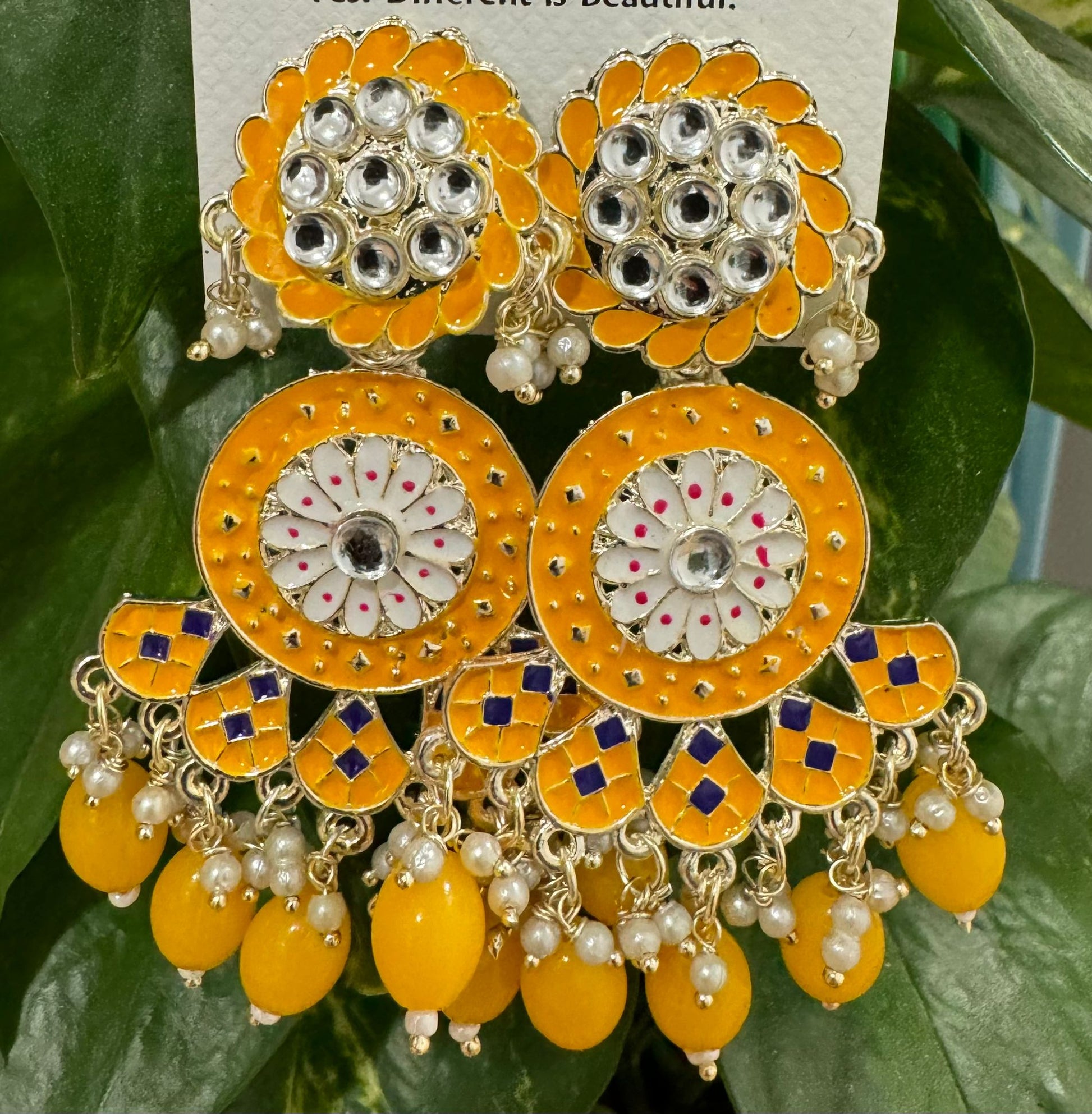 Gold-Plated Contemporary Meenakari Kundan Drop Earrings