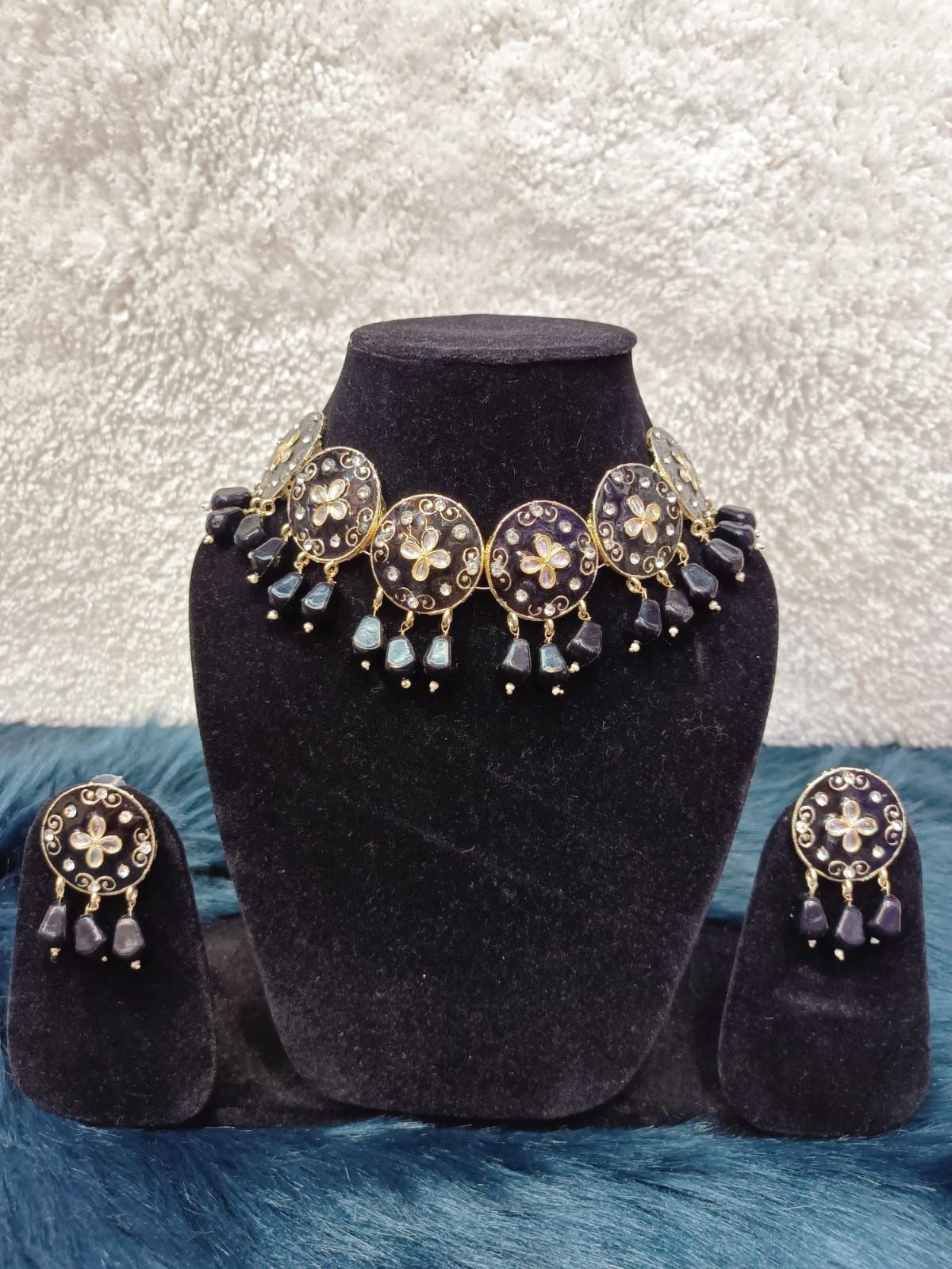 Gold-Plated Kundan Meenakari Enamelled Choker Necklace Jewellery Set