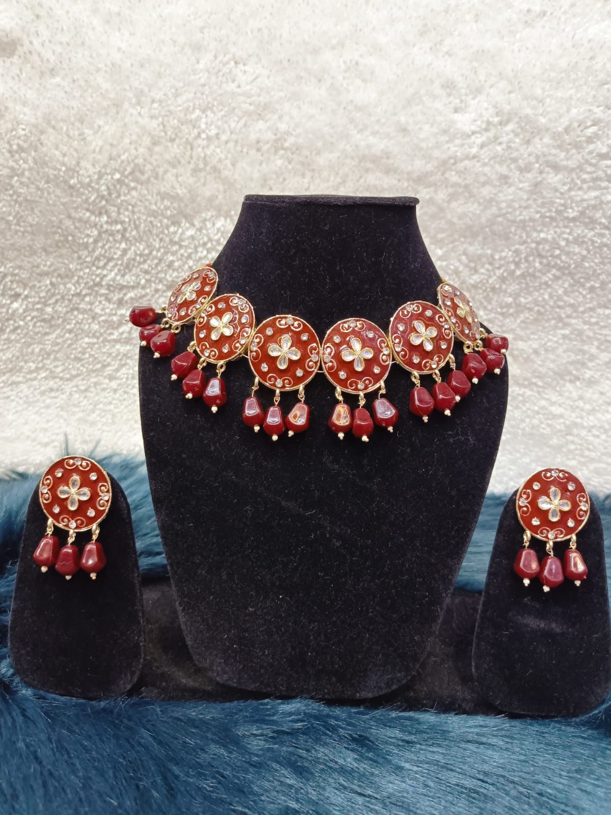 Gold-Plated Kundan Meenakari Enamelled Choker Necklace Jewellery Set