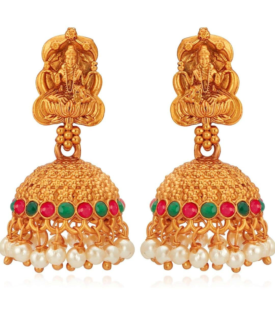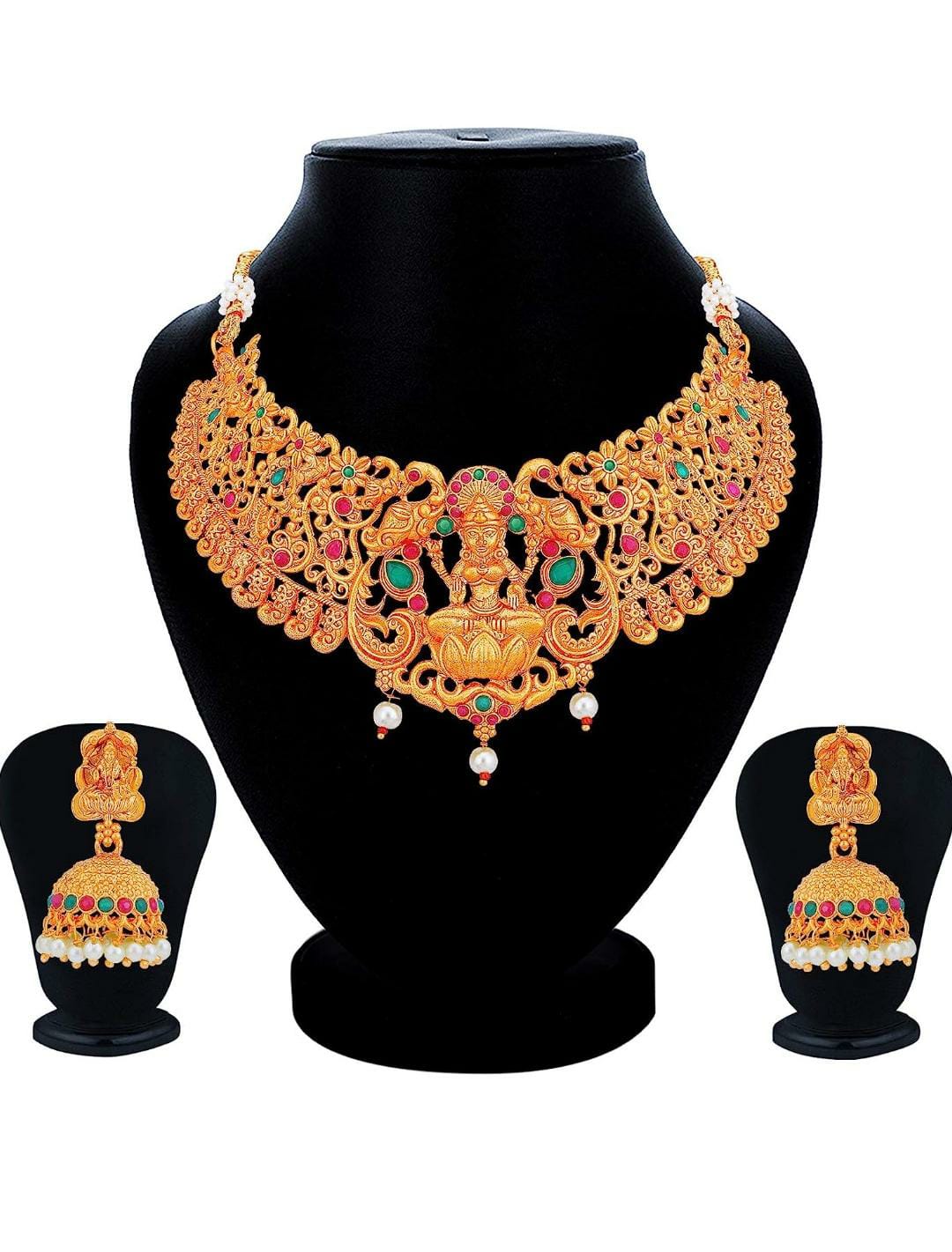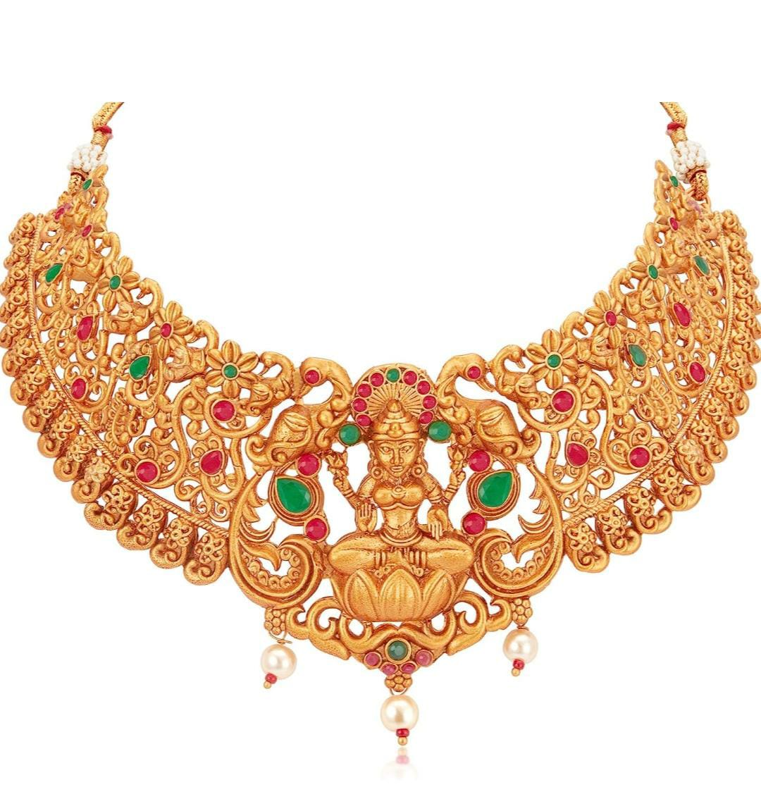 Gold Plated Temple Jewellery Goddess Laxmi Choker Necklace Set for Women