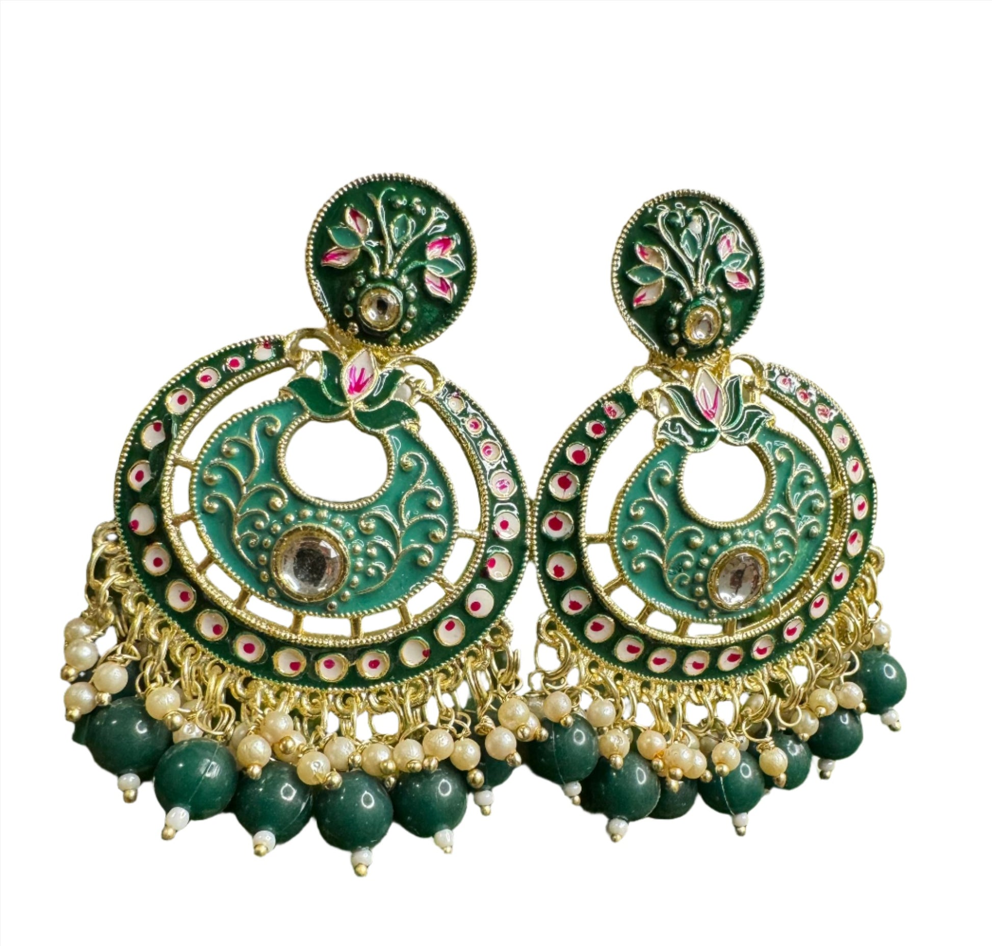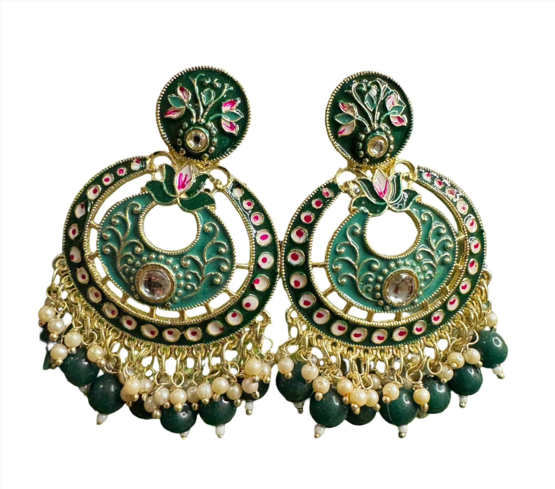 Gold Plated Pearl Kundan Beaded Chandbali Earrings for Women