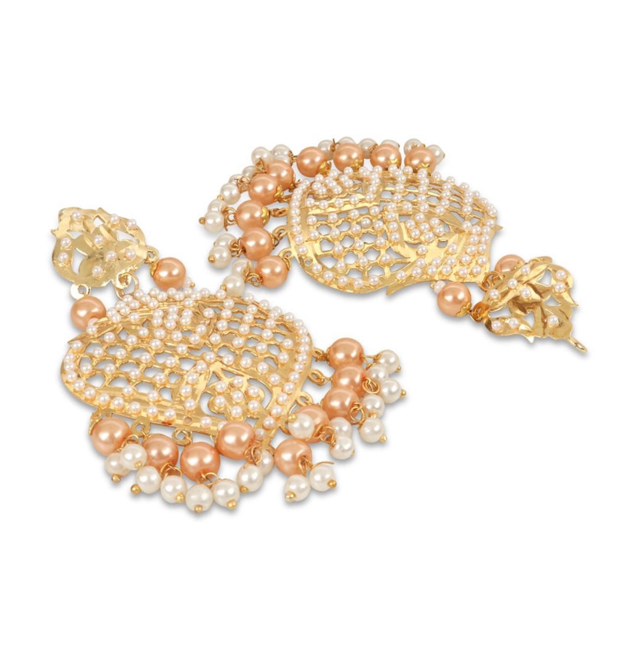 Gold-Plated White & Peach-Coloured Pearl Beaded Jewellery Set