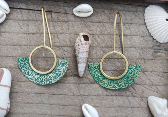 Golden Casual Wear Brass Artisan Crafted Metalwork Earring in Germany