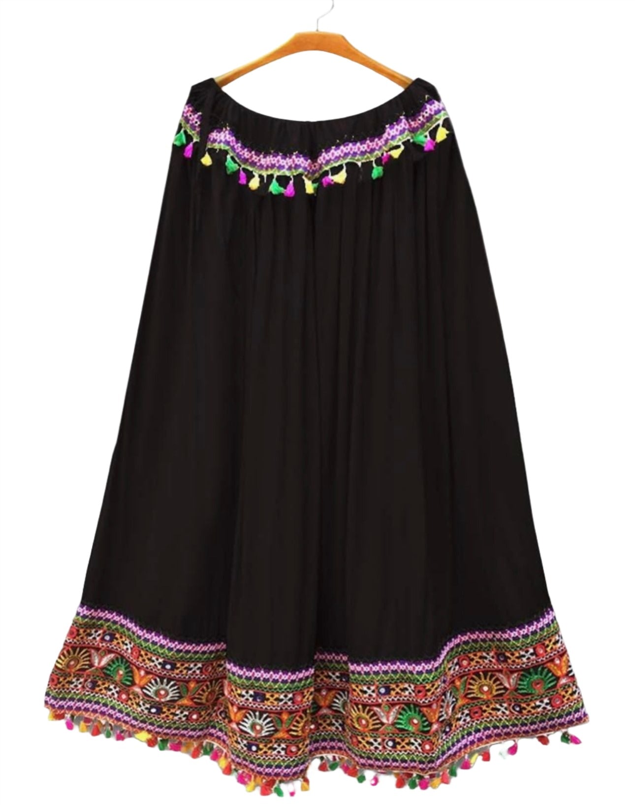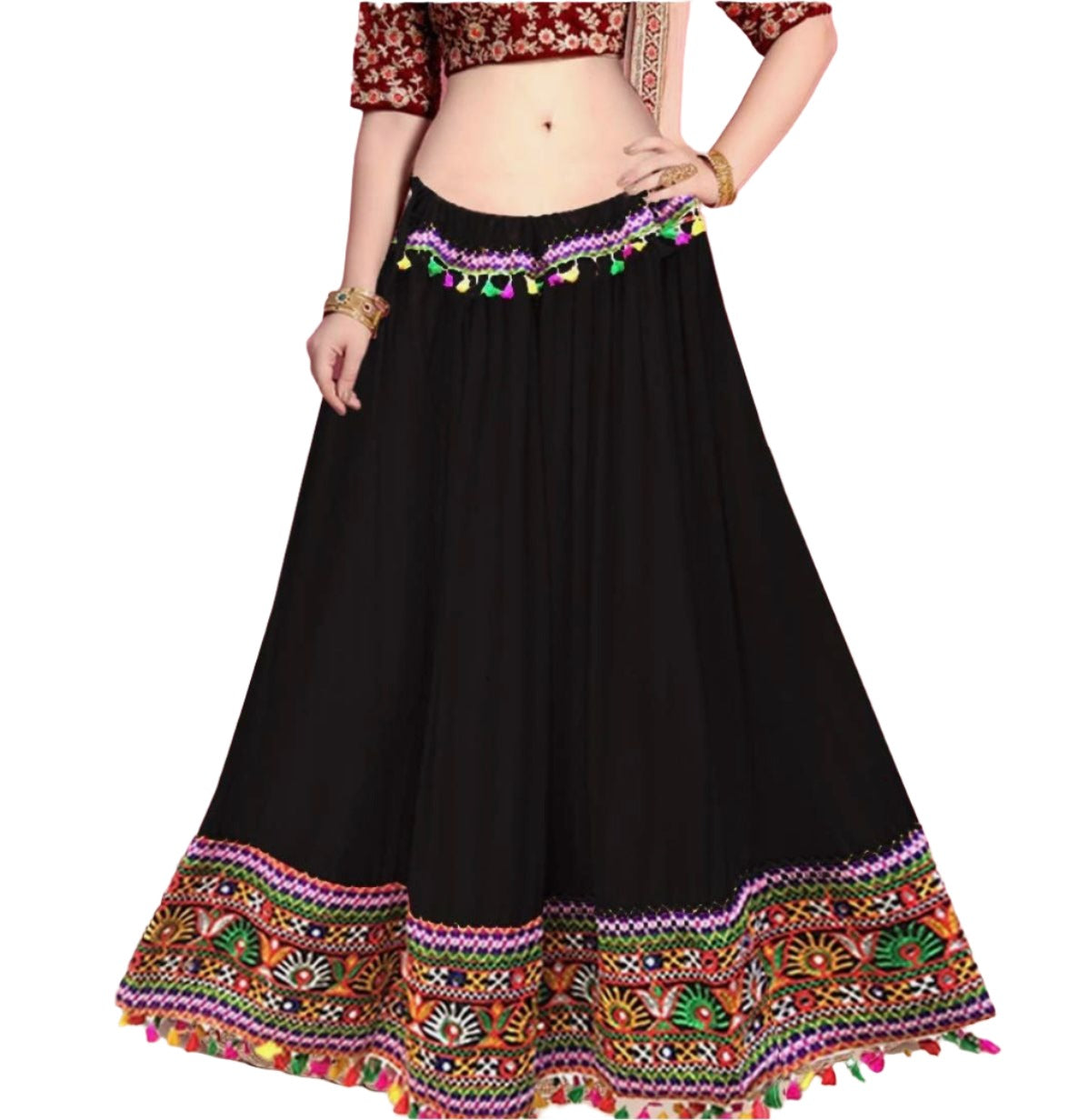 Kutchi Embroidered Border Ethnic Gujarati Style Cotton Rayon Long Skirt/Chaniya