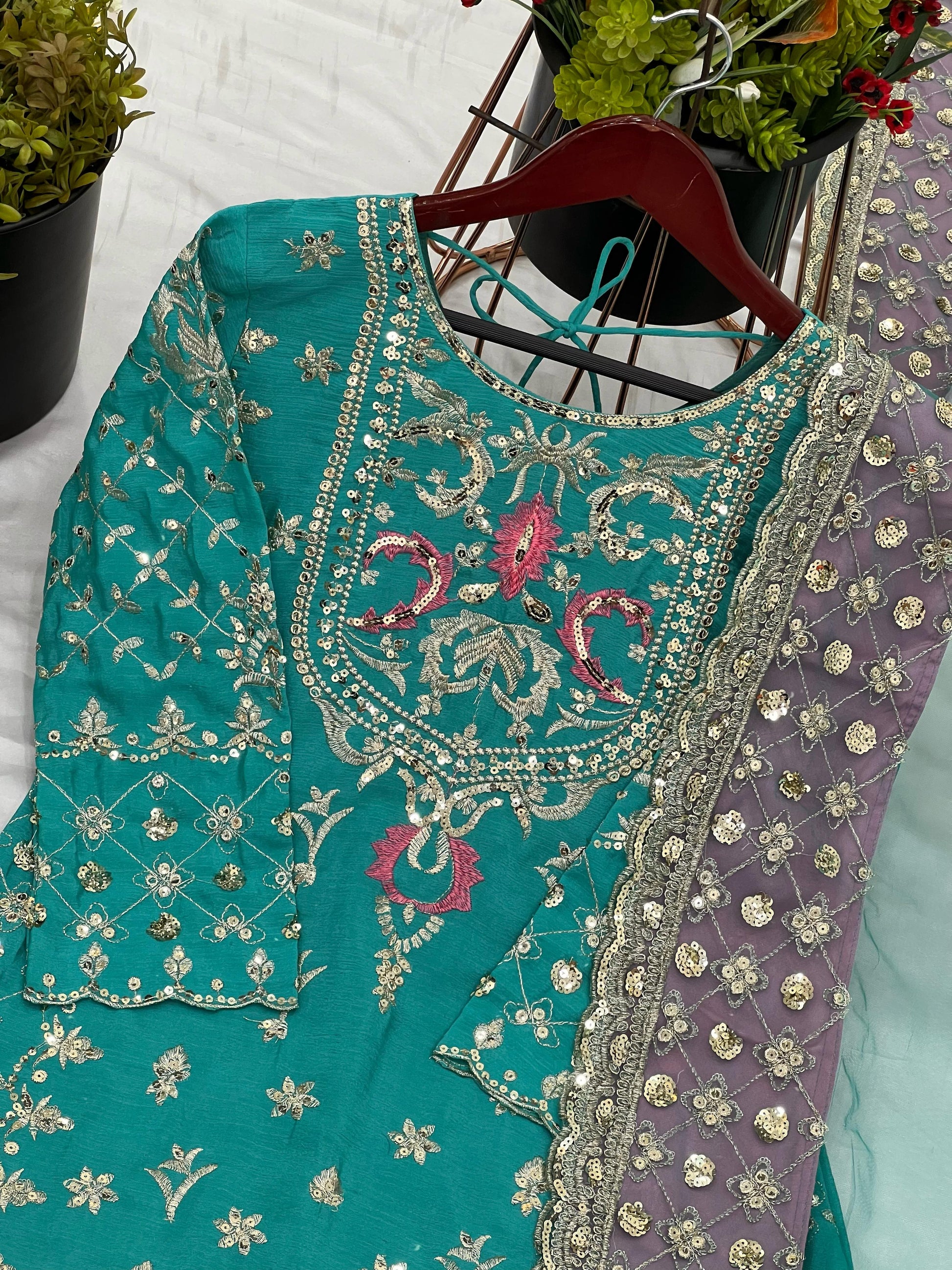 Heavy Chinnon silk With Embroidery Sequence Work Suit in Berlin