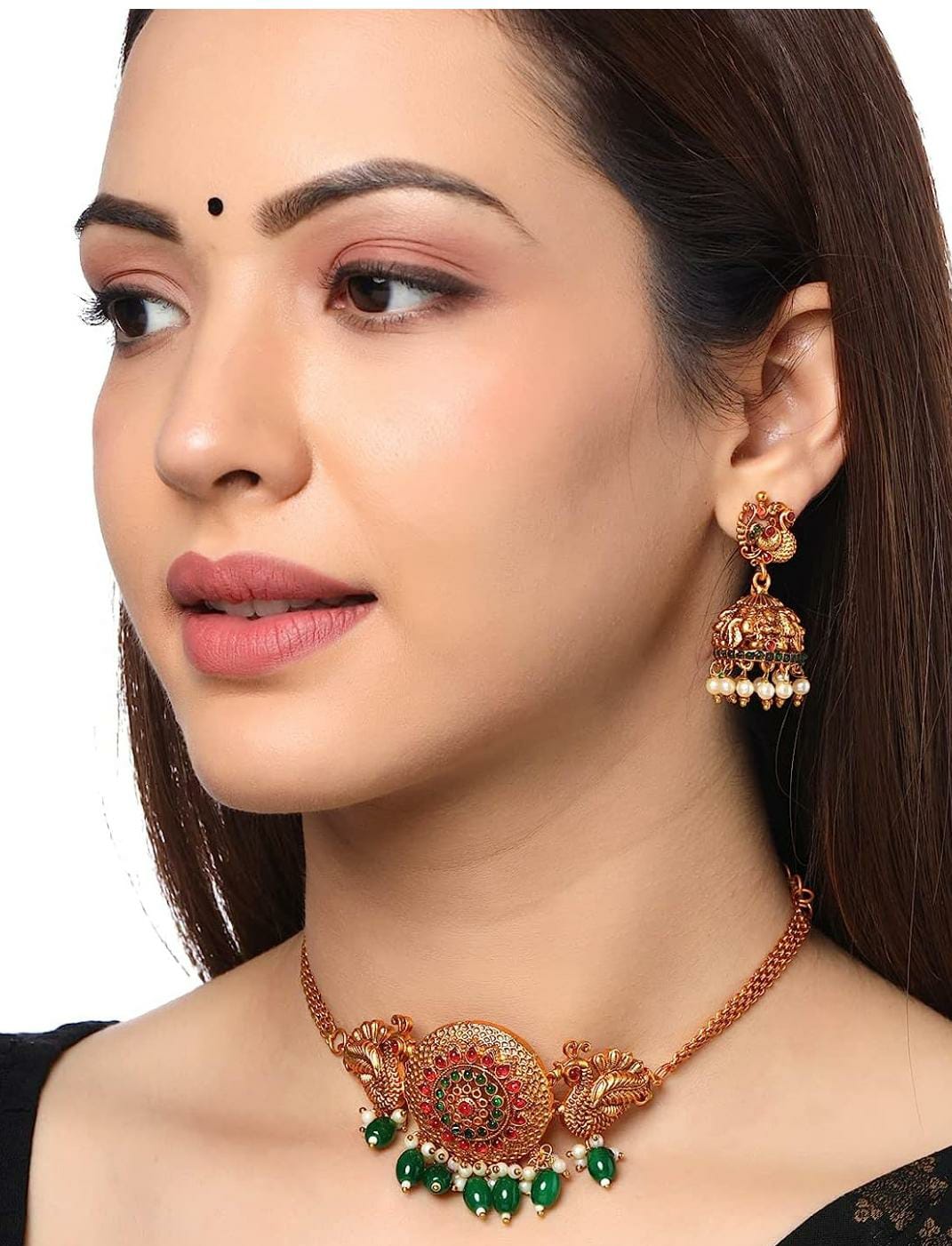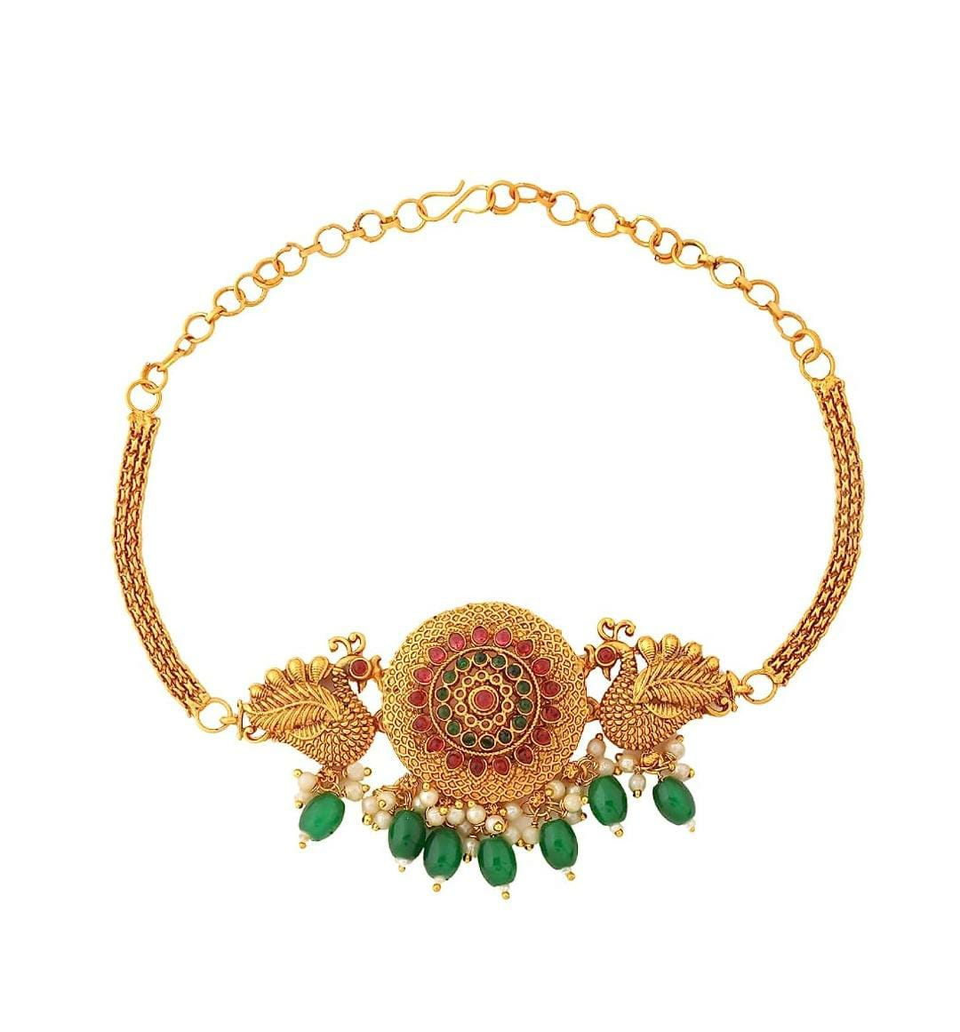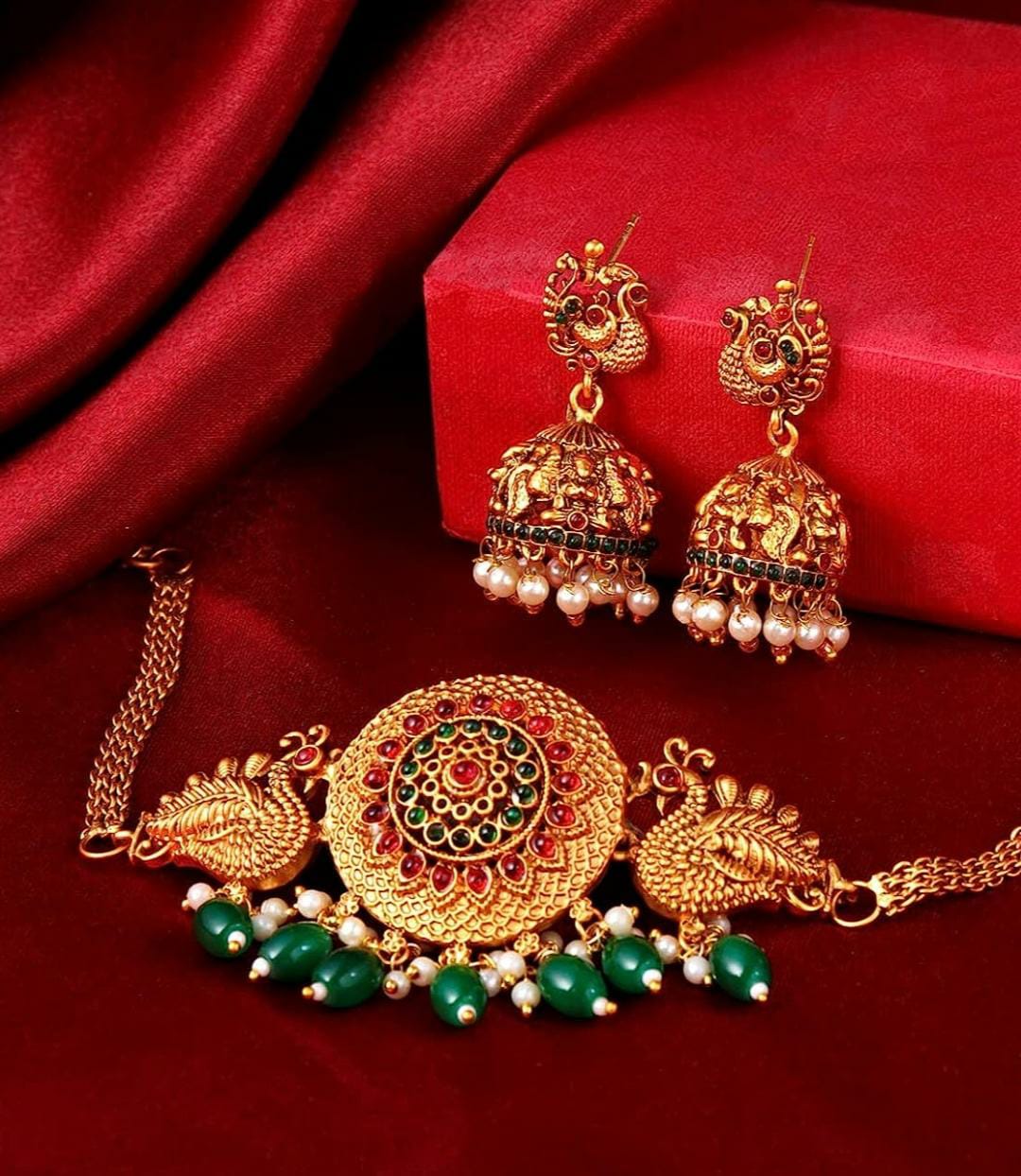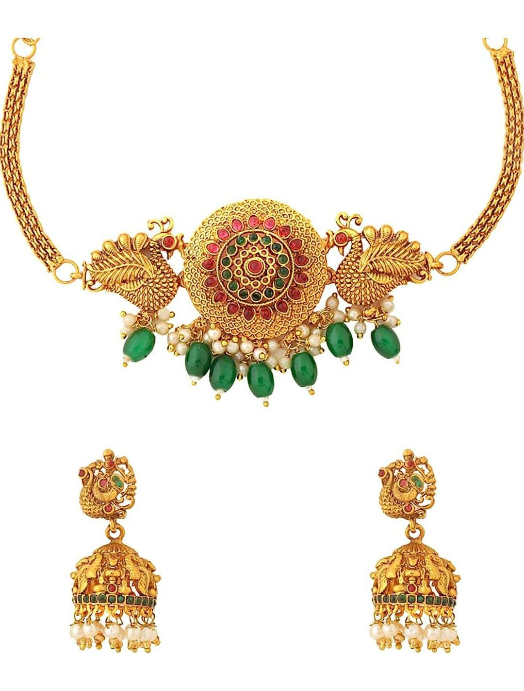 Gold Plated Drop Peacock Bridal Choker Necklace Set for Women