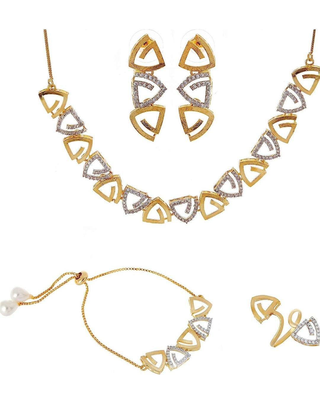 Gold Plated Necklace, Earrings, Bracelet and Ring For Women