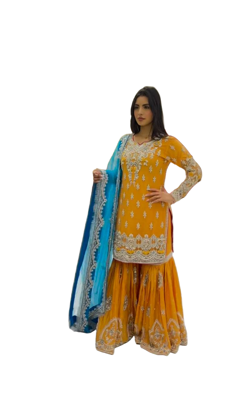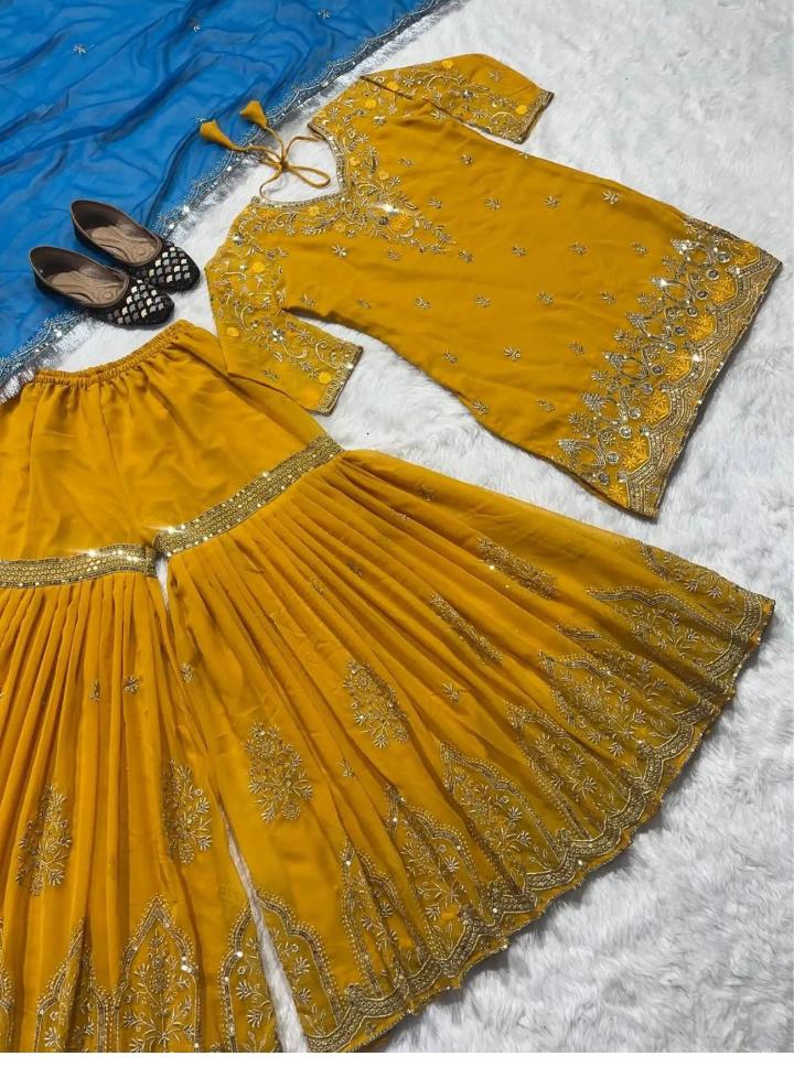 Sharara Plazzo Fabric :- Heavy Faux Georgette With Heavy Embroidery 5 MM Sequence Work