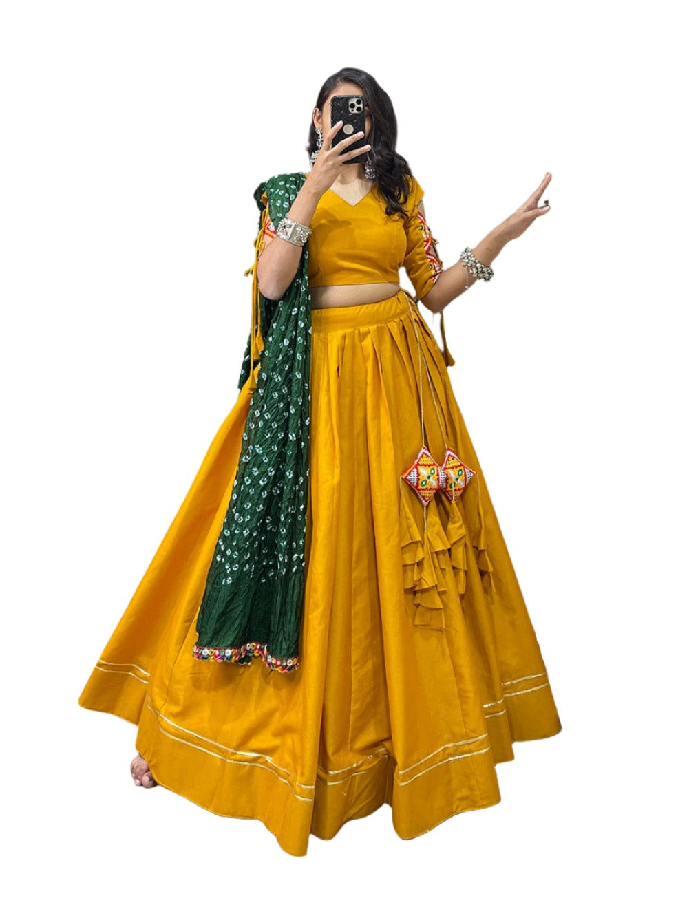 Give yourself quintessential look in all functions by wearing this classic lehenga choli crafted from the finest cotton, adorn with gamthi work blouse ✨