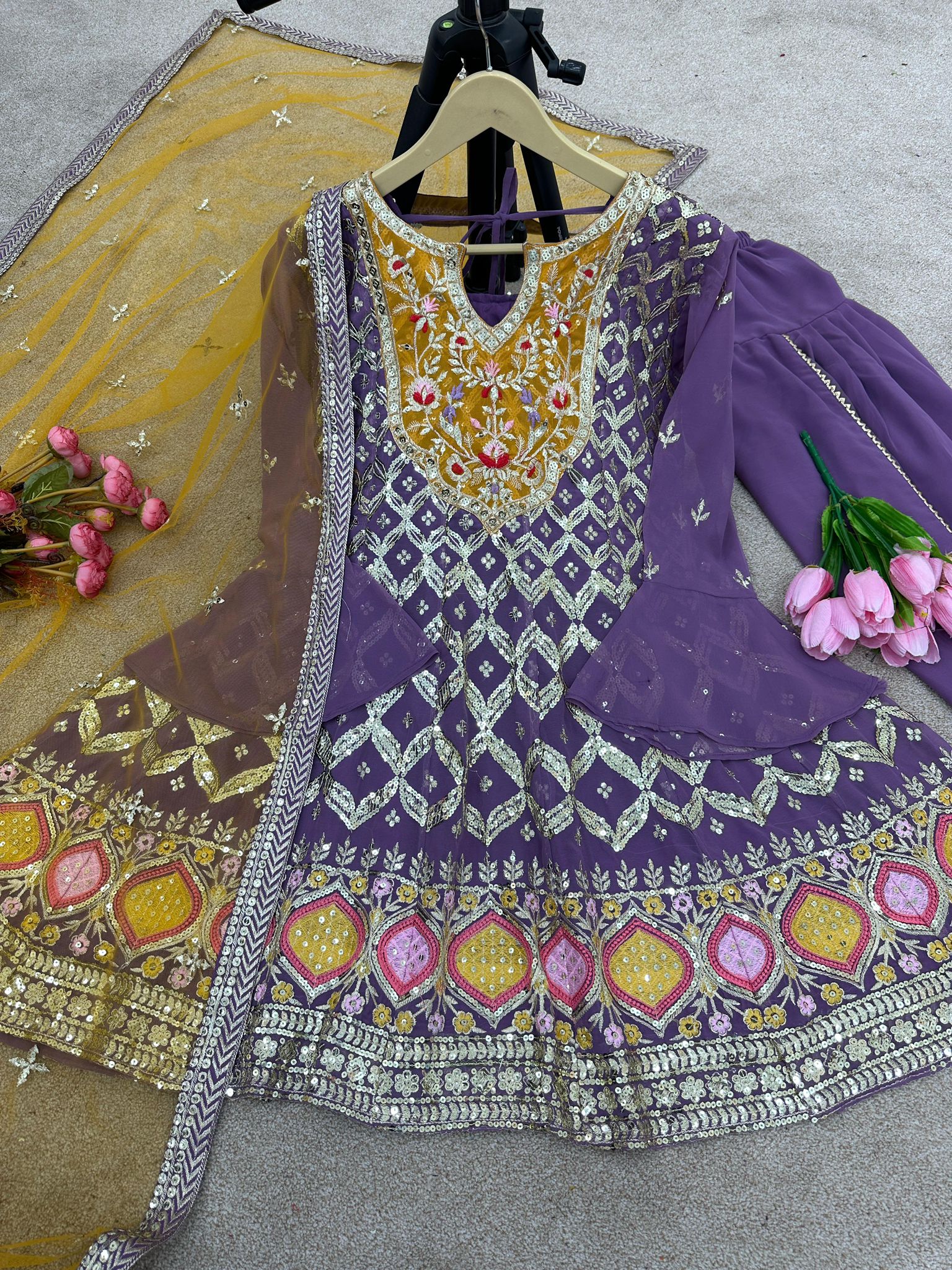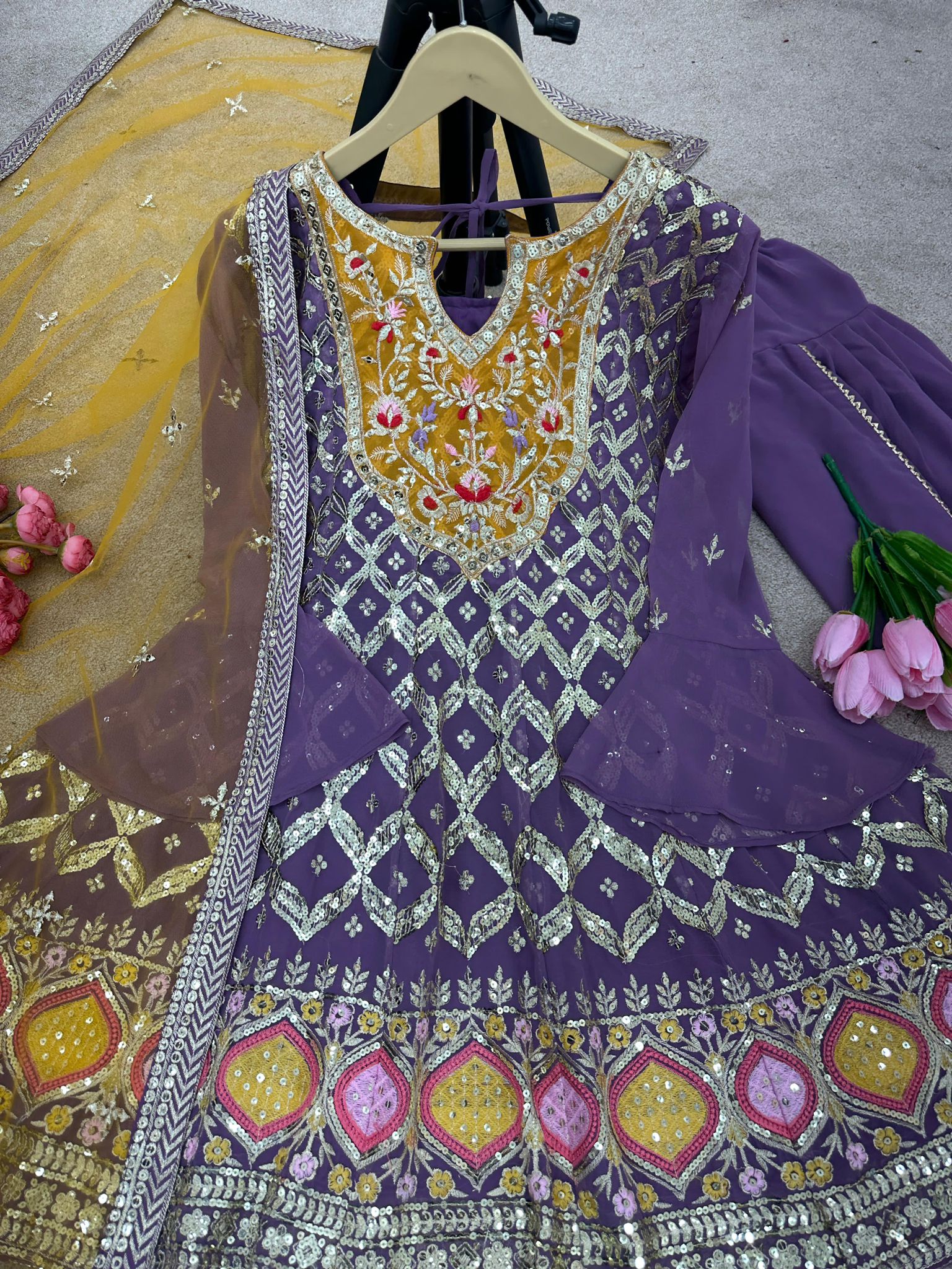 Top Fabric * : Faux Georgette With *Heavy Embroidery 5mm Sequence Work With Fancy Sleeve