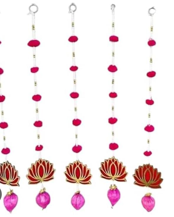 Handmade BeadsLotus Toran Decoratives for GaneshChaturthi, Ganapati Pooja, Diwali, Festive Dcor for Door Entrance, Wall Hanging