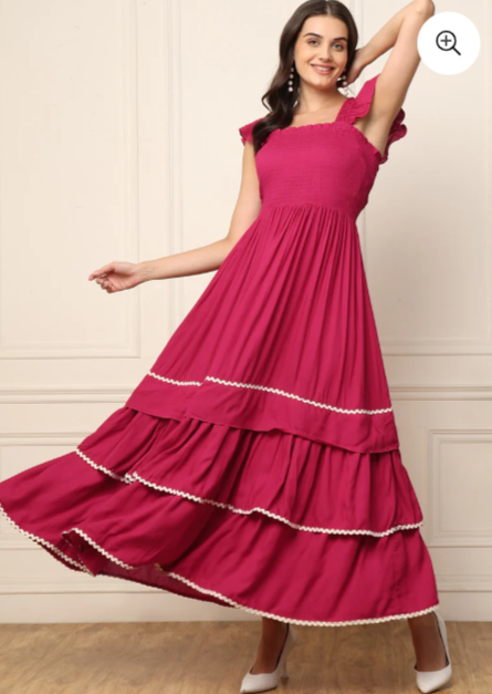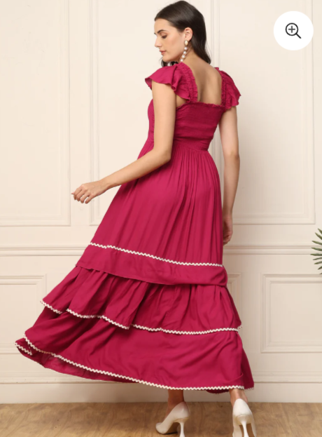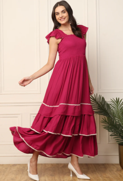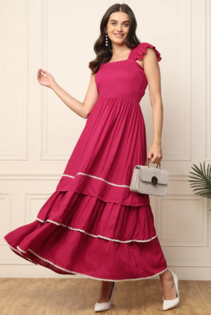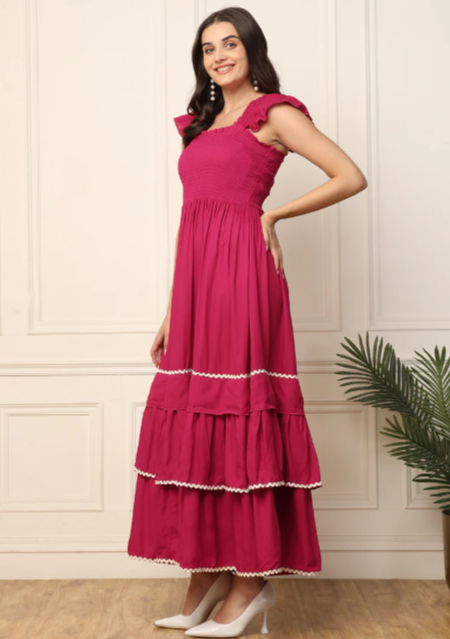 MAGENTA TIERED SMOCKED WOMEN MAXI DRESS IN GERMANY