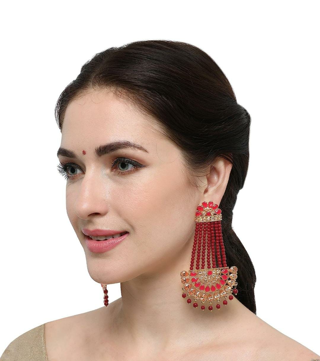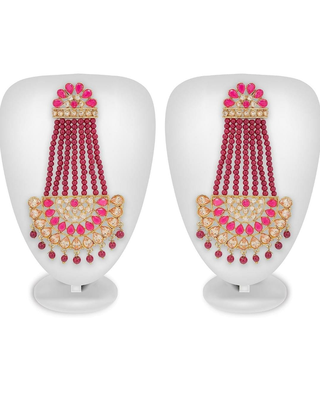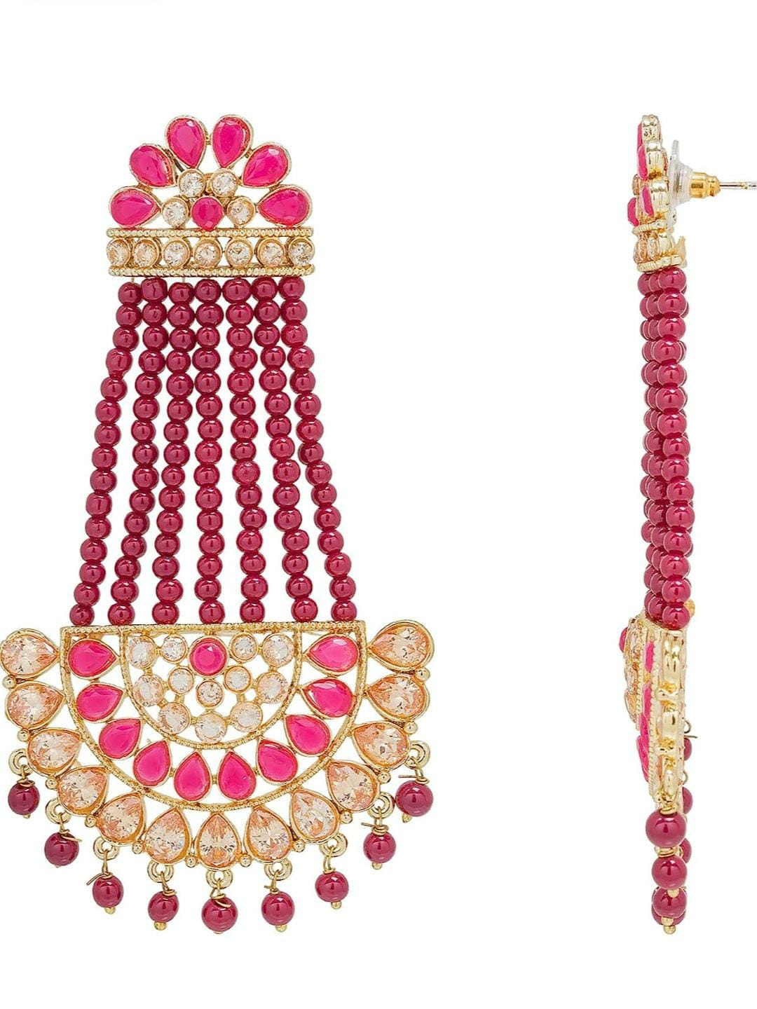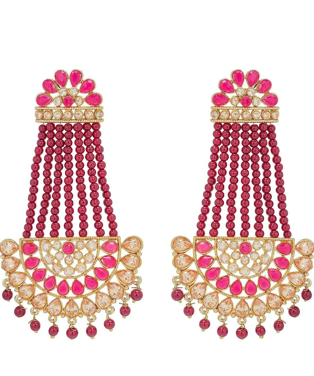 Maroon and Pink Gold-Plated Chandelier Earrings for Girls and Women