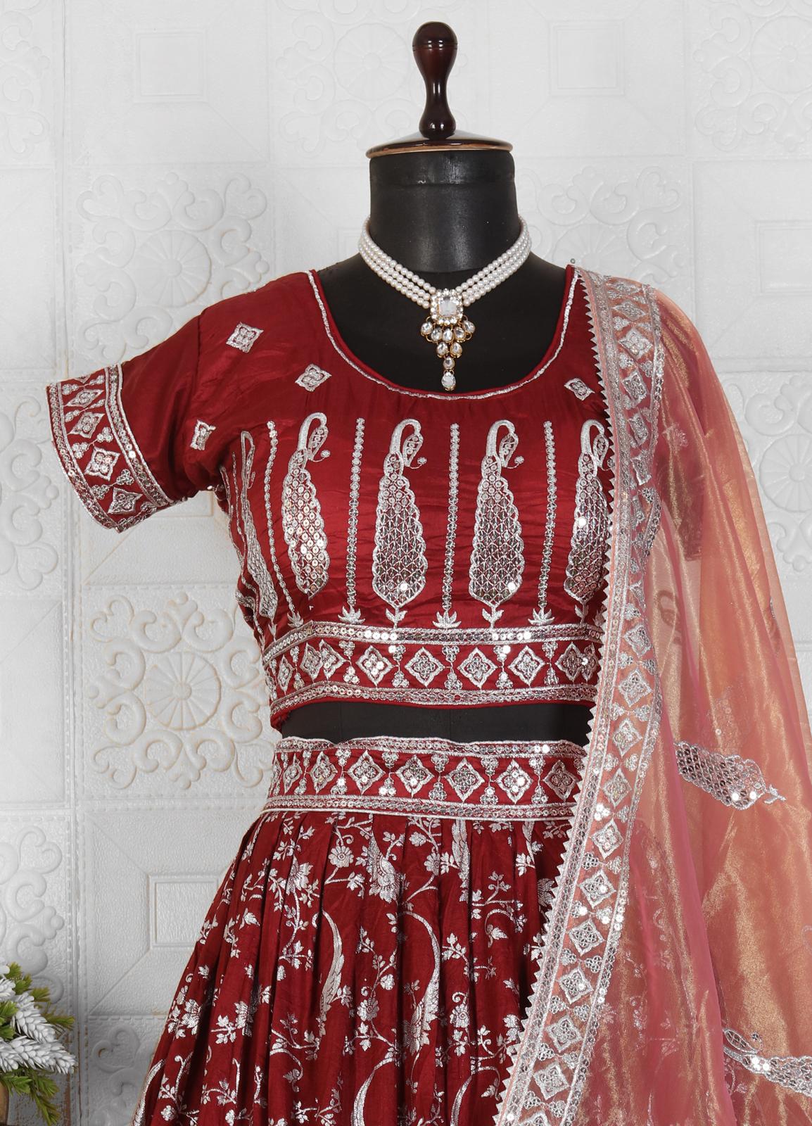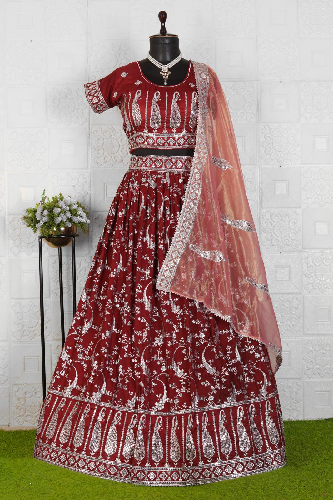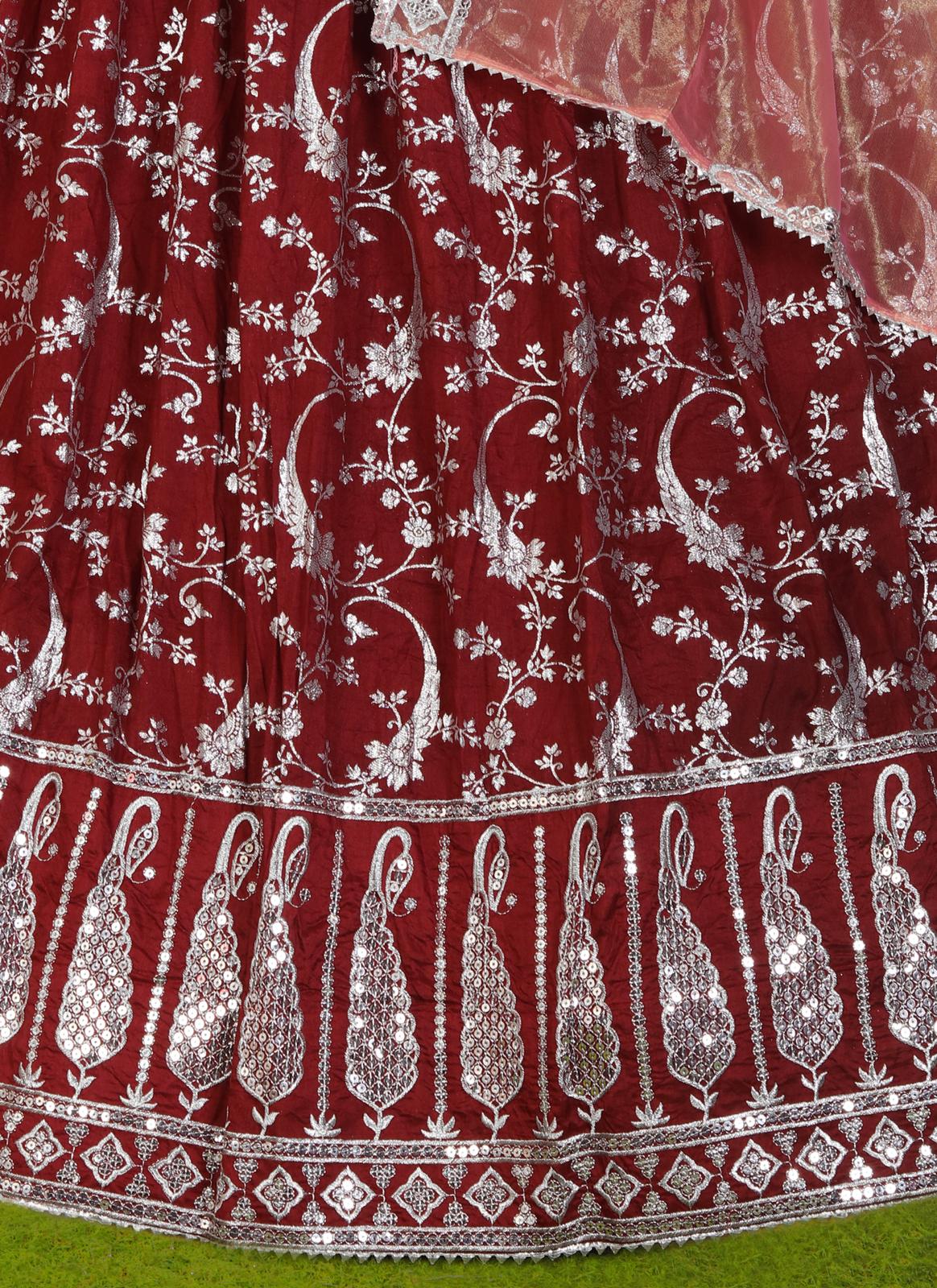 MAROON COLOR PURE VISCOSE JACQUARD LEHENGA CHOLI