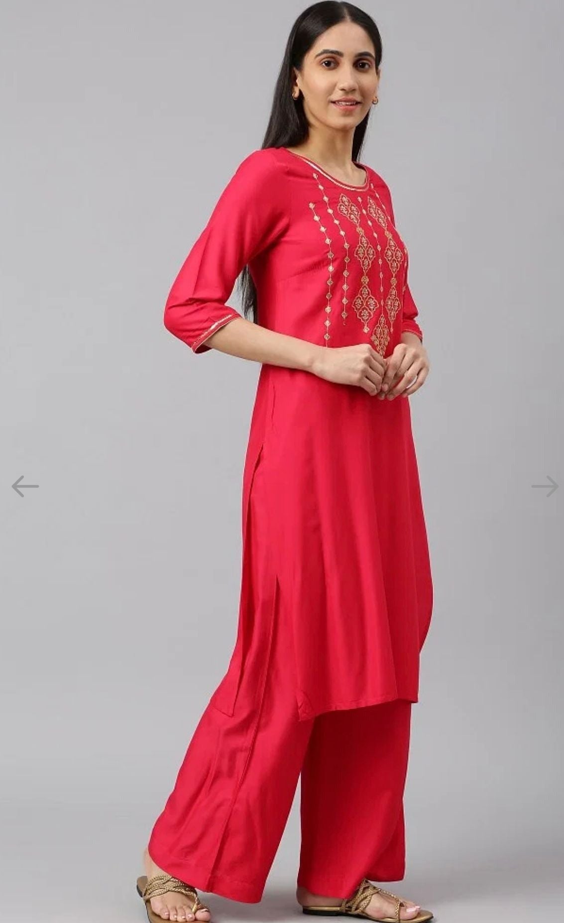 Maroon Embroidered kurta-Palazzo-Gold Dupatta Set in Germany