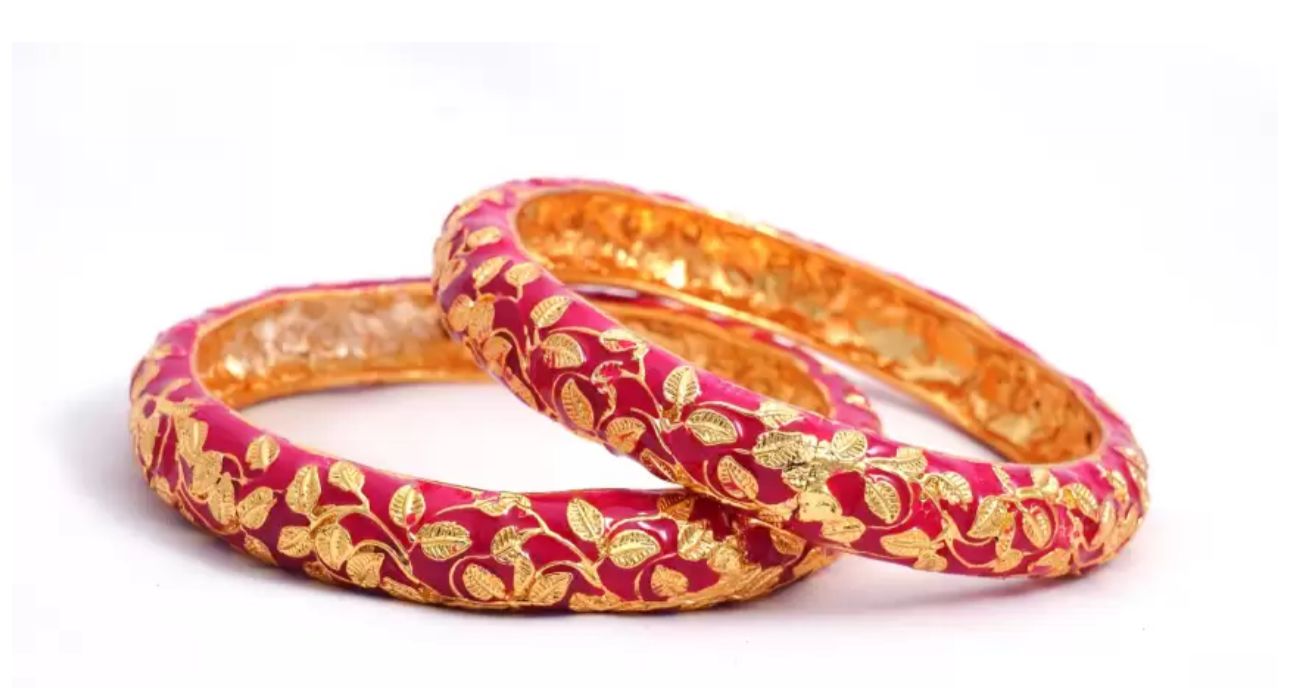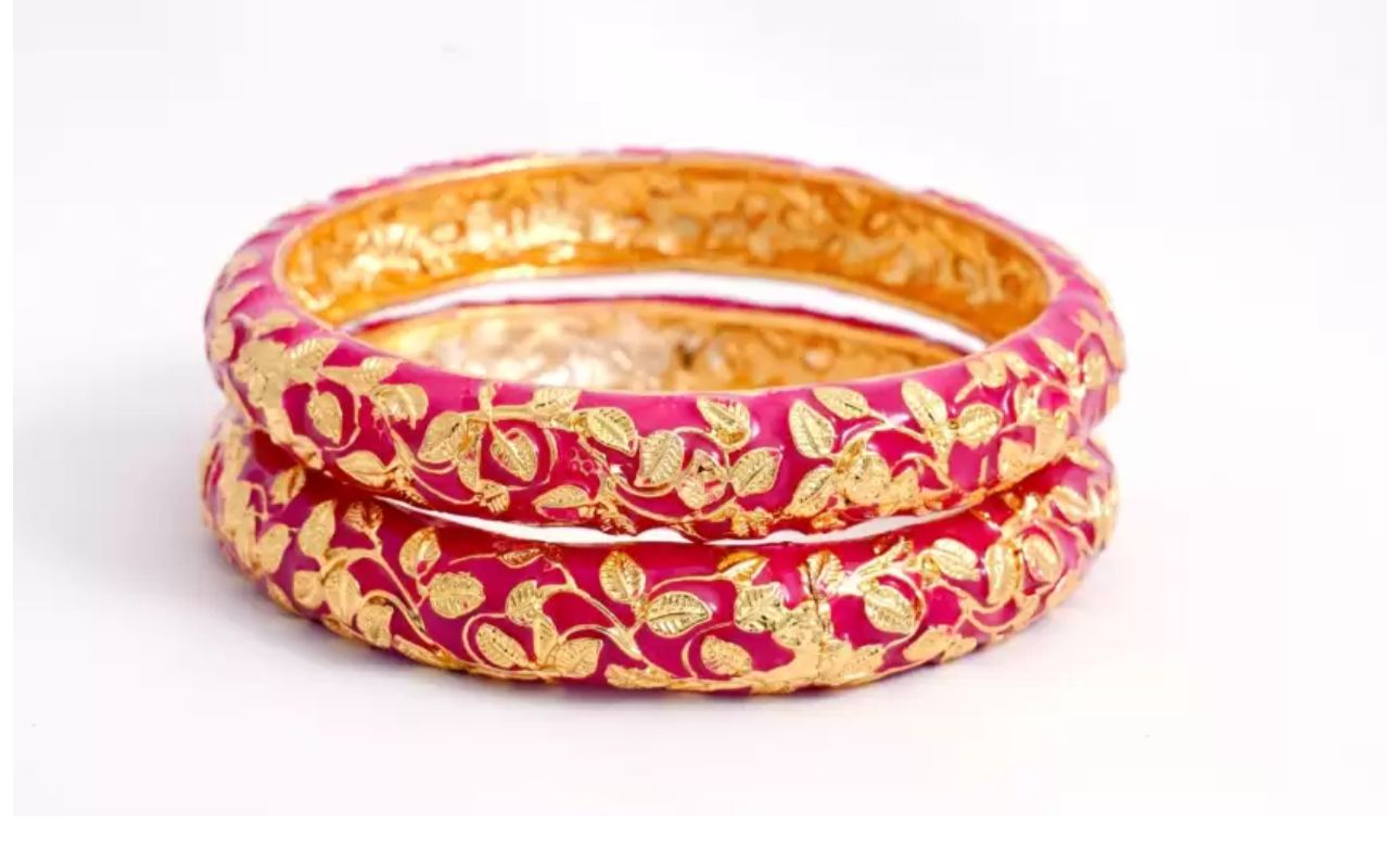 Golden Leaves Meenakari Bangles Set of 2 in Germany(Pink)