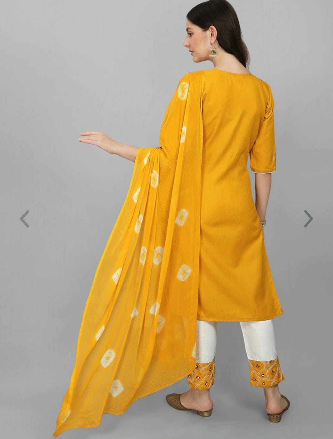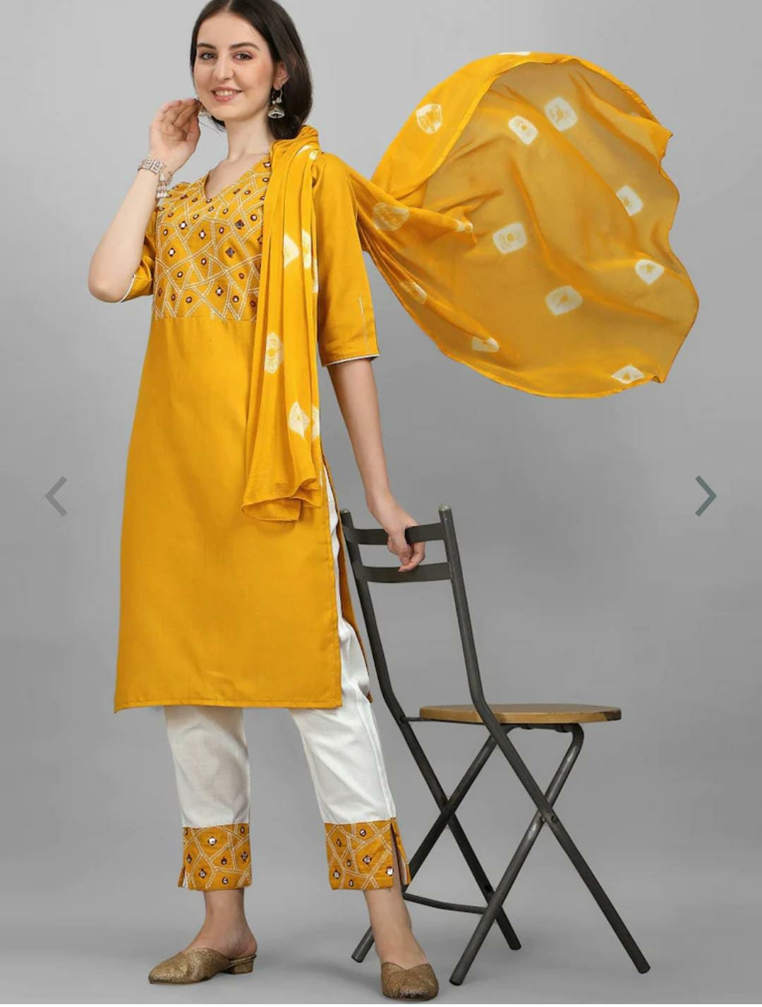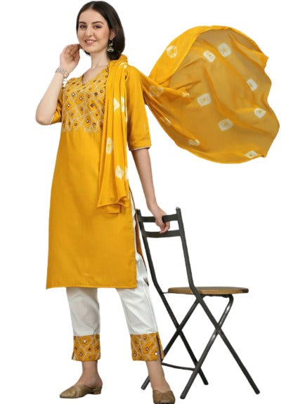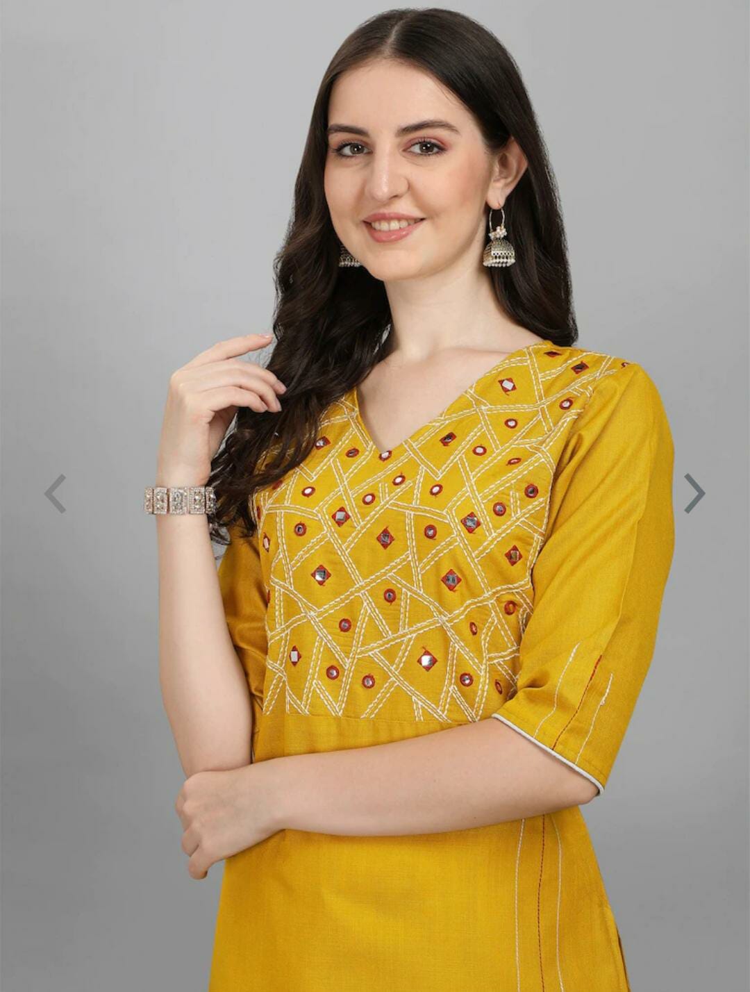 Mustard Yellow Mirror Work Kurta With Trousers(Indian Outfit)