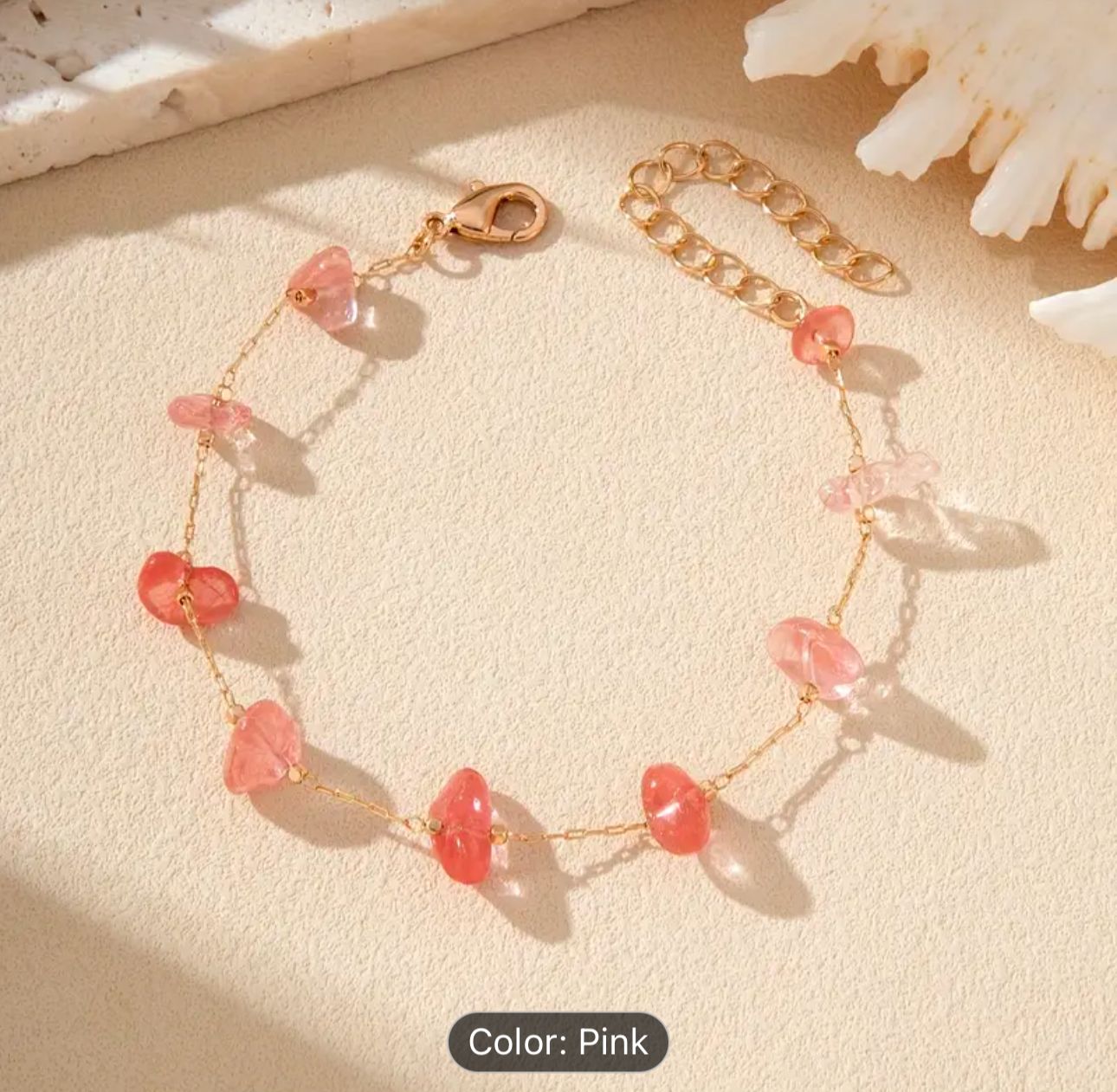 Natural Stone Beaded Ankle Bracelet Gold Plated, Handcrafted Gemstone Anklet for Women