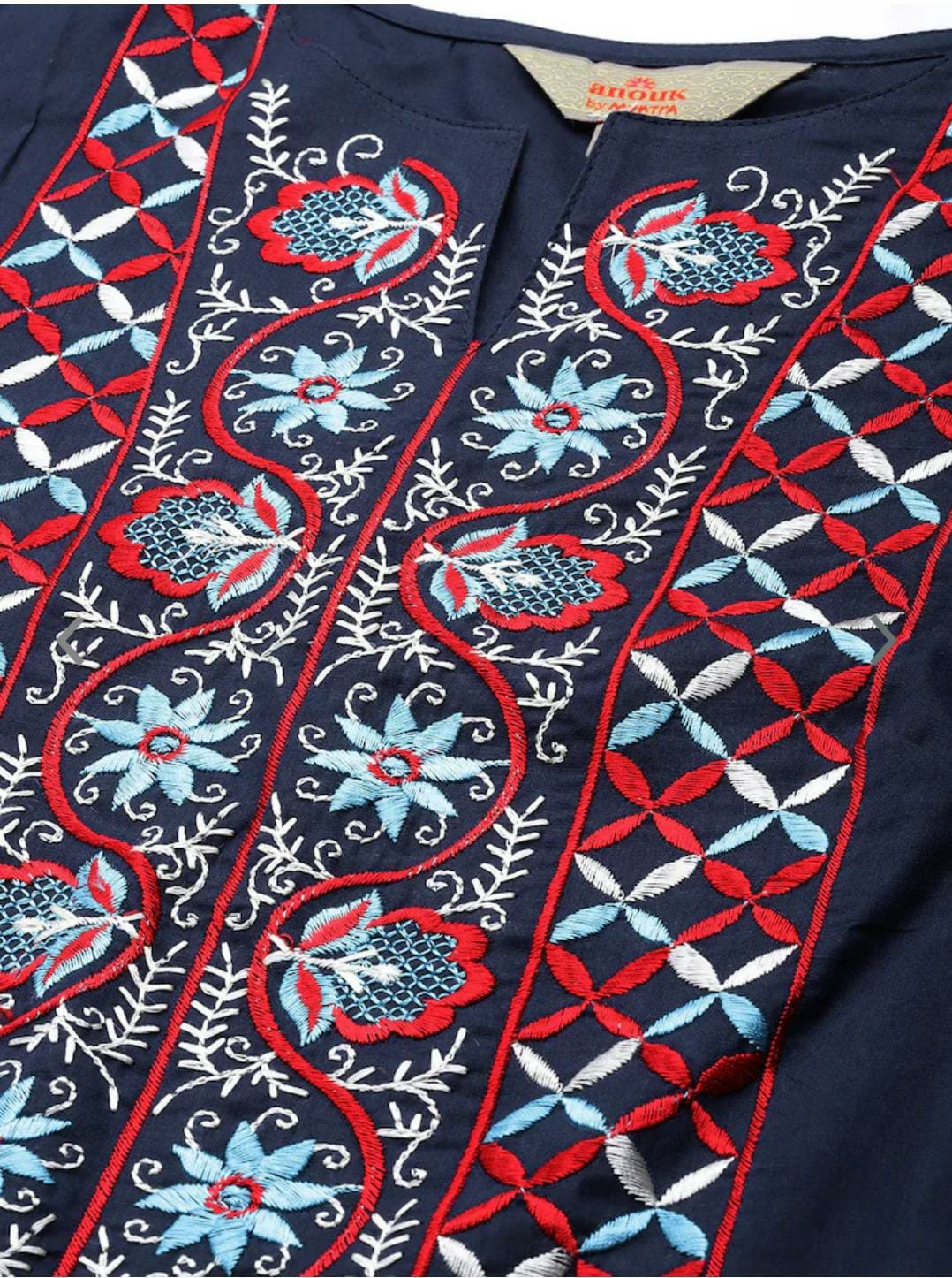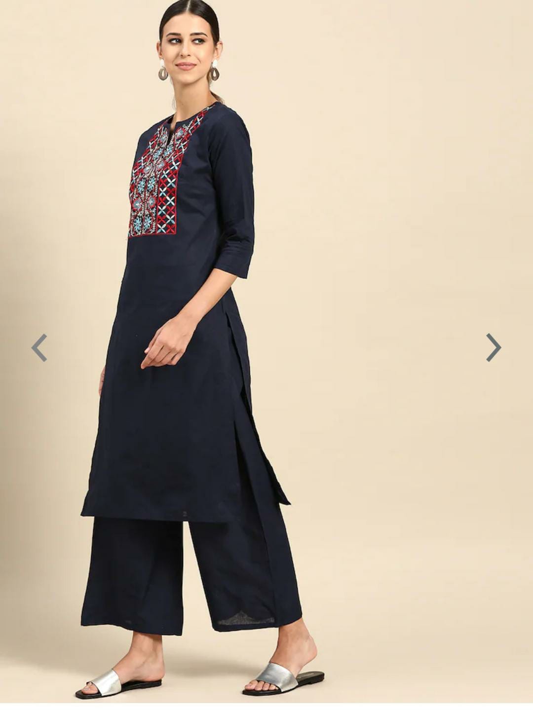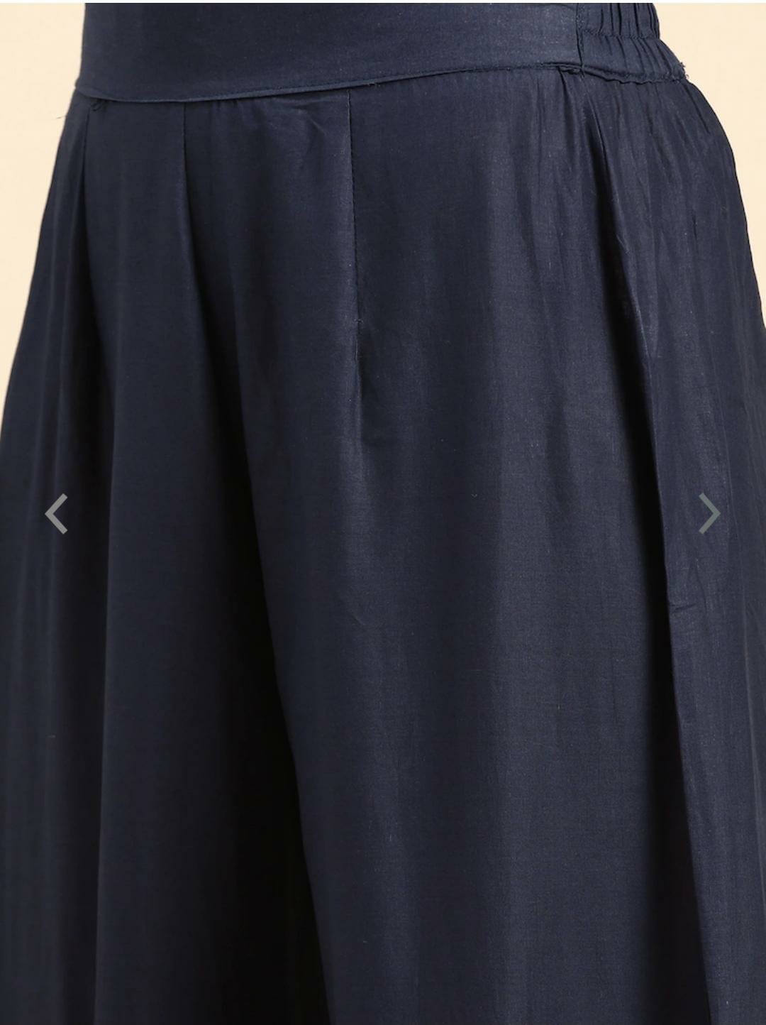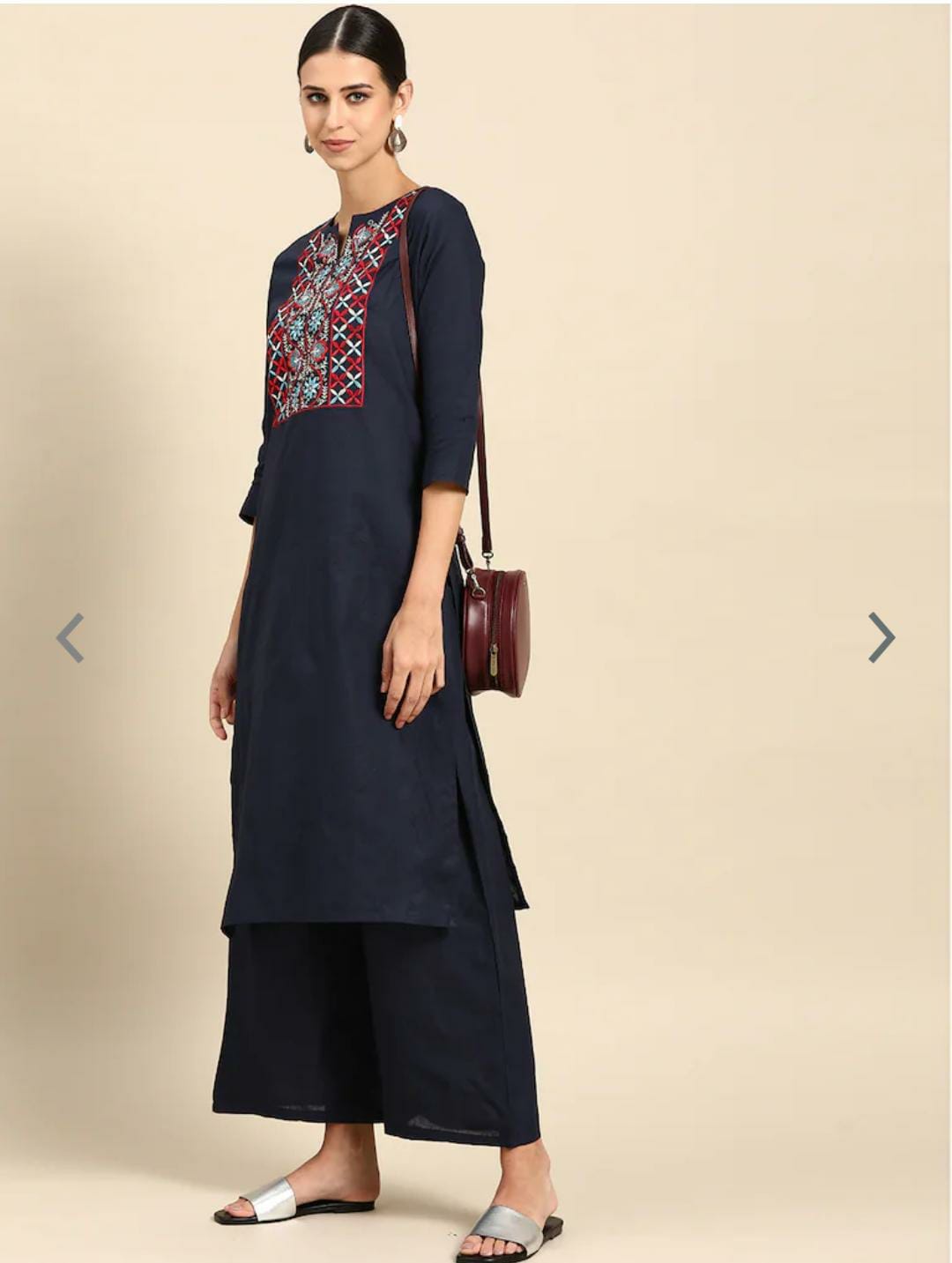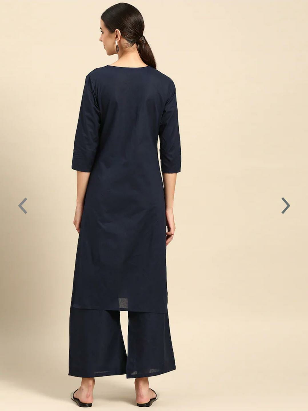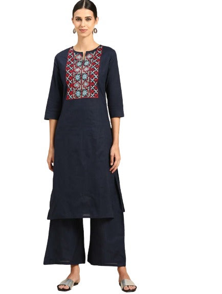 Navy Blue Design Thread Work Pure Cotton Kurta With Palazzos(Indian outfit)