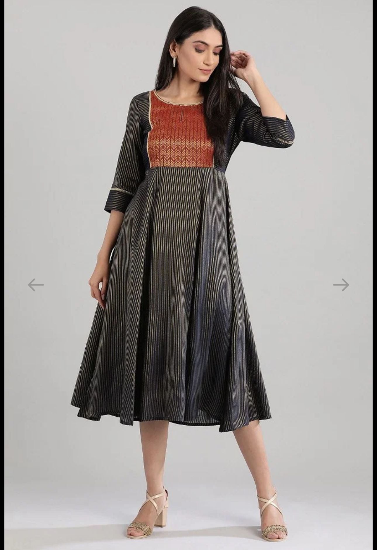 Navy Round Neck Printed flared dress in berlin