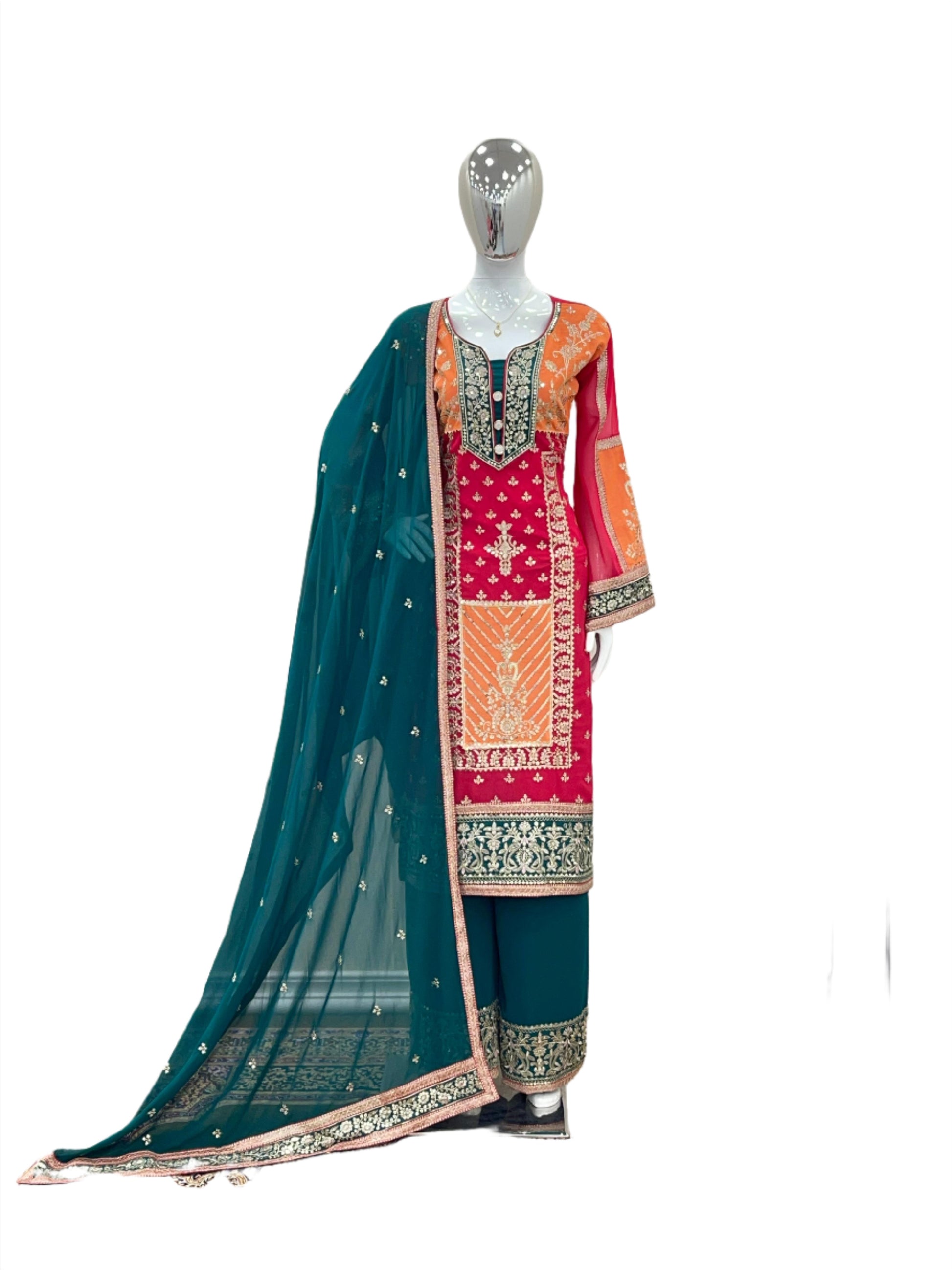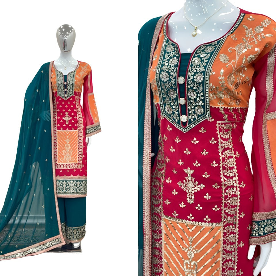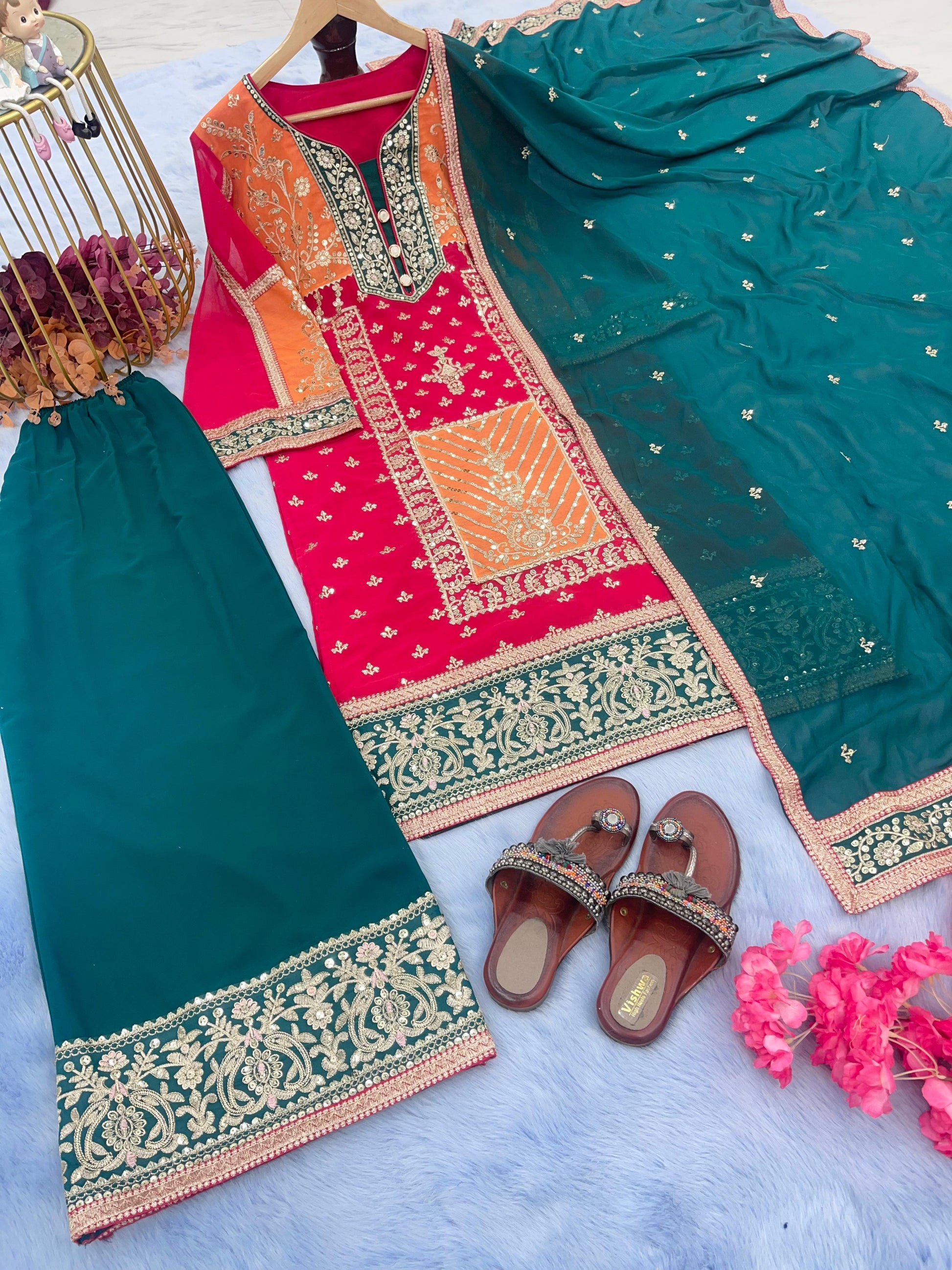 👉🧚♀️ Plazzo Fabric: Heavy Faux Georgette With Heavy Embroidery 5 mm Sequence Work