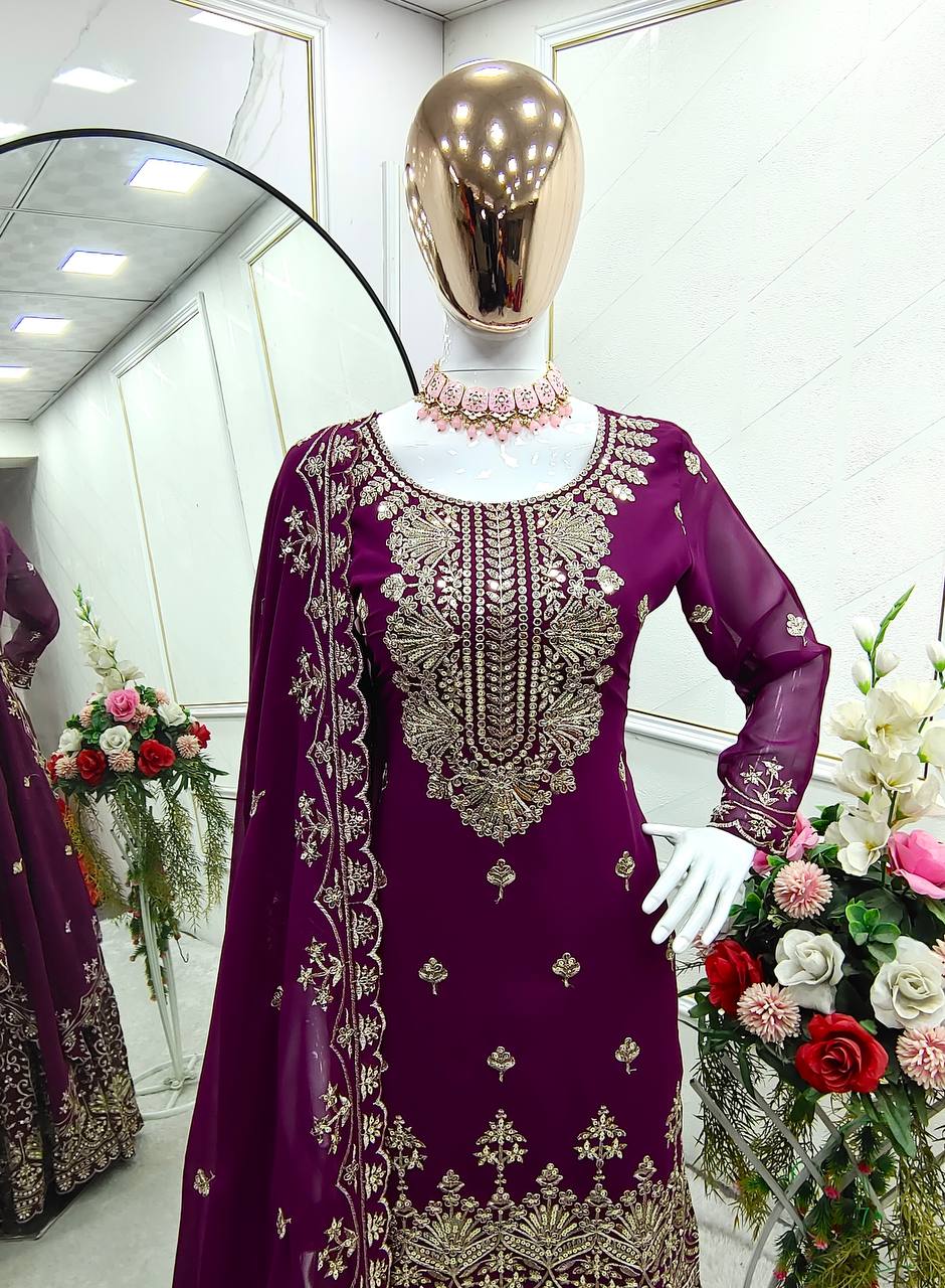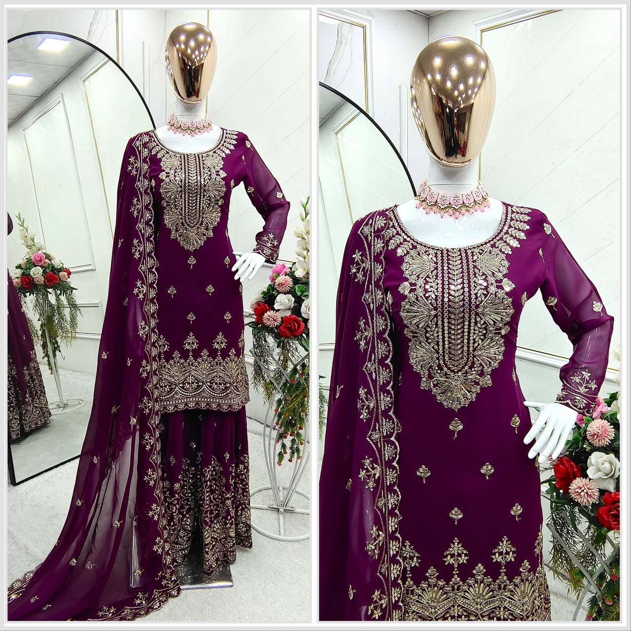 New Fox Georgette Top-Sarara and Dupatta Set Fully Stitched in Germany