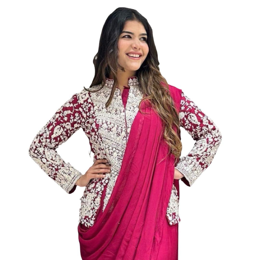 New Super Trending Embroidery cording work ready to wear saree with full Long Blouse