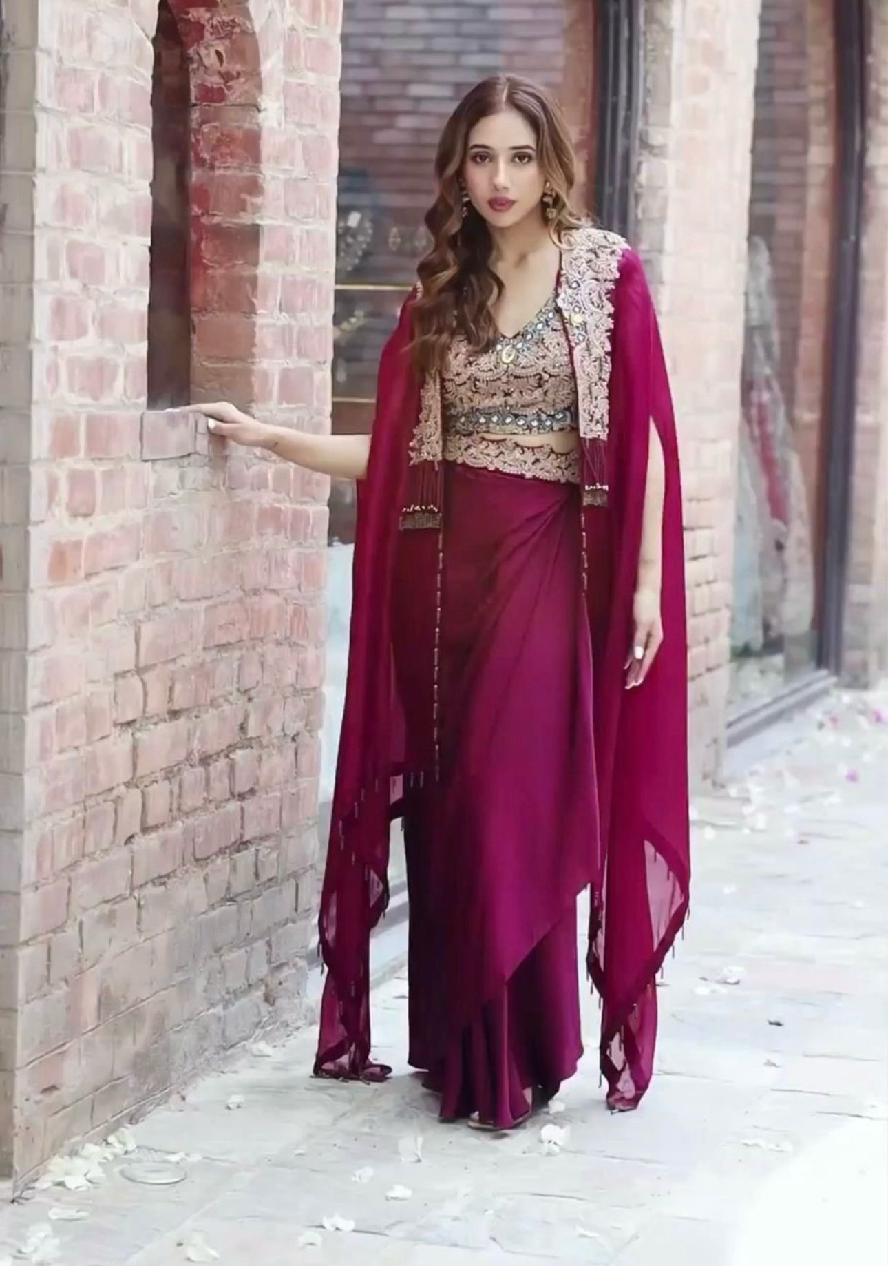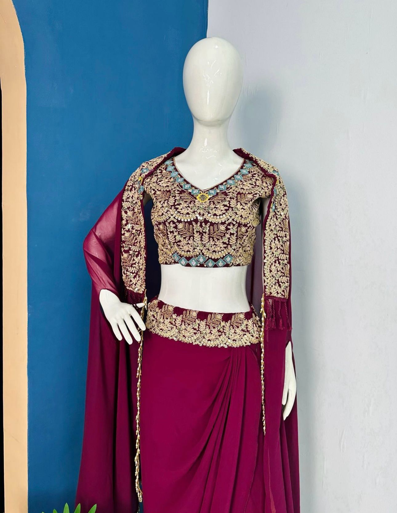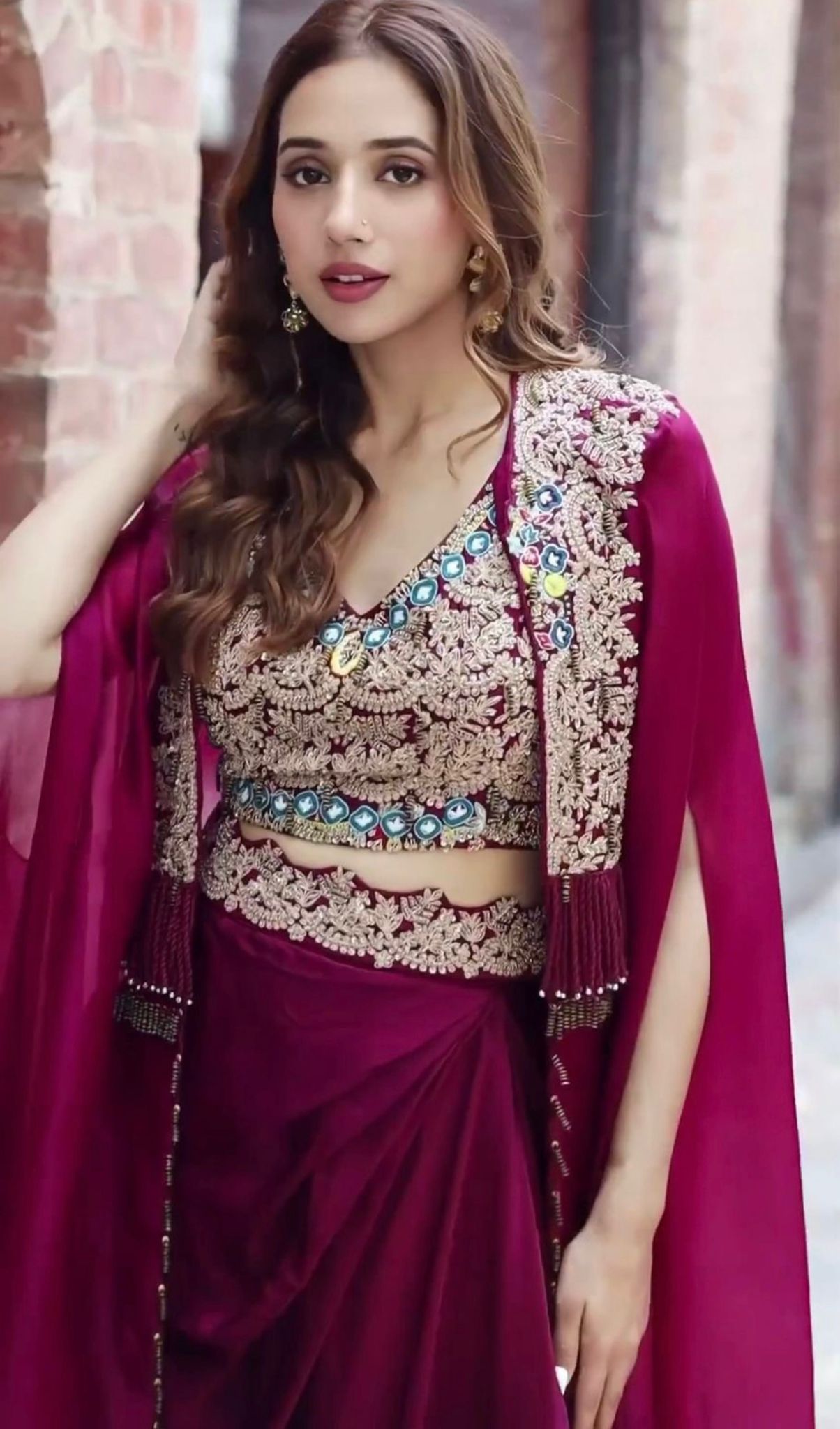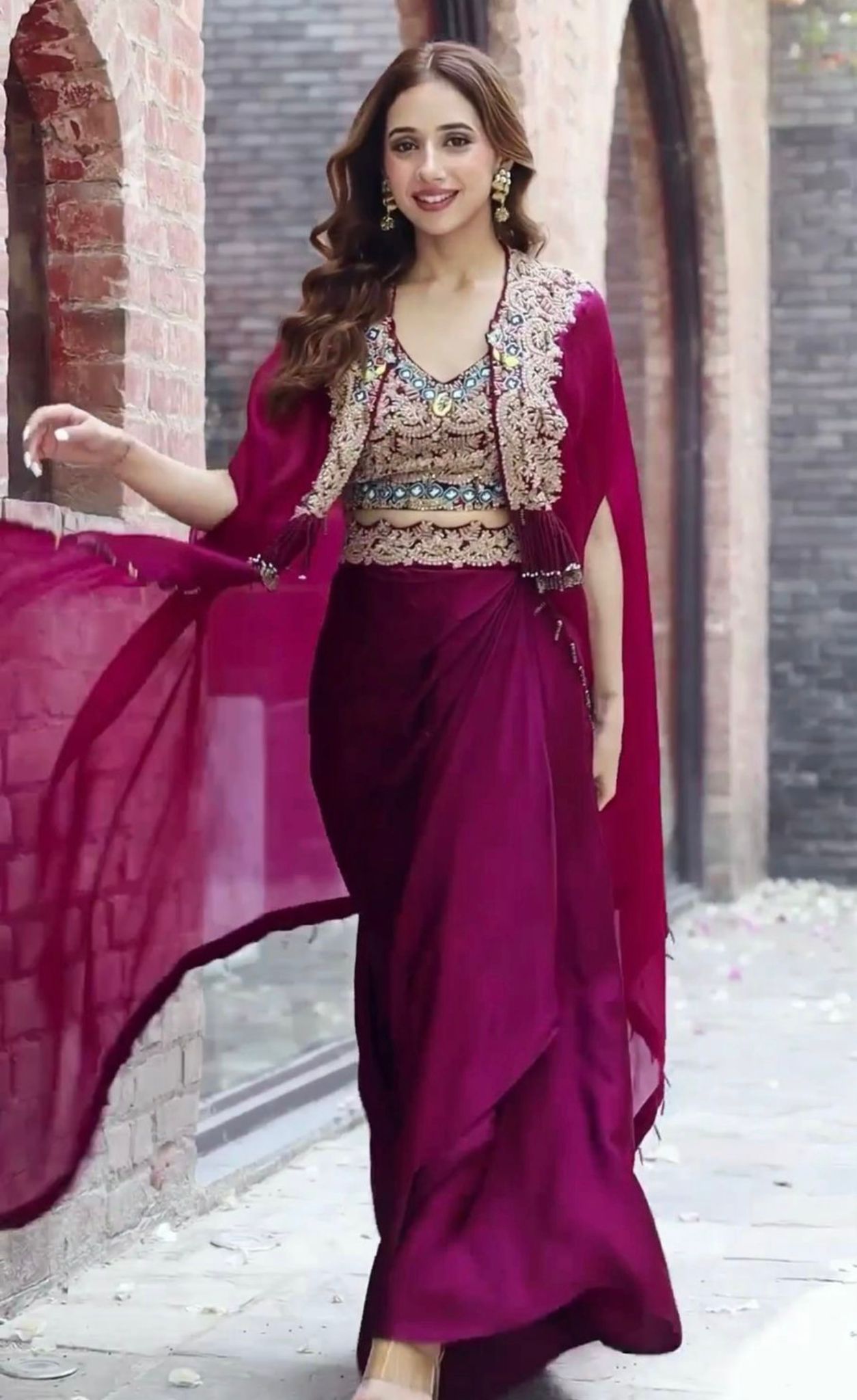 New Super Trending Party Wear Crop Top ,Shrug with Skirt